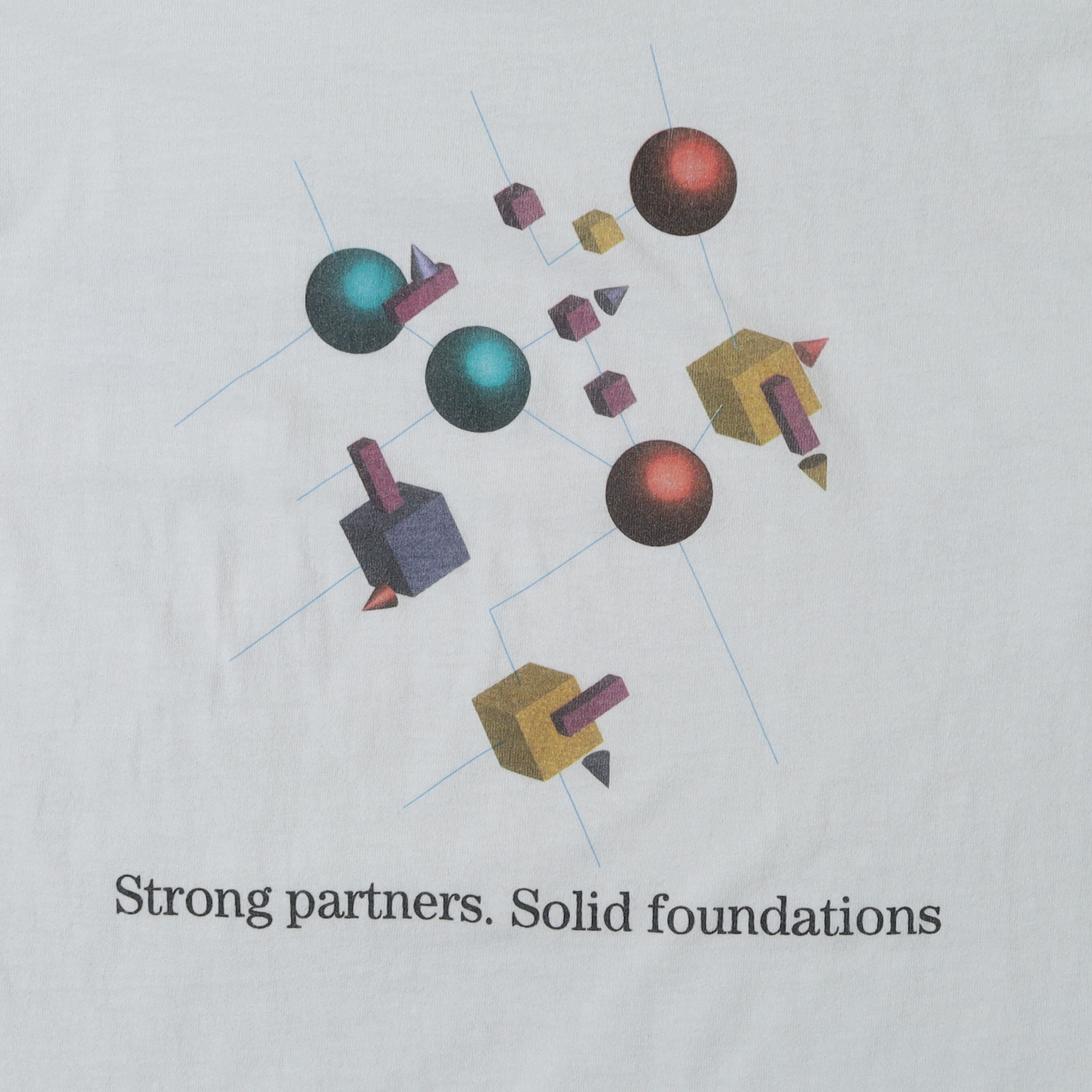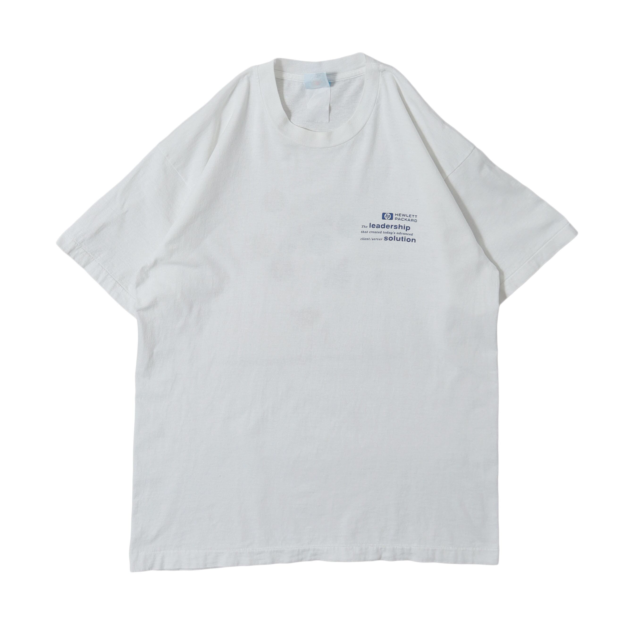 Hewlett PackardのプロモTシャツです。バックプリントが非常にかっこいい1枚で、不規則に並べられた立体のデザインが、企業モノらしくもあまり見ない雰囲気です。程よく抑えられた色味とカラーリングもすごく洒落てます。ロゴも胸元にプリントされていますが、そこまで企業モノ感が強くないので、そういった意味でも取り入れやすい1枚です。