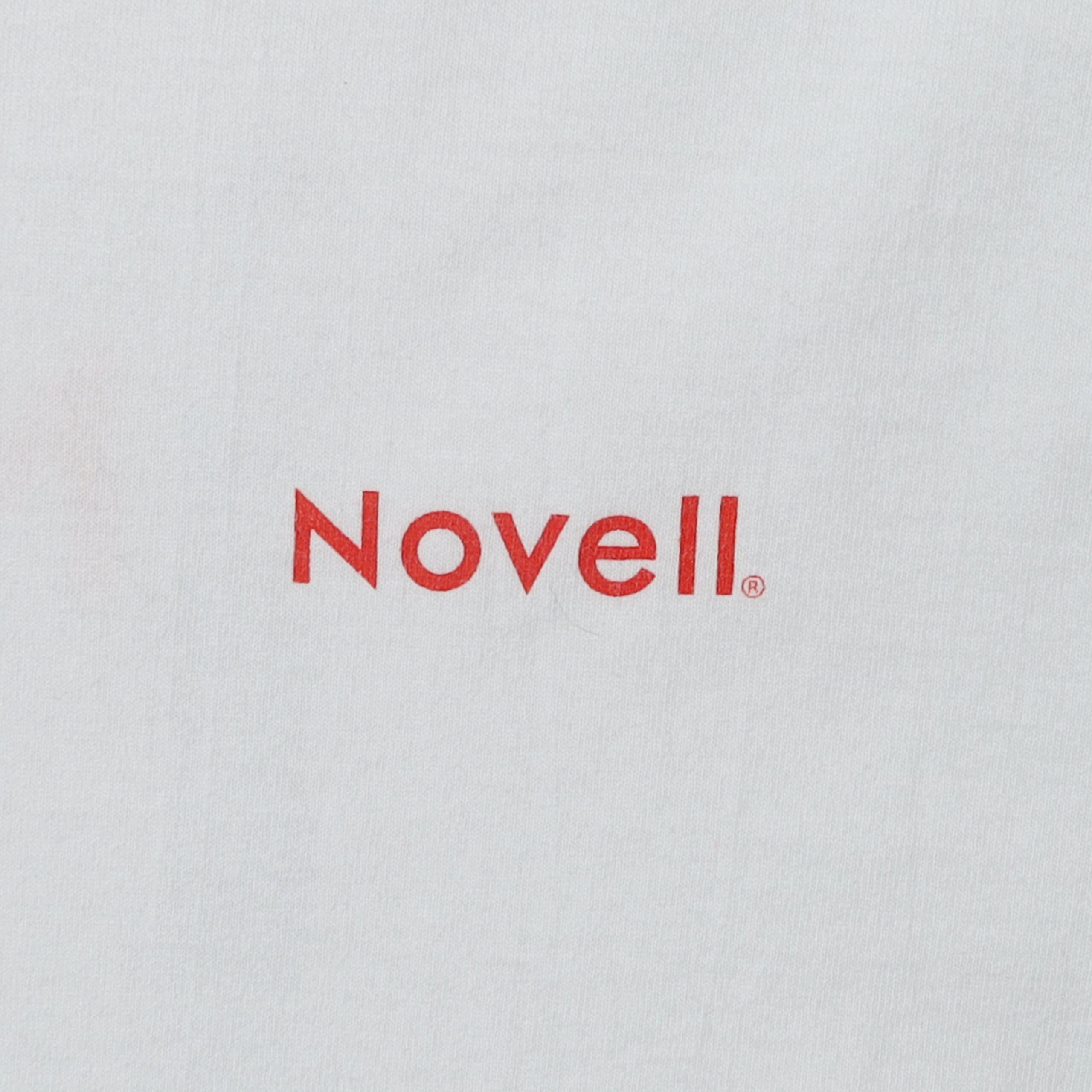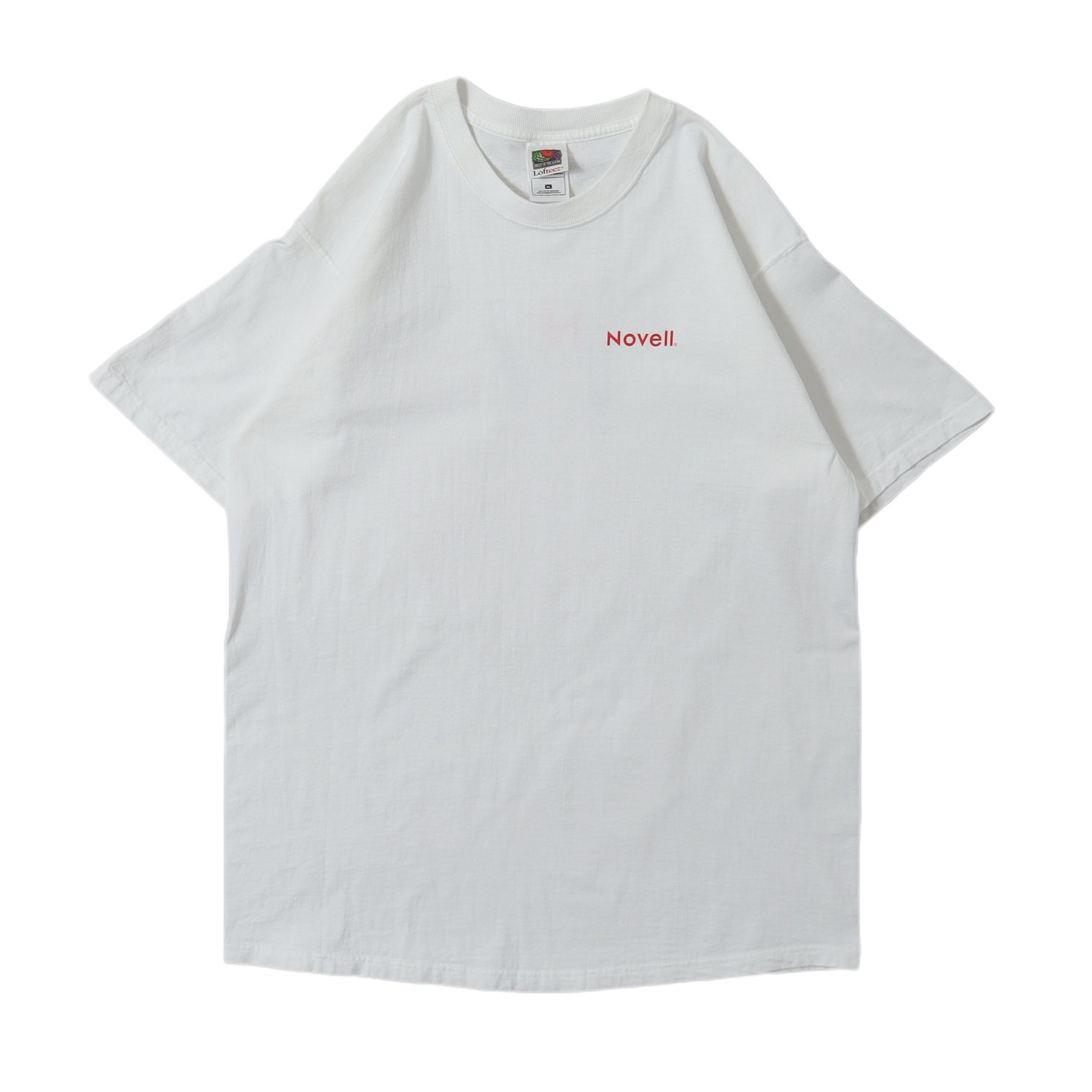 かつて存在したアメリカのソフトウェア会社 "Novell" のプロモTシャツ。NovellのこのパターンのTシャツは数年ぶりの入荷。バックの人のポーズが数パターンあるのですが、プリントのバランスやカラーリングがどれもめちゃくちゃ洒落てます。個人的にもとても好きなデザインで、こんなんなんぼあっても良いですからねって感じの1枚ですのでずっと探しているのですが、全然出てこないんですよね。企業モノにしかないデザインの雰囲気ながら、企業モノっぽすぎな絶妙なバランスです。