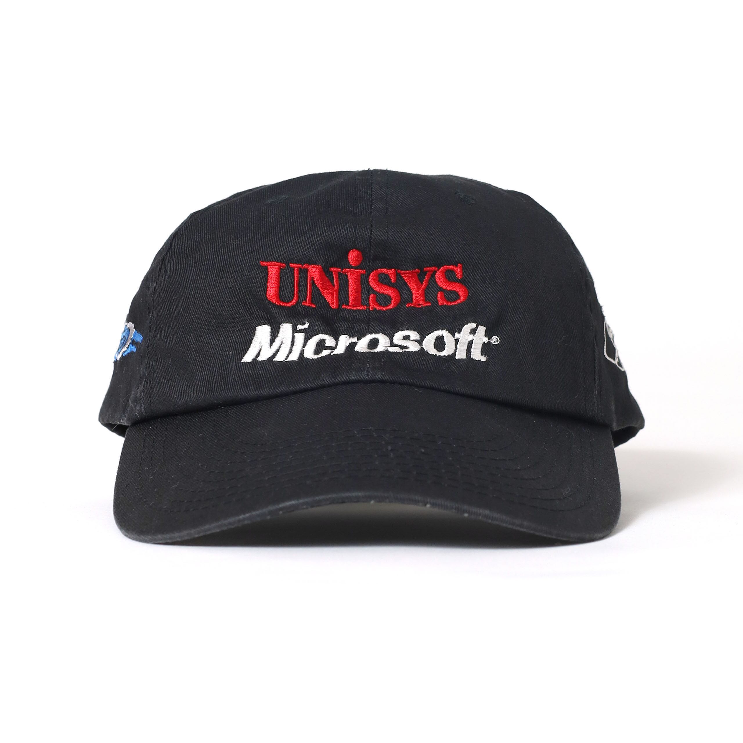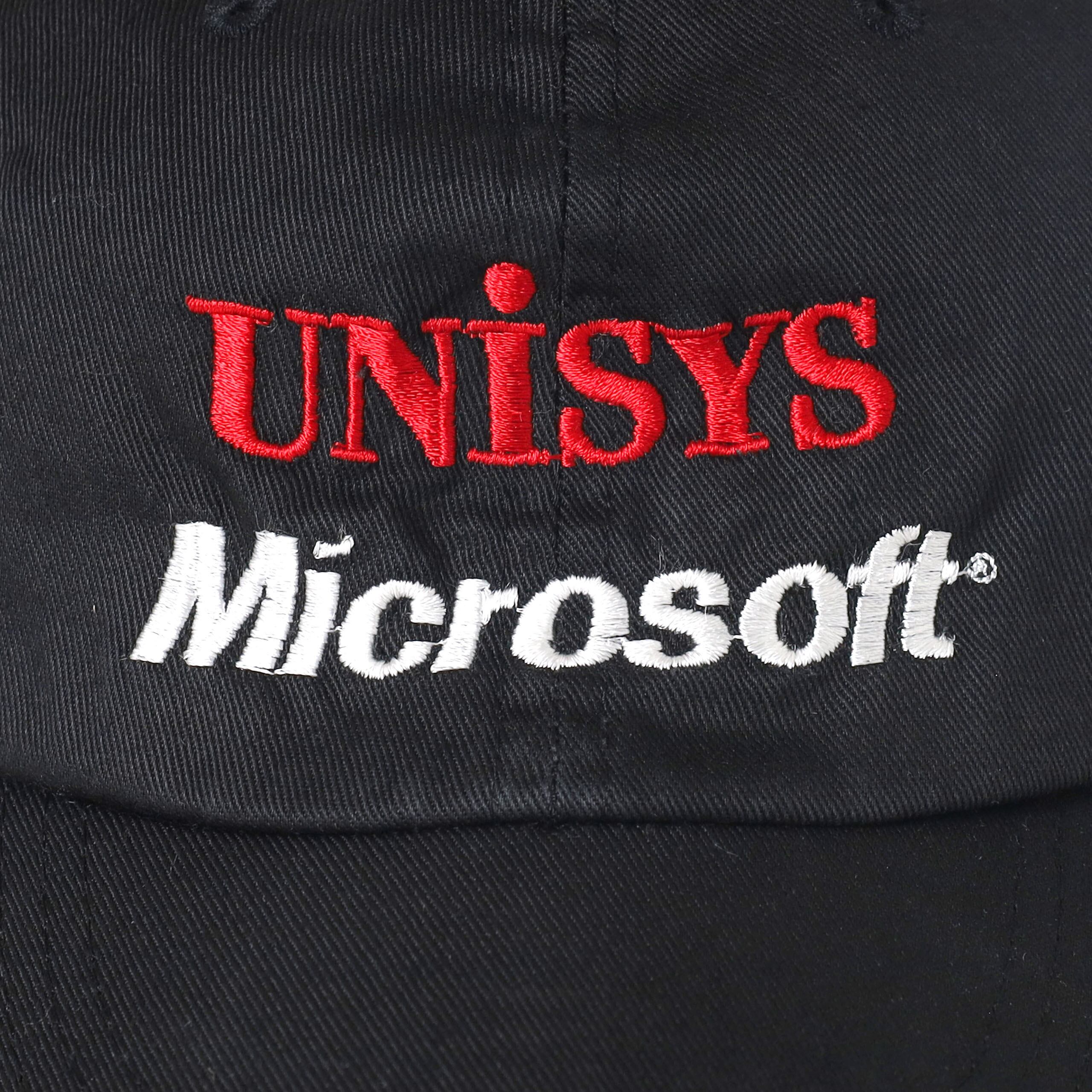 Microsoftと、アメリカのITサービスを提供する国際的な企業 "UNISYS" のロゴが刺繍されたキャップです。恐らくインディカーシリーズというアメリカのF1のレース用に作られたキャップで、サイドには、サムシュミットというレーサーのサインも刺繍されています。2社はスポンサーと思われますが、スポンサーのロゴがメインに配置されているキャップはあまり見ません。大きめのロゴの刺繍がとてもかっこよく、3面の刺繍のバランスも抜群です。