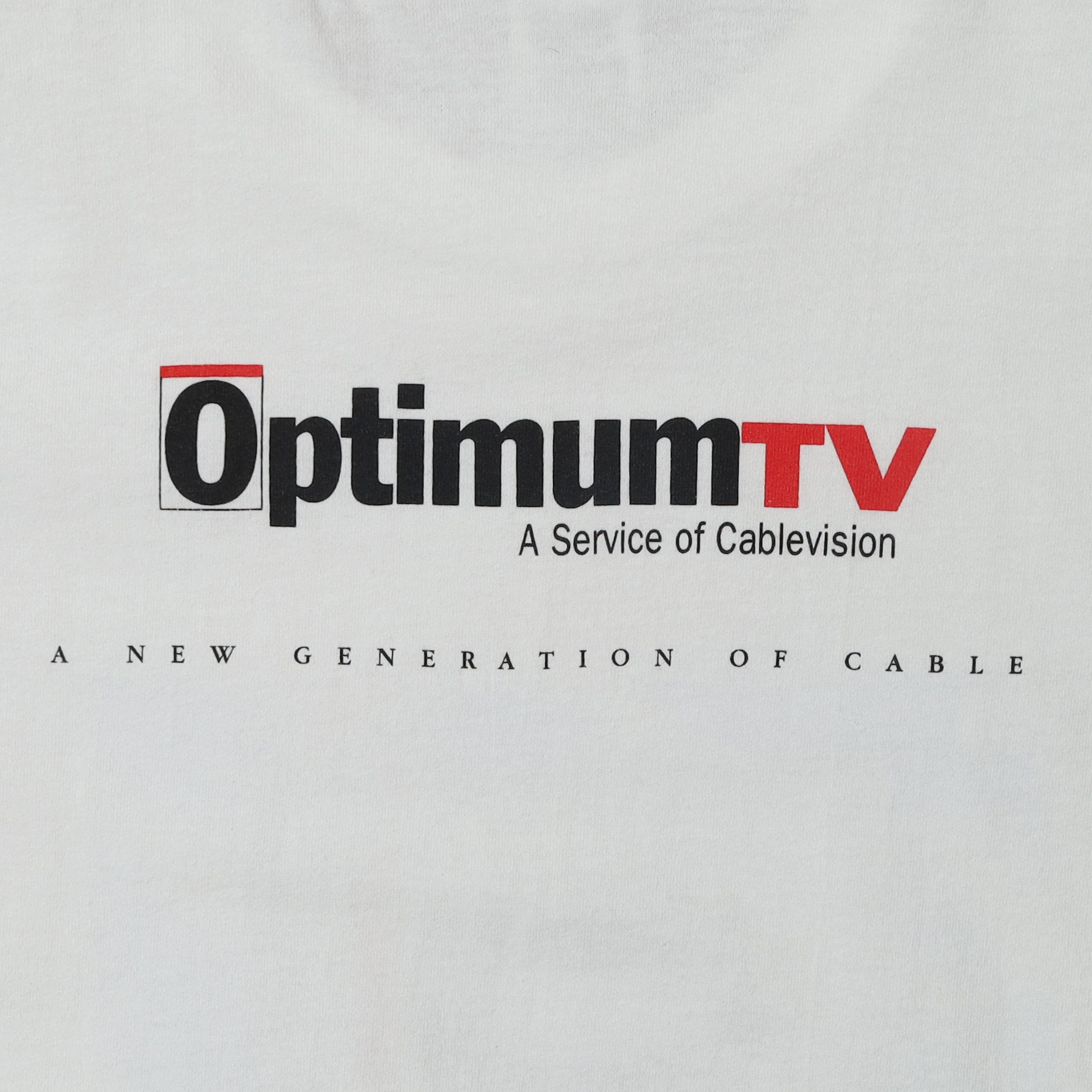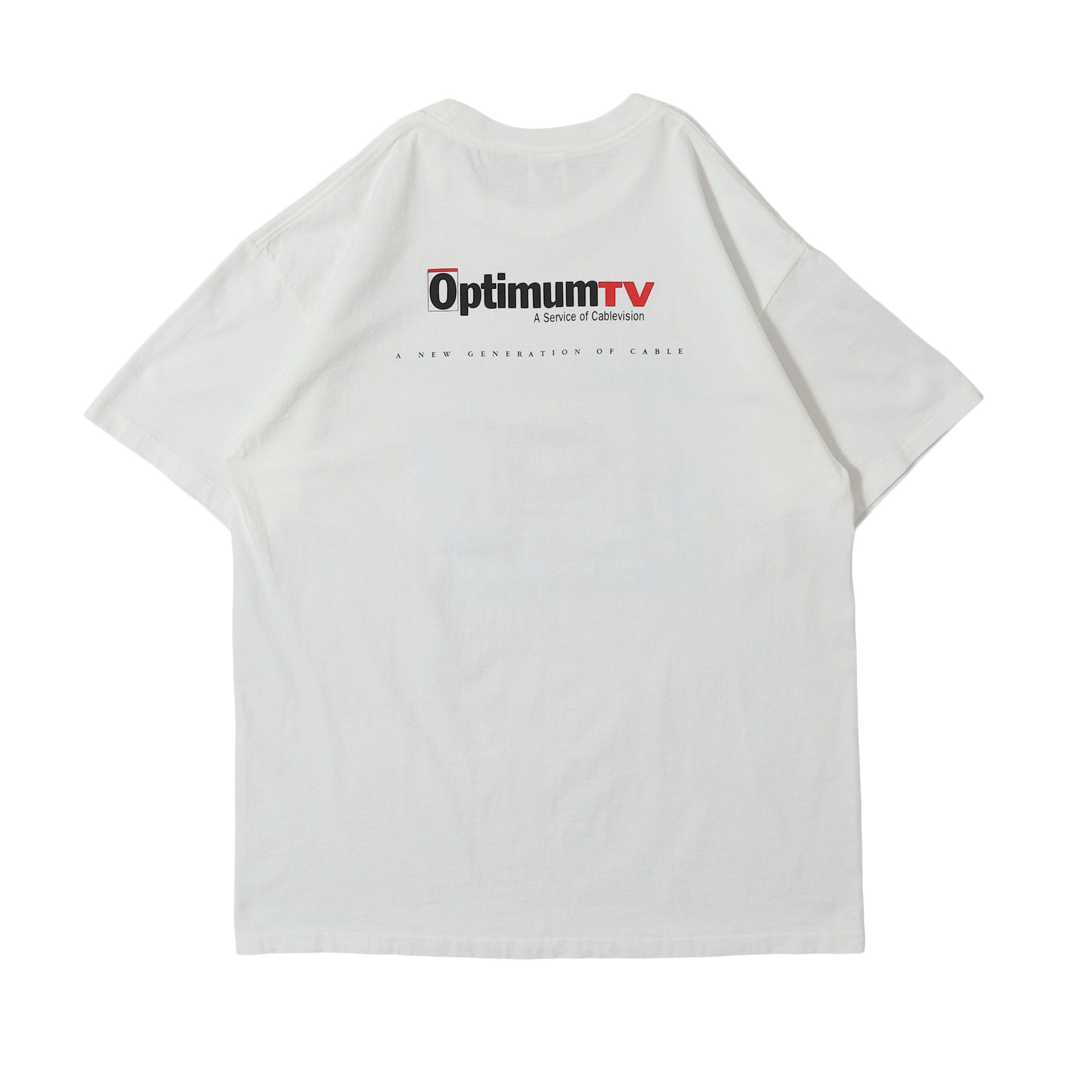 アメリカの通信ブランド、ケーブルプロバイダー "Optimum" のプロモTシャツです。その中でもテレビ事業のもの。フロントはフォトTのようなアートTシャツのようなデザインに、バックのソリッドなバランスがたまりません。初見のデザインですしあまり馴染みのない企業ですが、かなり良いデザインです。企業モノの良さが存分に出た1枚です。