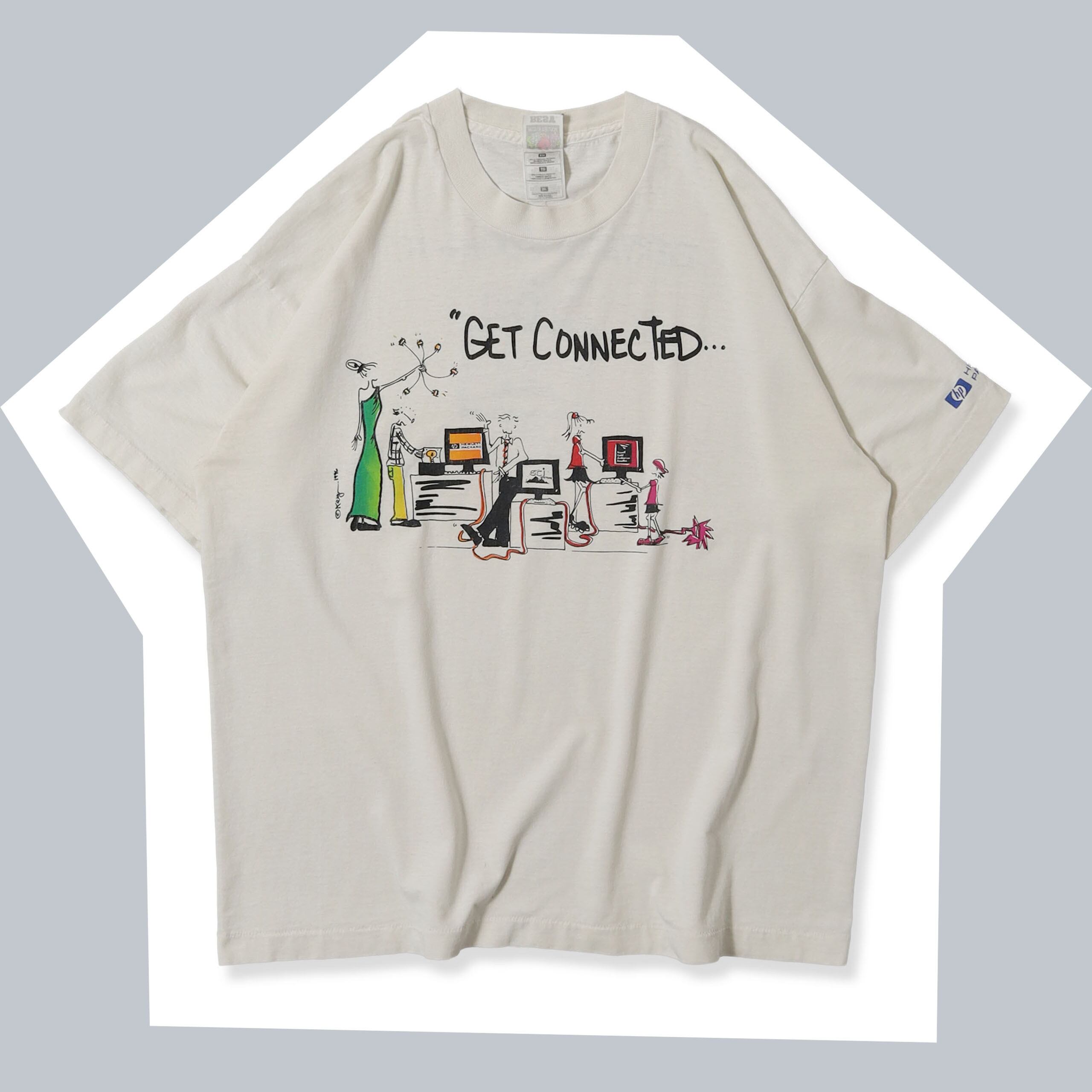 Hewlett PackardのプロモTシャツです。恐らくGci Systemという何らかのシステムのプロモーションで作られたTシャツかと思います。前後ともに独特なタッチで描かれたグラフィックが非常に珍しい雰囲気で、すごく洒落たデザインです。カラーリングも抜群で、これに似た感じのものってあまりないかなと思います。とにかく雰囲気の良い1枚です。