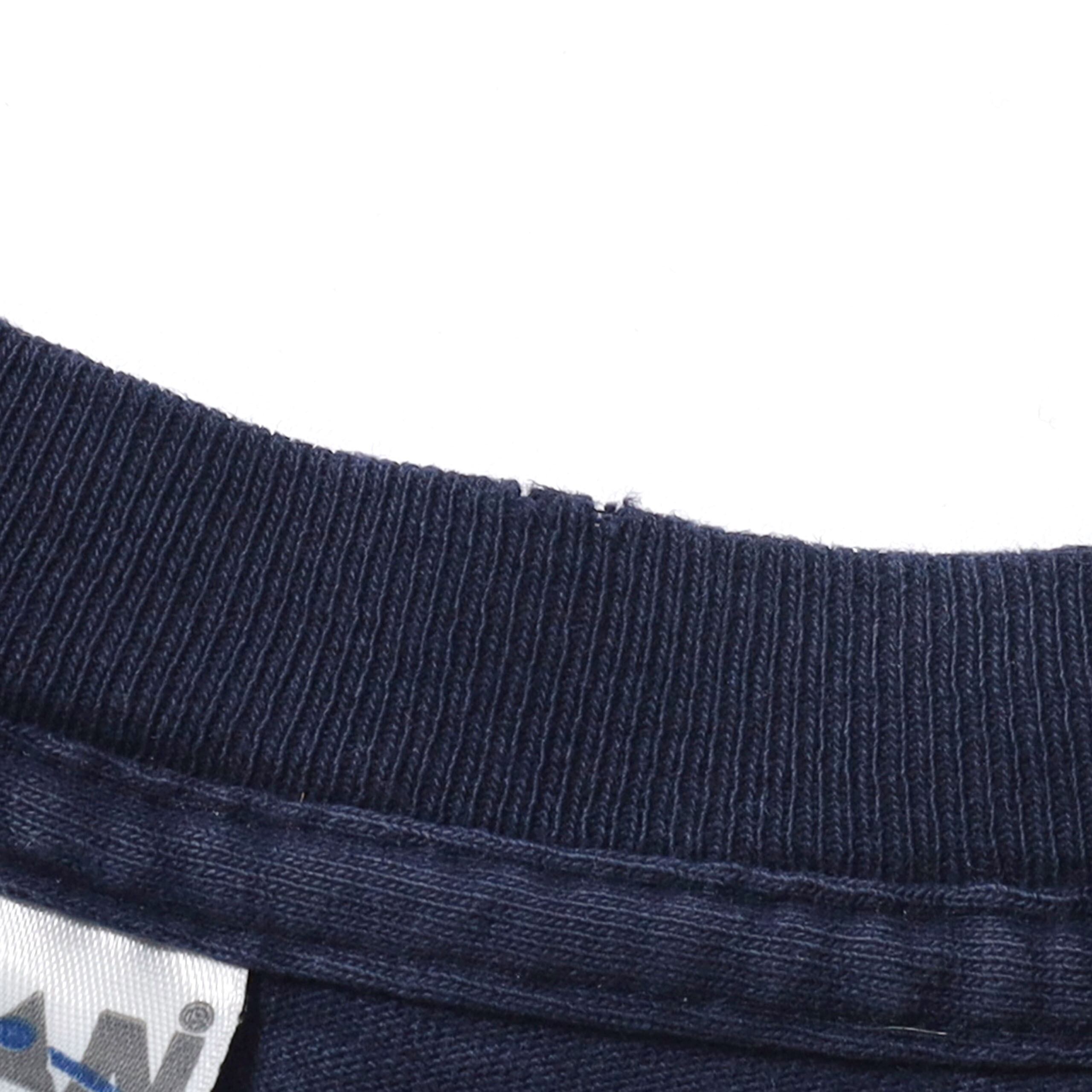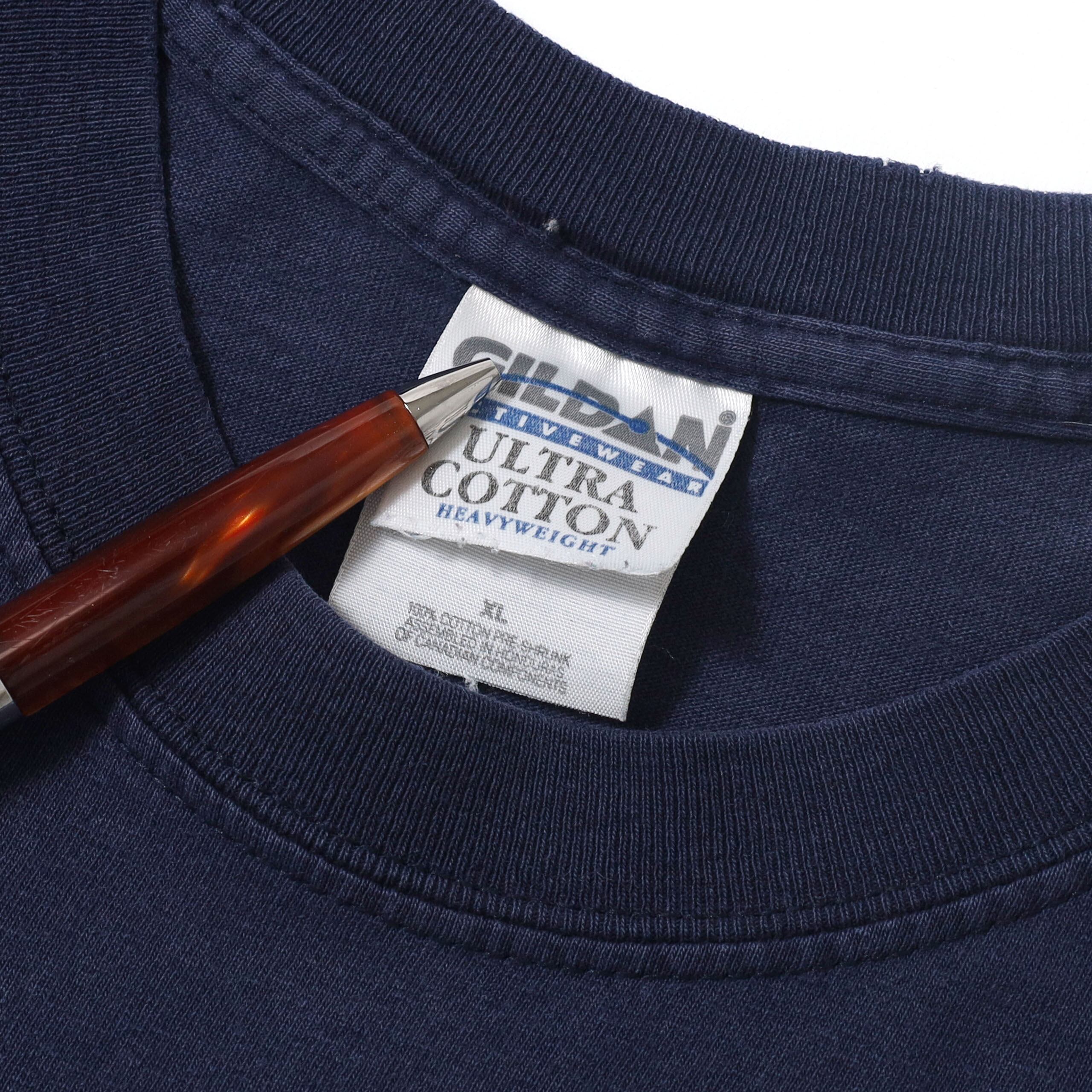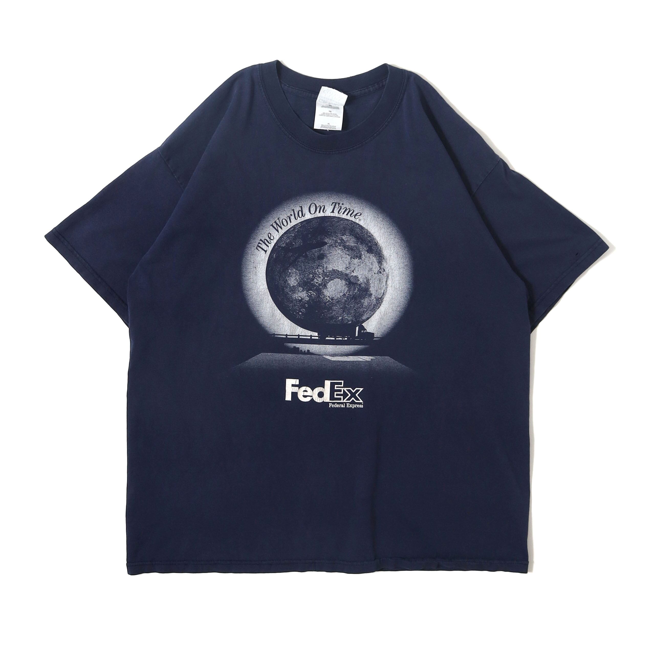 FedexのプロモTシャツです。Fedexといえば皆さん知っている大企業ですが、Tシャツというとロゴものばかりで、企業モノの中でも割とベタな印象です。でもこちらはしっかりデザインのある1枚で、トラックに地球が乗った、この企業らしいメッセージ性のあるグラフィックが抜群で、ロゴとのバランスもとてもかっこいいです。ややフェードしたネイビーボディの雰囲気も最高です。