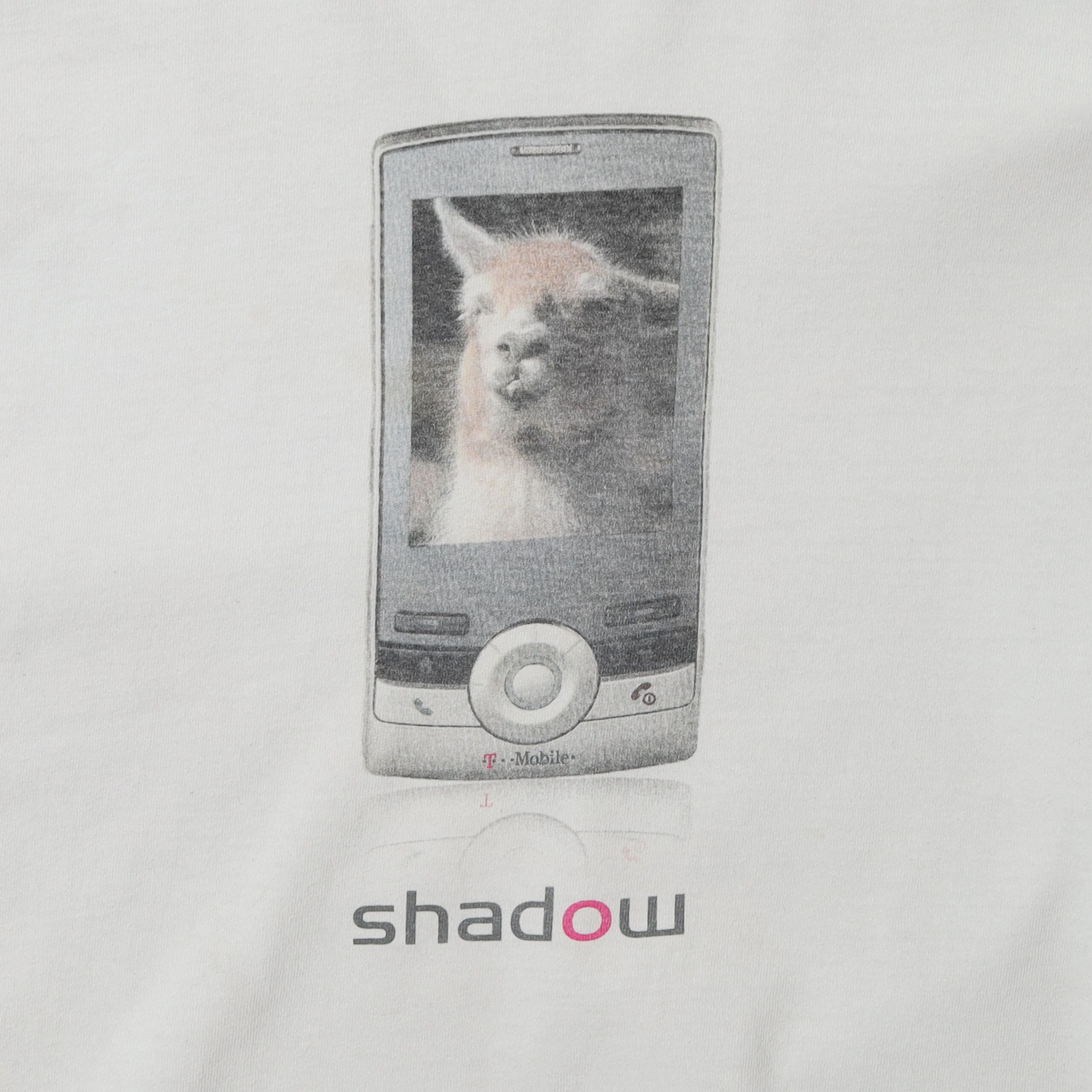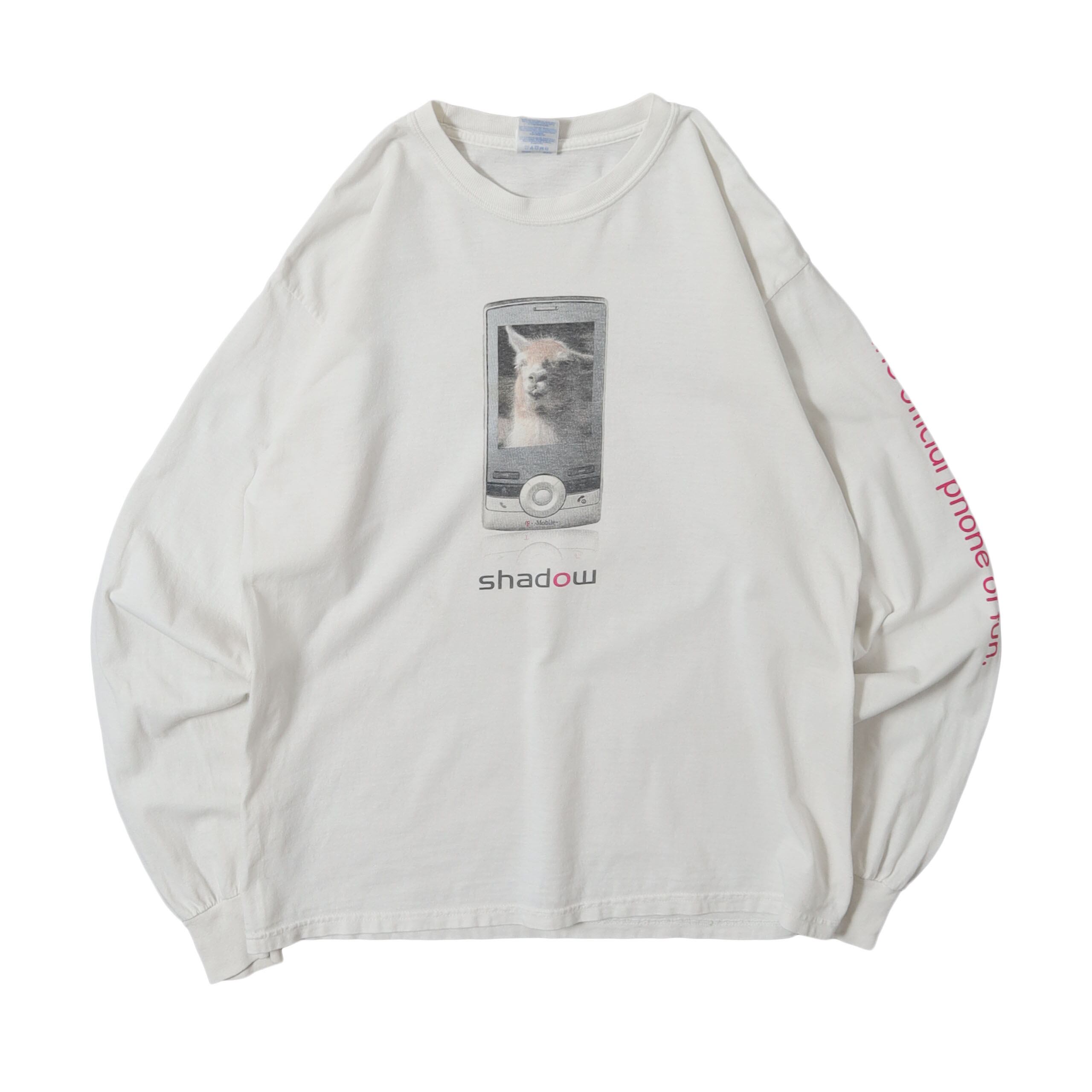 2007年にT-Mobileから販売された携帯 "Shadow" のプロモTシャツです。比較的近年ものですが、企業モノらしい製品プリントがかっこいいデザイン。モバイル系の製品プリントってなんか良いんですよね。ロングスリーブを活かした袖のプリントもいい雰囲気で、全体的にスッキリしたバランスが洒落た1枚です。