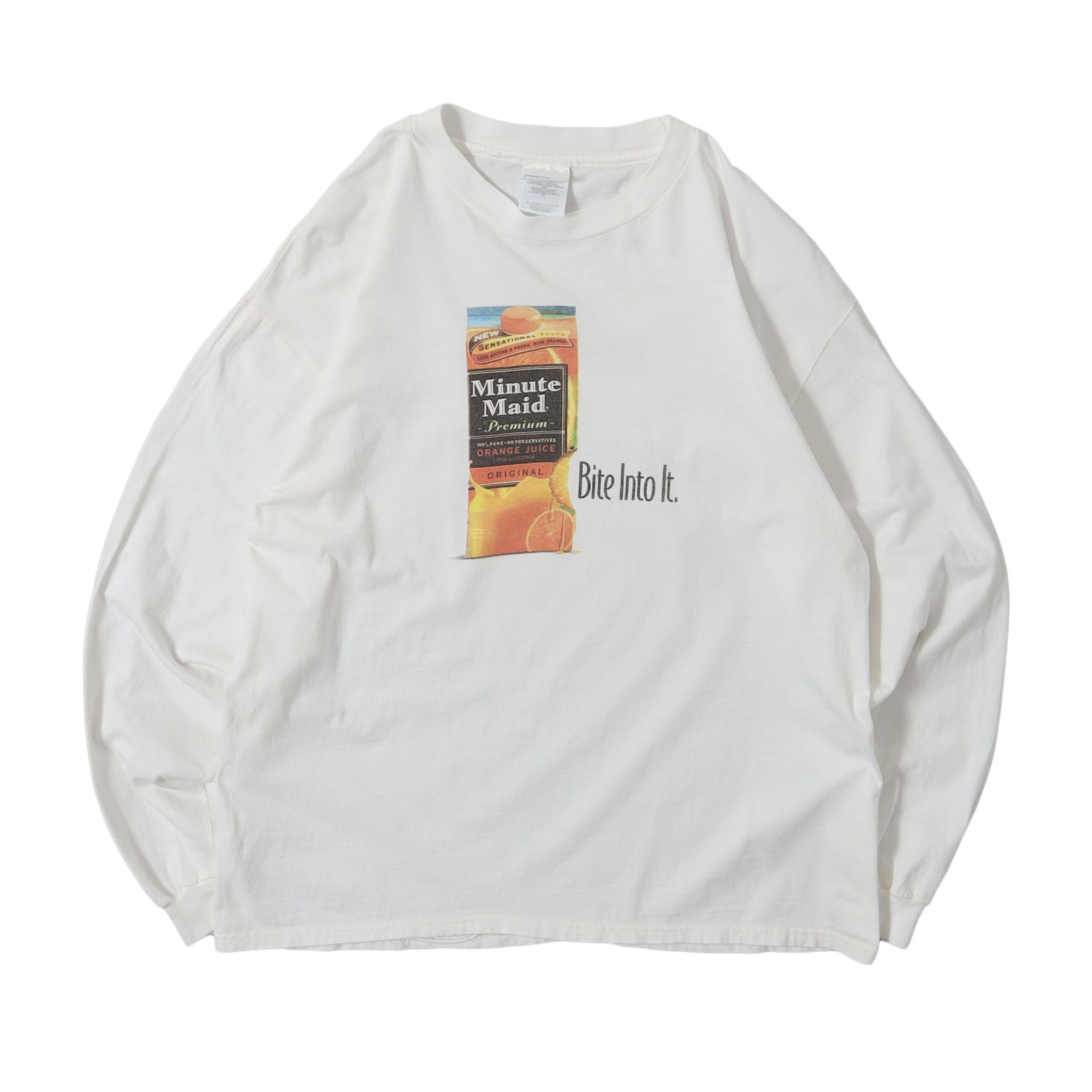 Minute MaidのプロモTシャツです。これは前々から買い付けたいと思ってた1枚なのですが、全然出てこず、今回やっと買い付けることが出来ました。Minute MaidのTシャツ自体あまり見かけませんが、ロングスリーブはかなり希少。ストレートなデザインがとてもかっこよく、噛まれたパッケージから果汁が滴ったグラフィックなんかもこだわりを感じるグッドデザインです。