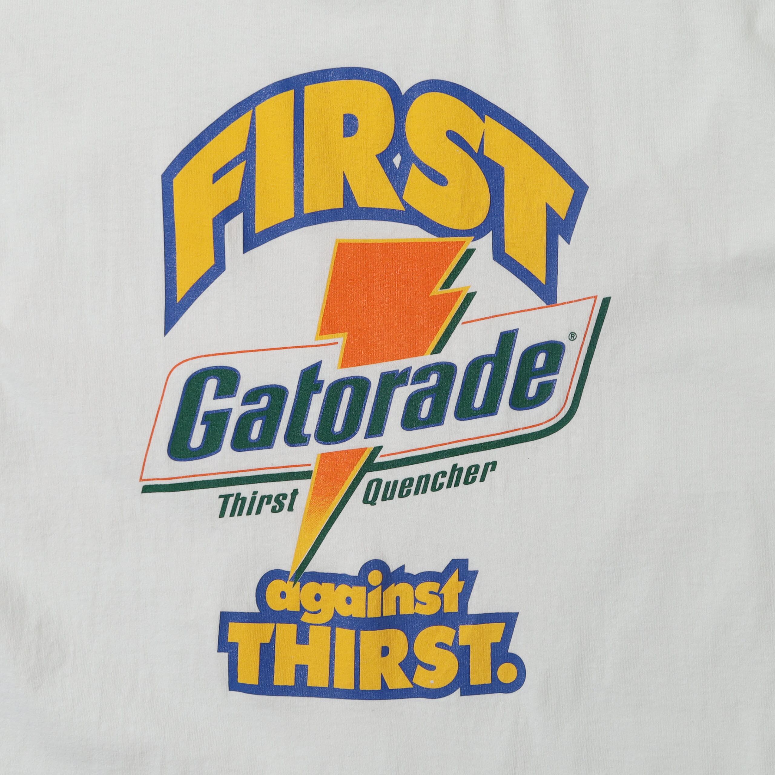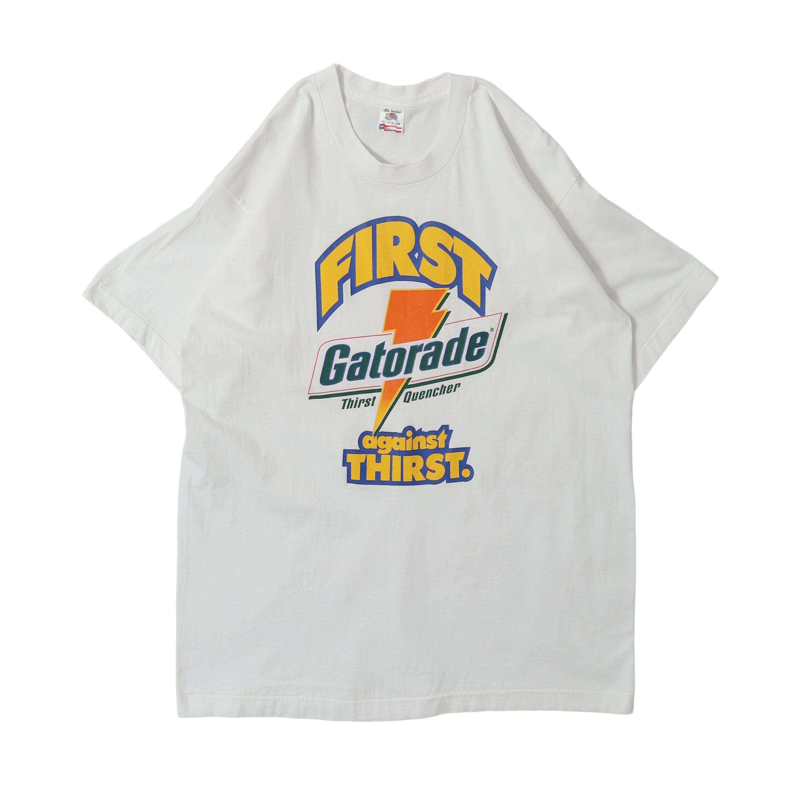 GatoradeのプロモTシャツです。GatoradeのTシャツは同時に入荷しているロゴだけのシンプルなデザイン以外、あまりいいと思えるデザインがないのですが、こちらはロゴにプラスデザインされた文字とそのバランスがピカイチ。全体的にポップな雰囲気で、企業T特有のクセもなく、コーディネートに取り入れやすい1枚kと思います。