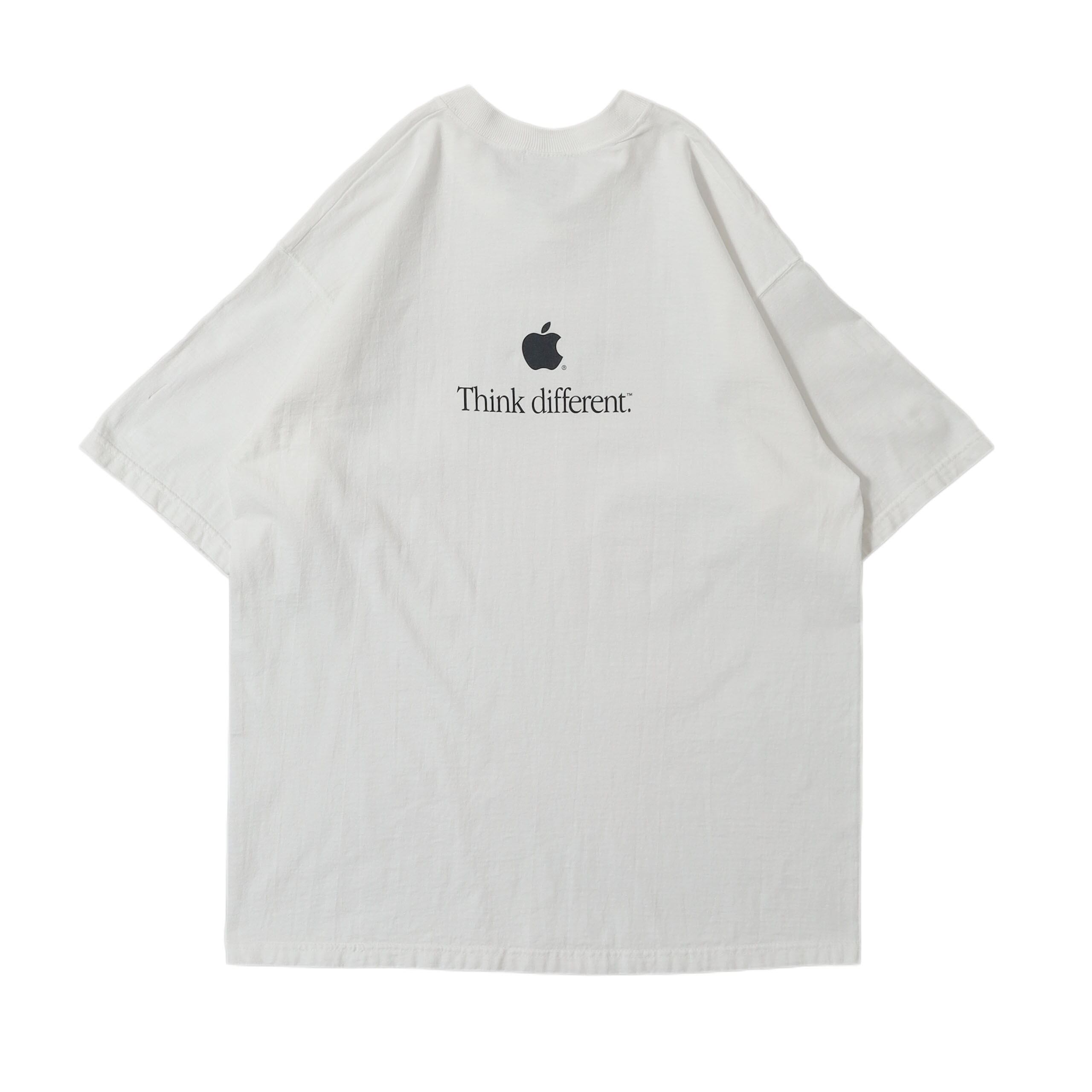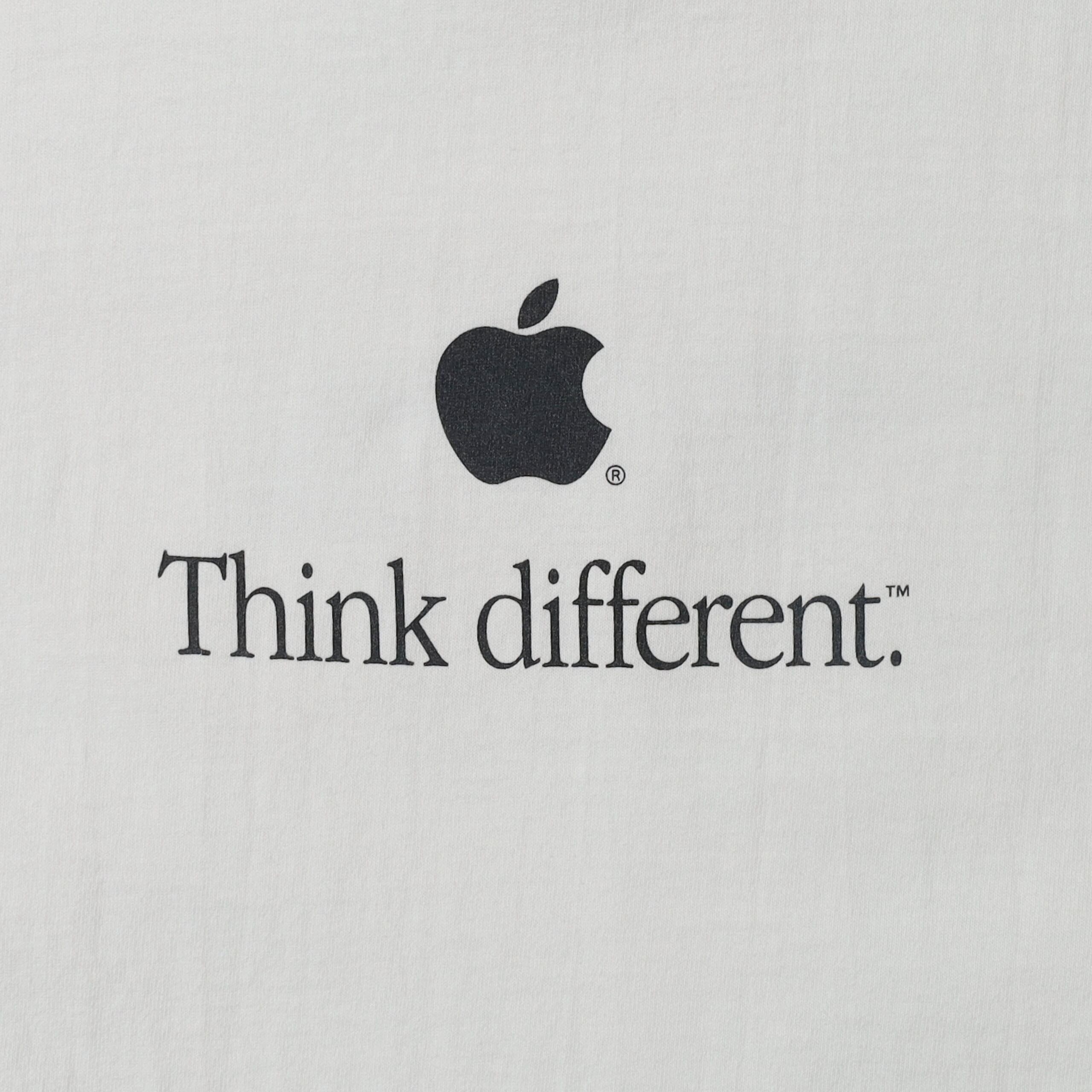 AppleのプロモTシャツです。前回に引き続き2度目の入荷です。バックにプリントされた "Think different" とは、1997年から使用されたAppleの広告の象徴的なスローガンで、1998年にはカタツムリがインテルPentium IIのチップを背中に載せてゆっくりと進んでいく映像に、Power Macintosh G3ならその2倍も速いとコメントが続くテレビコマーシャルが放映されました。このTシャツのフロントにはそのコマーシャルのグラフィックがプリントされていて、Appleらしいセンス抜群のプリントがたまりません。サイズはLですが、コンディションも良く、サイズ合う方は是非!