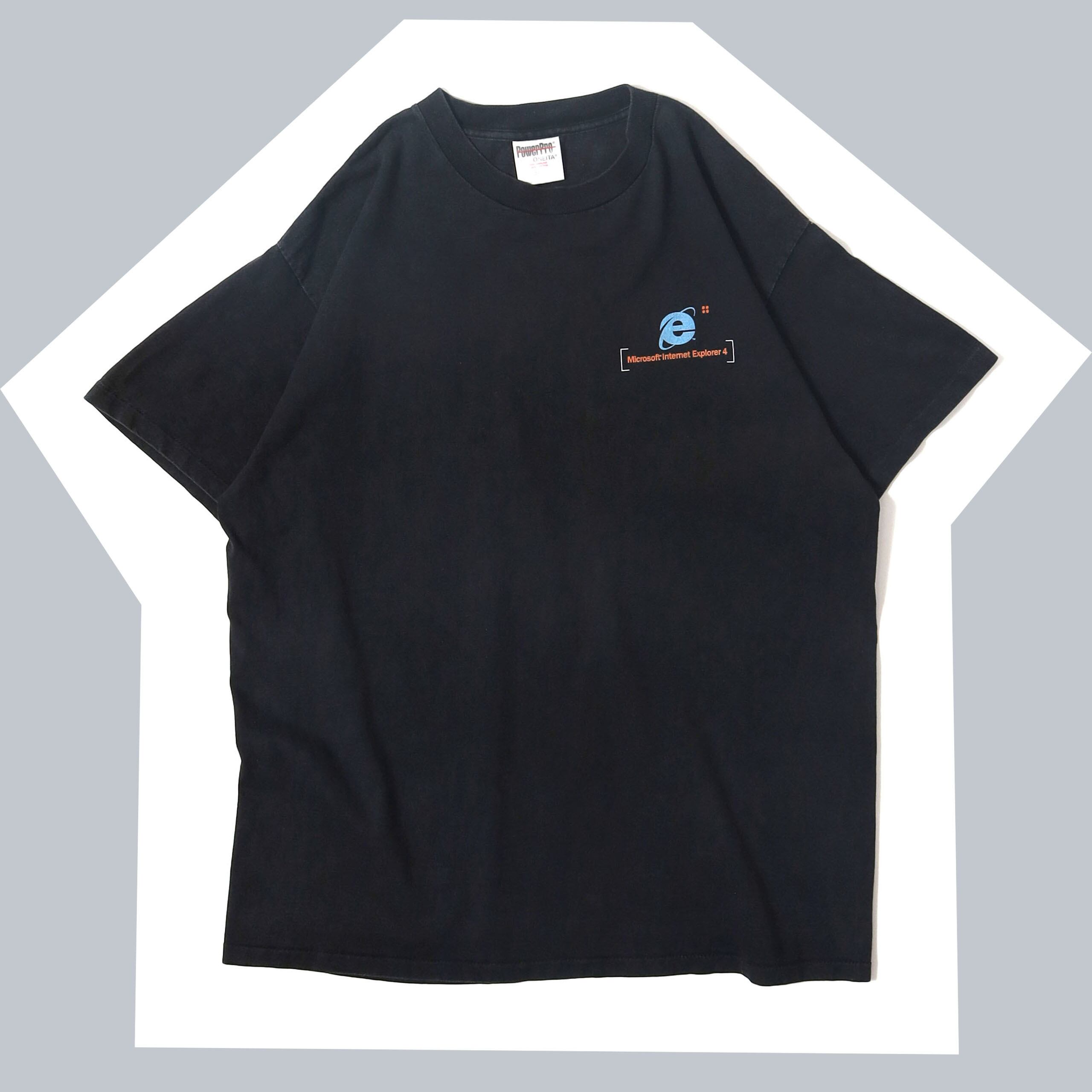 Internet ExplorerのプロモTシャツです。こちらは全体的にシンプルなデザインですが、そのソリッドさと、ブラックボディにオレンジと水色のカラーリングがとてもかっこいいです。企業T特有のクセもなく、普段あまりプリントTを着ない方なんかにもおすすめしたい1枚。欲しいロゴがしっかりプリントされているのも嬉しいポイントです。