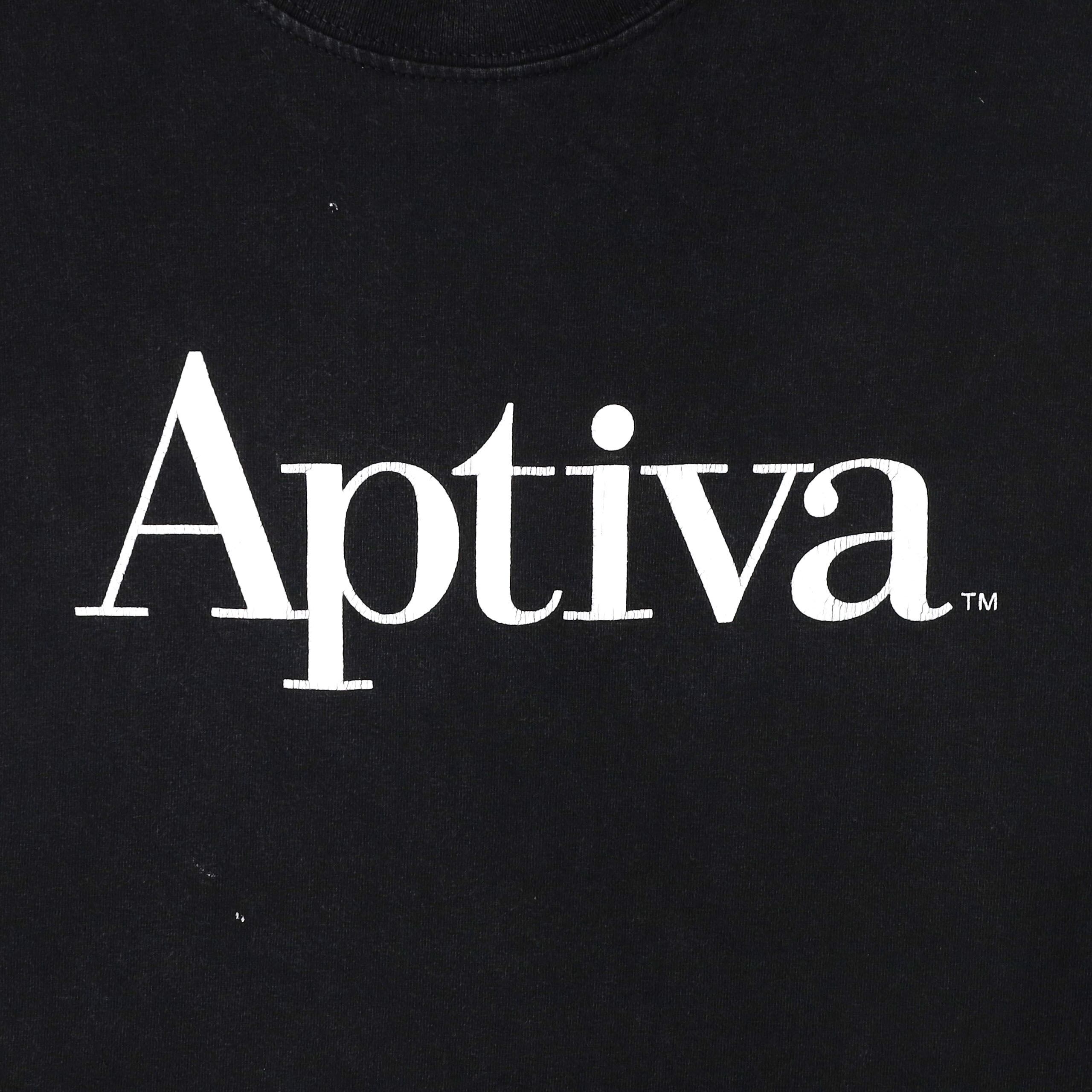 IBMが1995年から販売したデスクトップパソコン "Aptiva" のプロモTシャツです。こちらは初見のデザインですが、一目見ただけで惹かれるなんとも言えない雰囲気のある1枚です。シンプルながら存在感や佇まいが抜群で、お好きな方も多いデザインじゃないかなと思います。ペンキの飛んだボディもとても最高にかっこいいです。