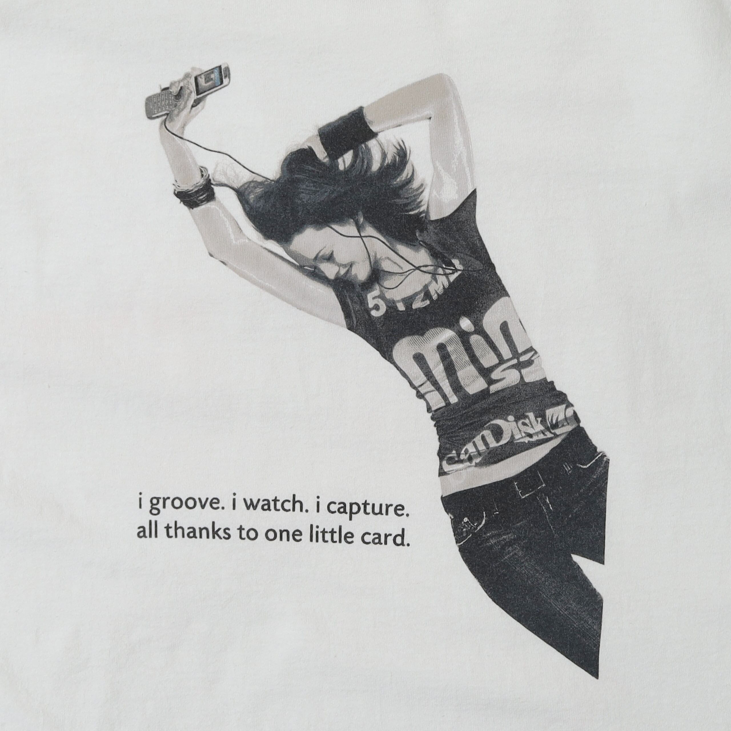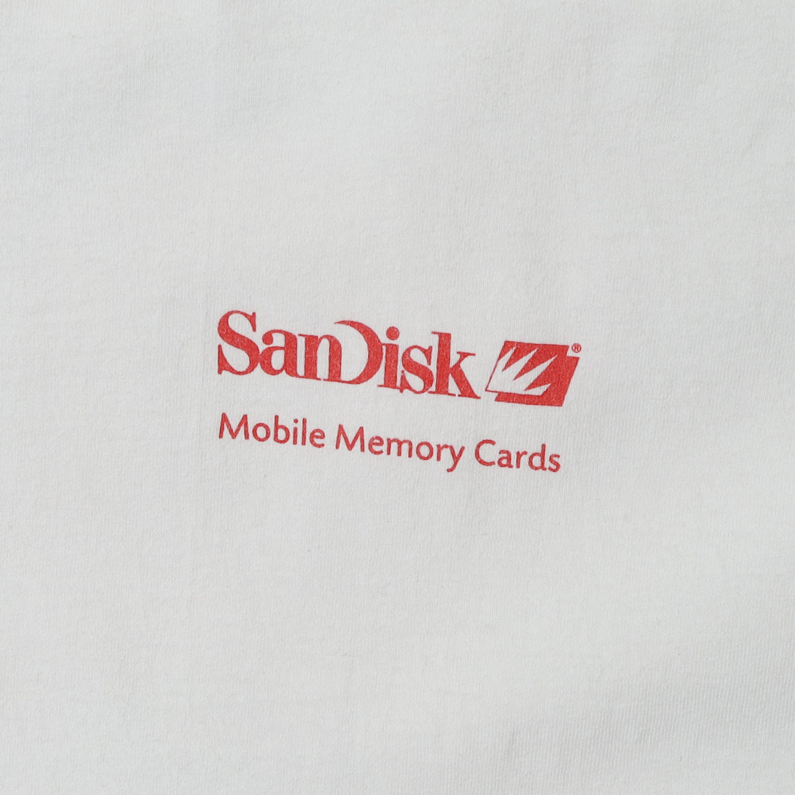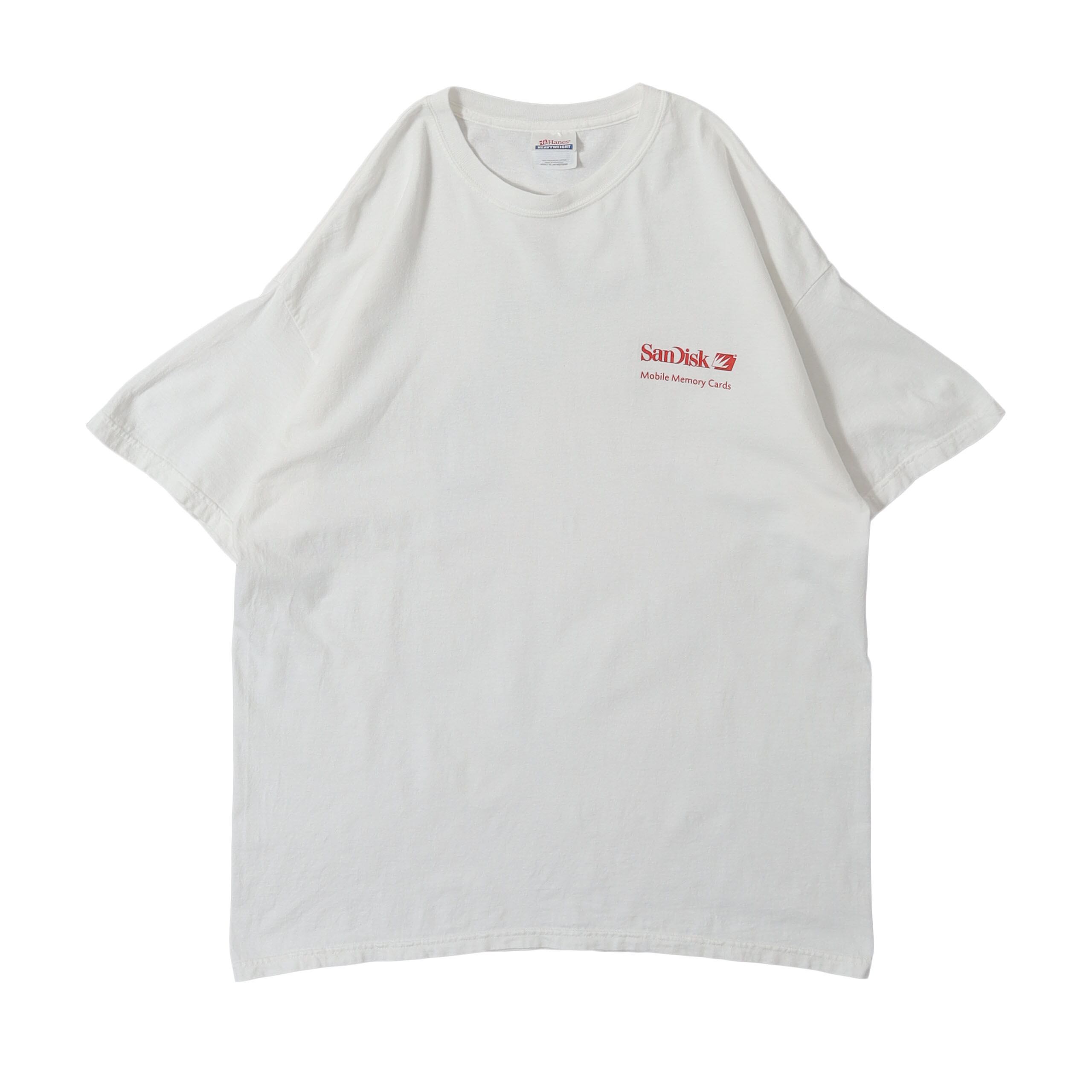 フラッシュメモリー製品を中心に生産するアメリカの企業 "SanDisk" のプロモTシャツです。この企業のTシャツは初見です。かなり珍しい1枚かと思います。この企業自体は、家電量販店などでロゴを見たことがある方もいらっしゃるのではないでしょうか。胸元には企業Tらしいロゴの配置、バックには個人的にとても好きな人のプリント。なかなかこの感じは企業Tにしか出せない雰囲気かと思います。