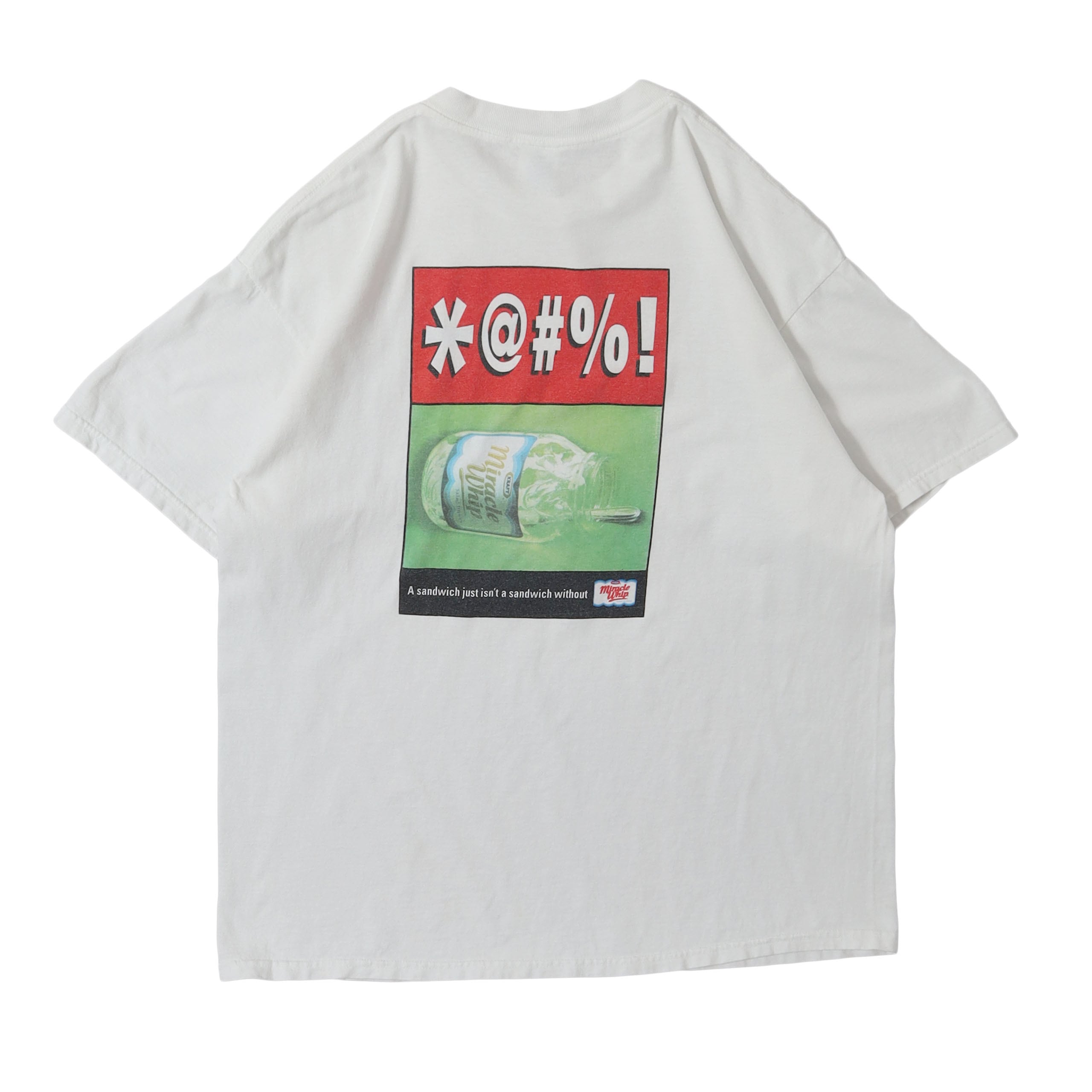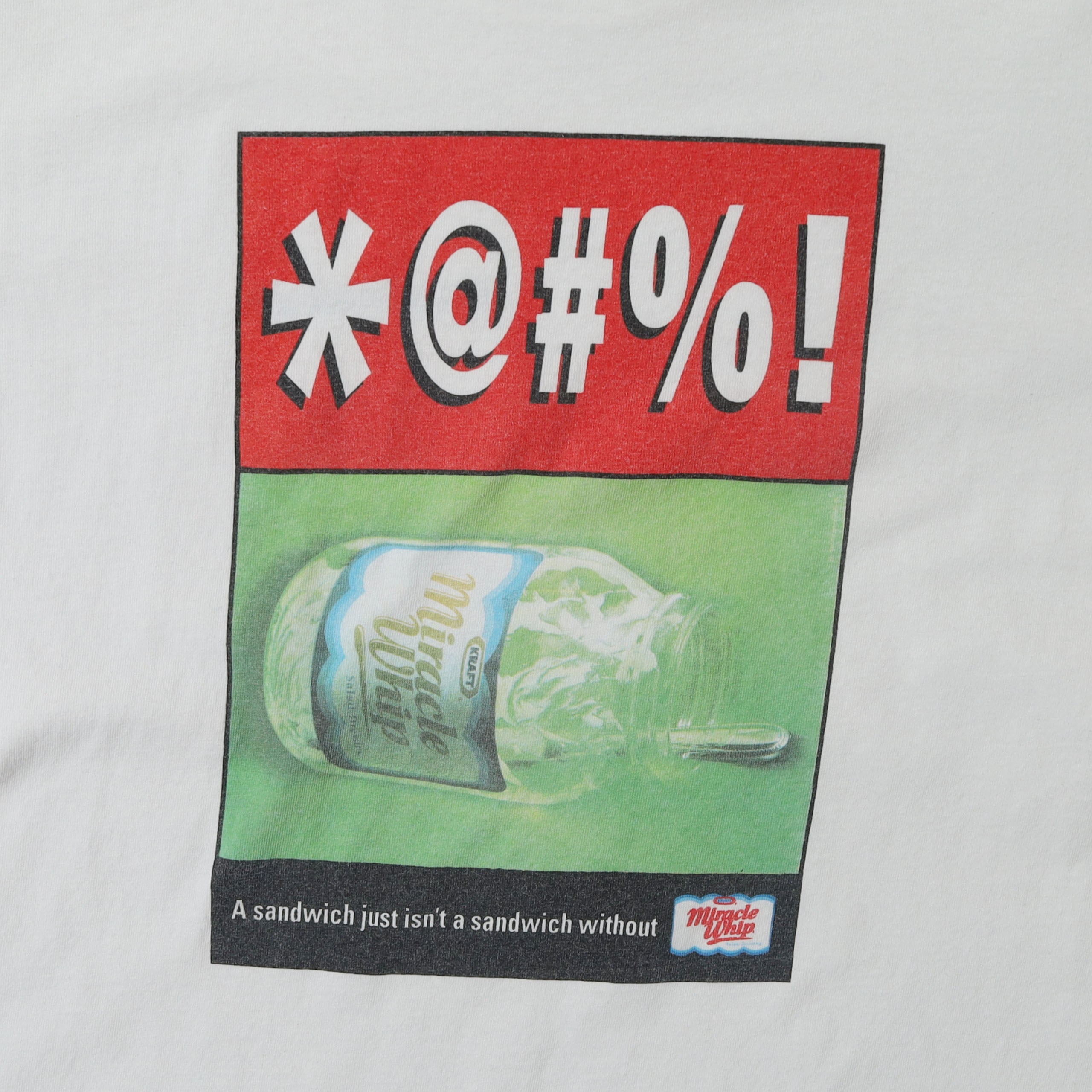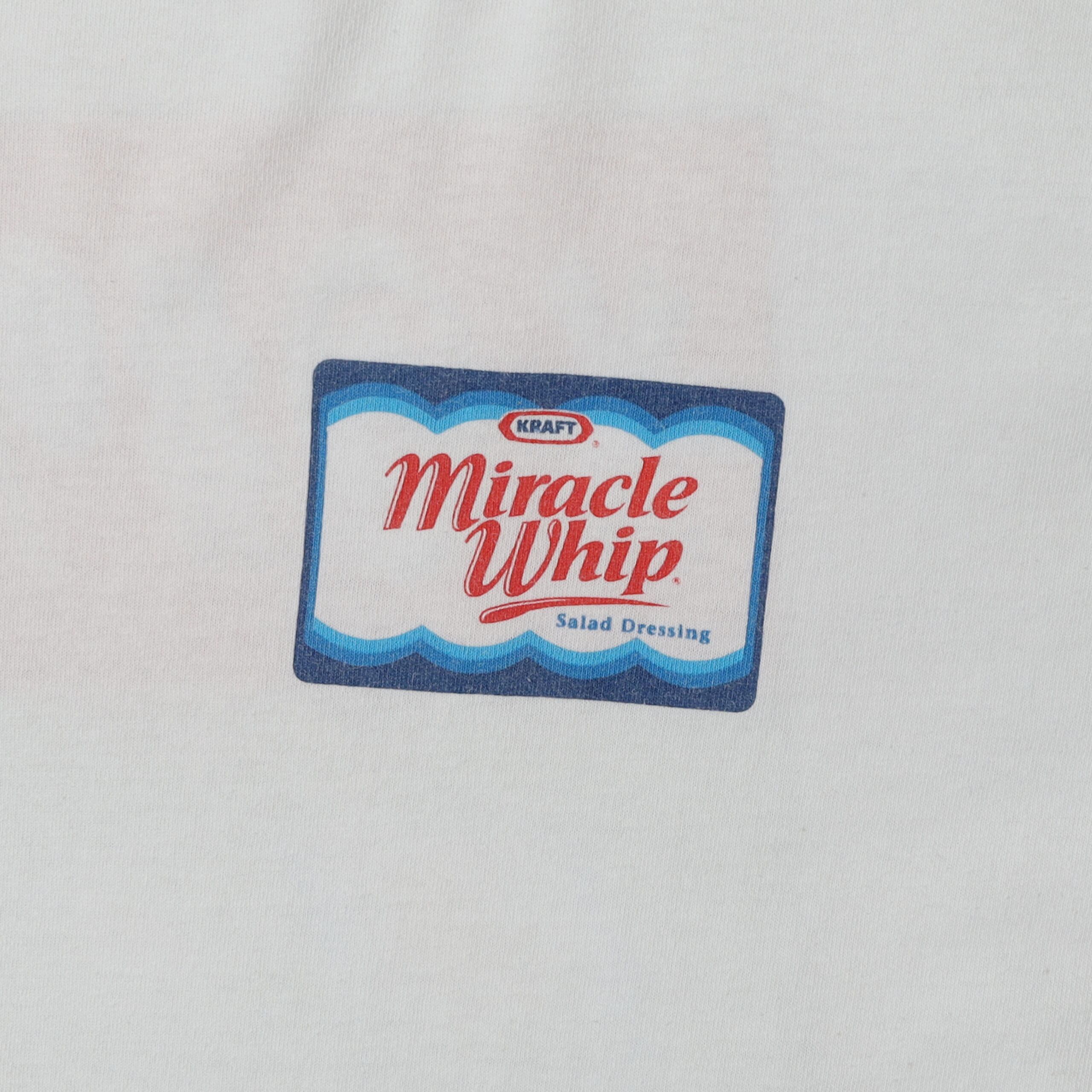 アメリカの食品メーカー "KRAFT(現KRAFT HEINZ)" のマヨネーズ "Miracle Whip" のプロモTシャツです。こちらは初見の1枚。バックプリントの記号や製品のプリントが、とてもセンスを感じる1枚で、カラーリングもピカイチ。食品系のTシャツで良いデザインのものを探すのはとても難しいですが、こちらはバッチリではないでしょうか。胸元のロゴプリントも可愛い雰囲気で、全体的に着やすい1枚かと思います。