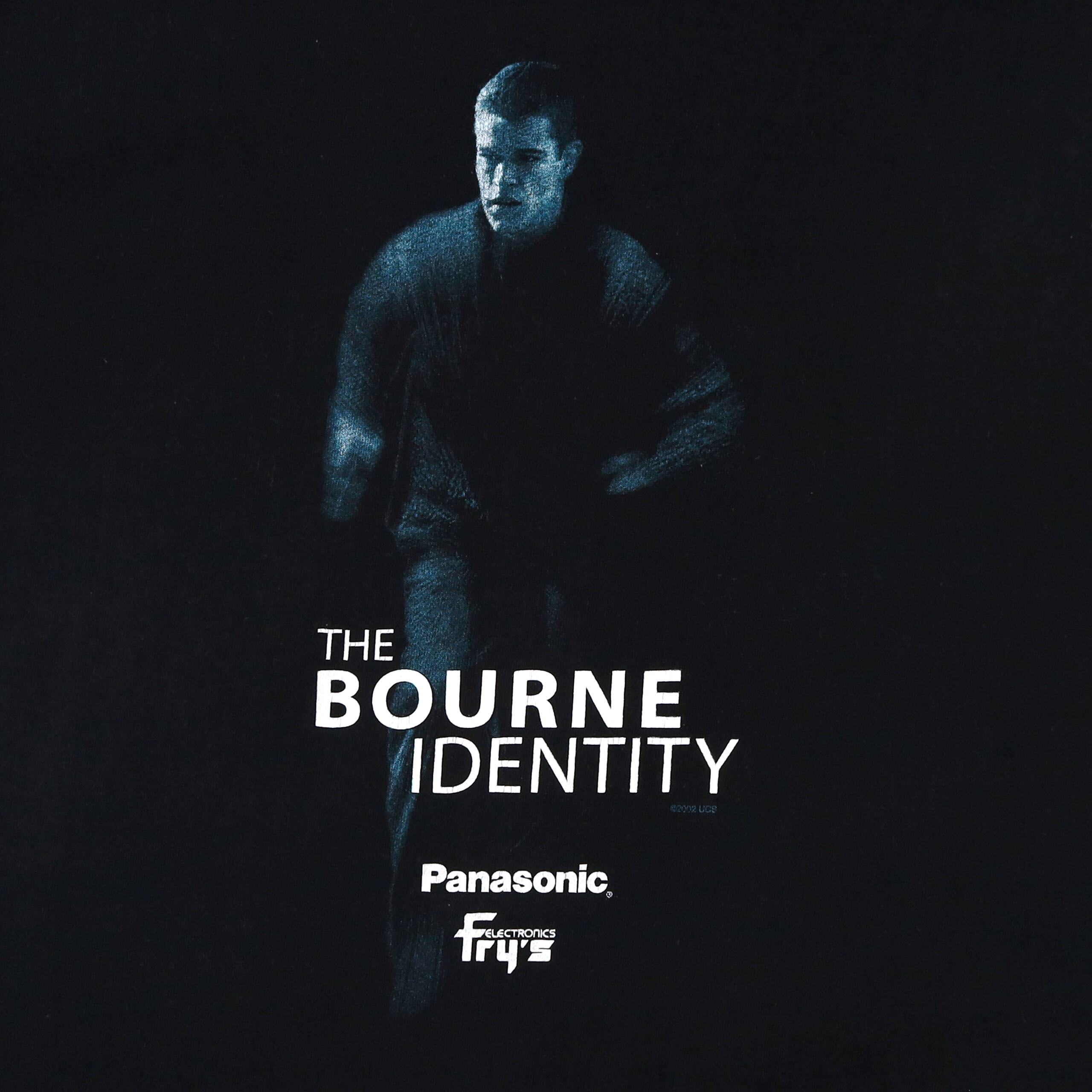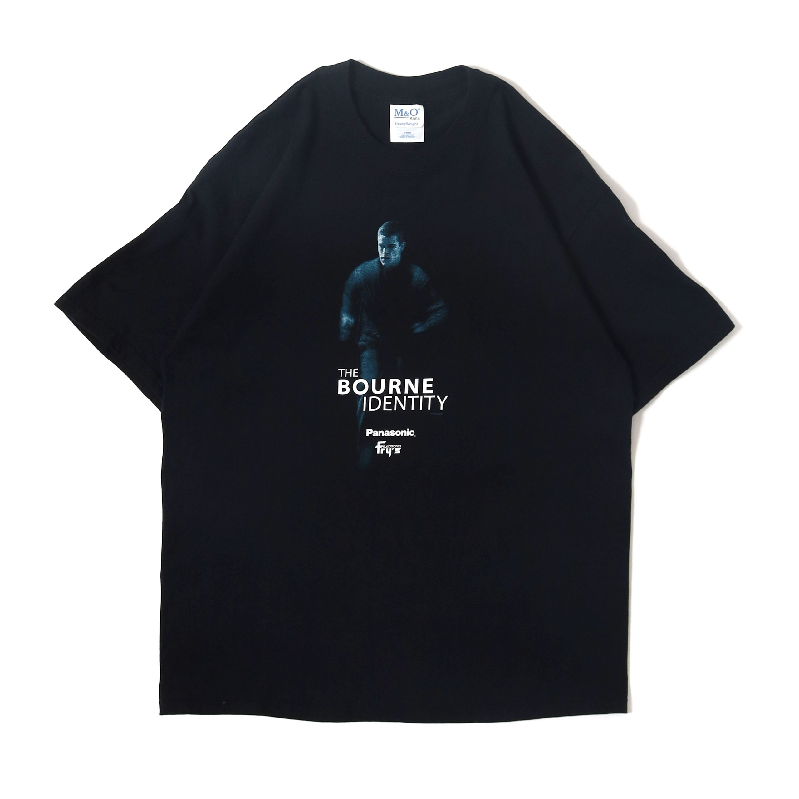 2002年公開の映画 "Bourne Identity" のプロモTシャツです。個人的に最も好きな映画の一つで、何回見たか分かりません。タイトルがプリントされただけのTシャツはたまに見かけますが、このマット・デイモンがプリントされているデザインはかなり希少で、かっこよさも段違いです。また当ショップとしては見逃せないポイントは、 Panasonicのロゴがプリントされている点。このデザインで日本企業のロゴ、ブラックボディでXL、状態も最高。言うことなしの1枚です。