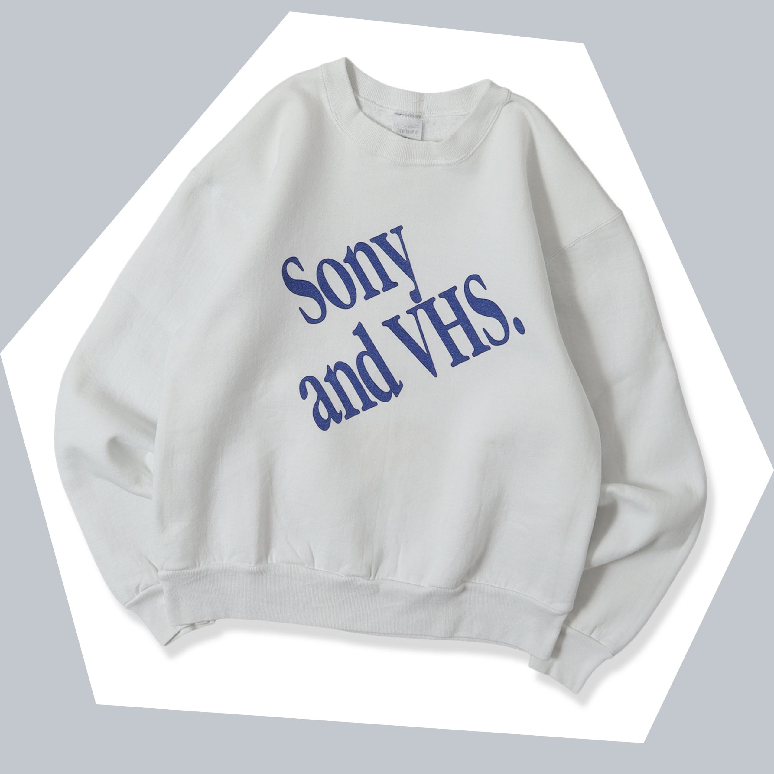 SONYのVHSのプロモスウェットです。SONYのプロモアイテム自体数は少なめですが、スウェットは超希少。オフィシャルなのかブートなのか分かりませんが、プリントのバランスやカラーリングが最高の1枚です。ぱっと見でSONYのものと分かりますが、ロゴのプリントがないので、いい意味で着やすさもあるかなと思います。サイズが小さめなのが残念ですが、合う方は是非。