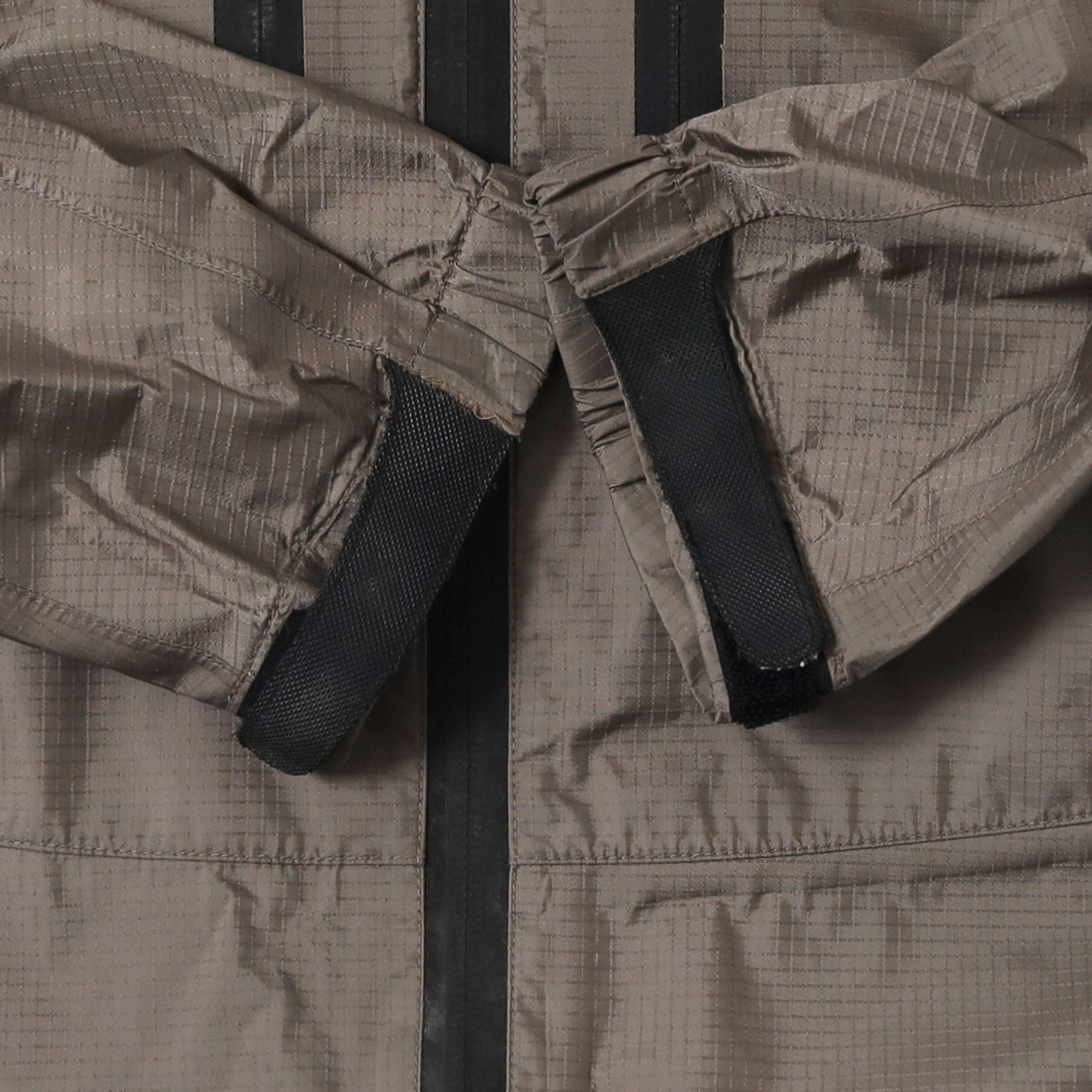 前身頃とジッパーに薄汚れ(画像15,16枚目)、後身頃に小さな薄汚れ(画像17枚目)、タグ付近と裏地にダメージ(画像19枚目)、袖ベルクロに多少の使用感(7枚目)あり。