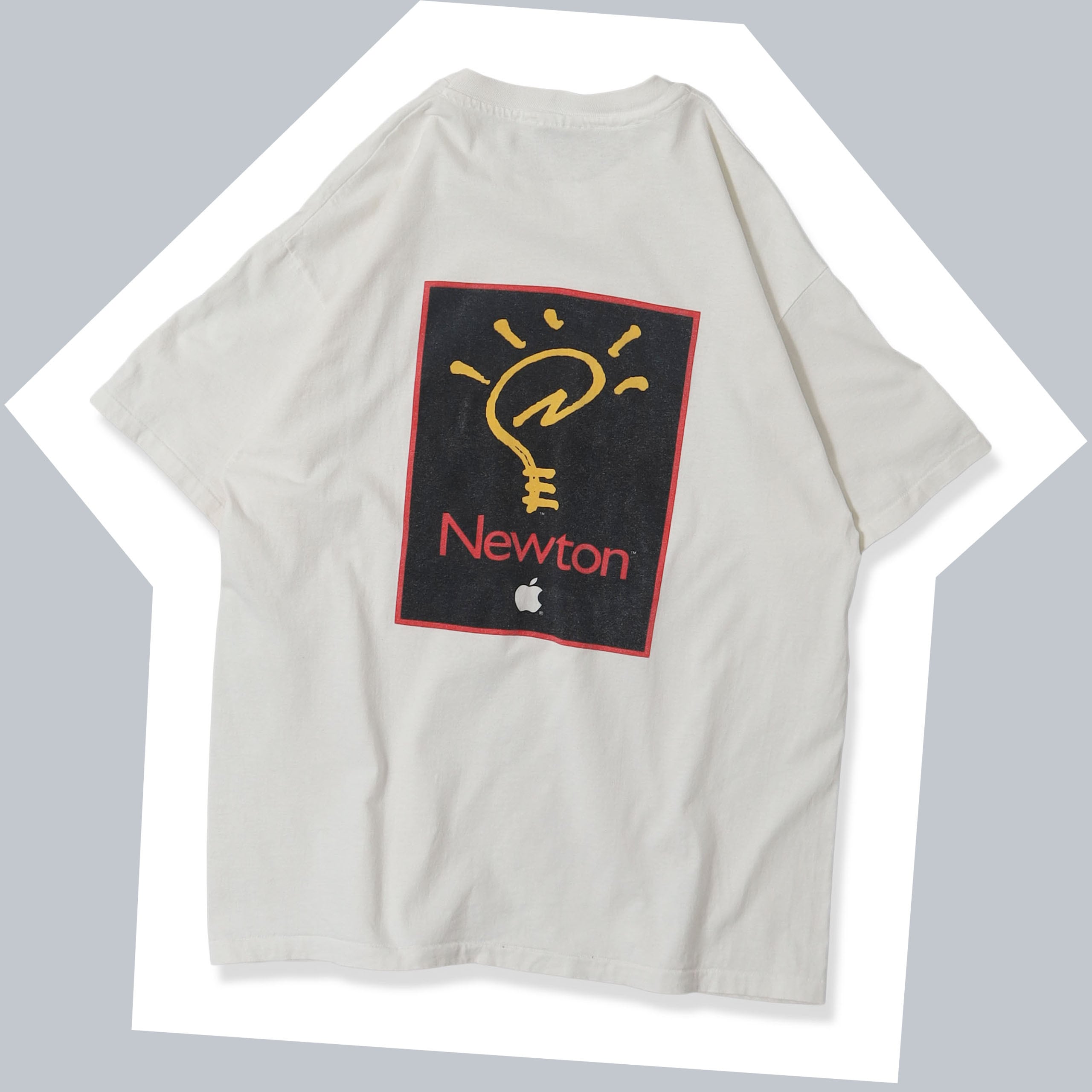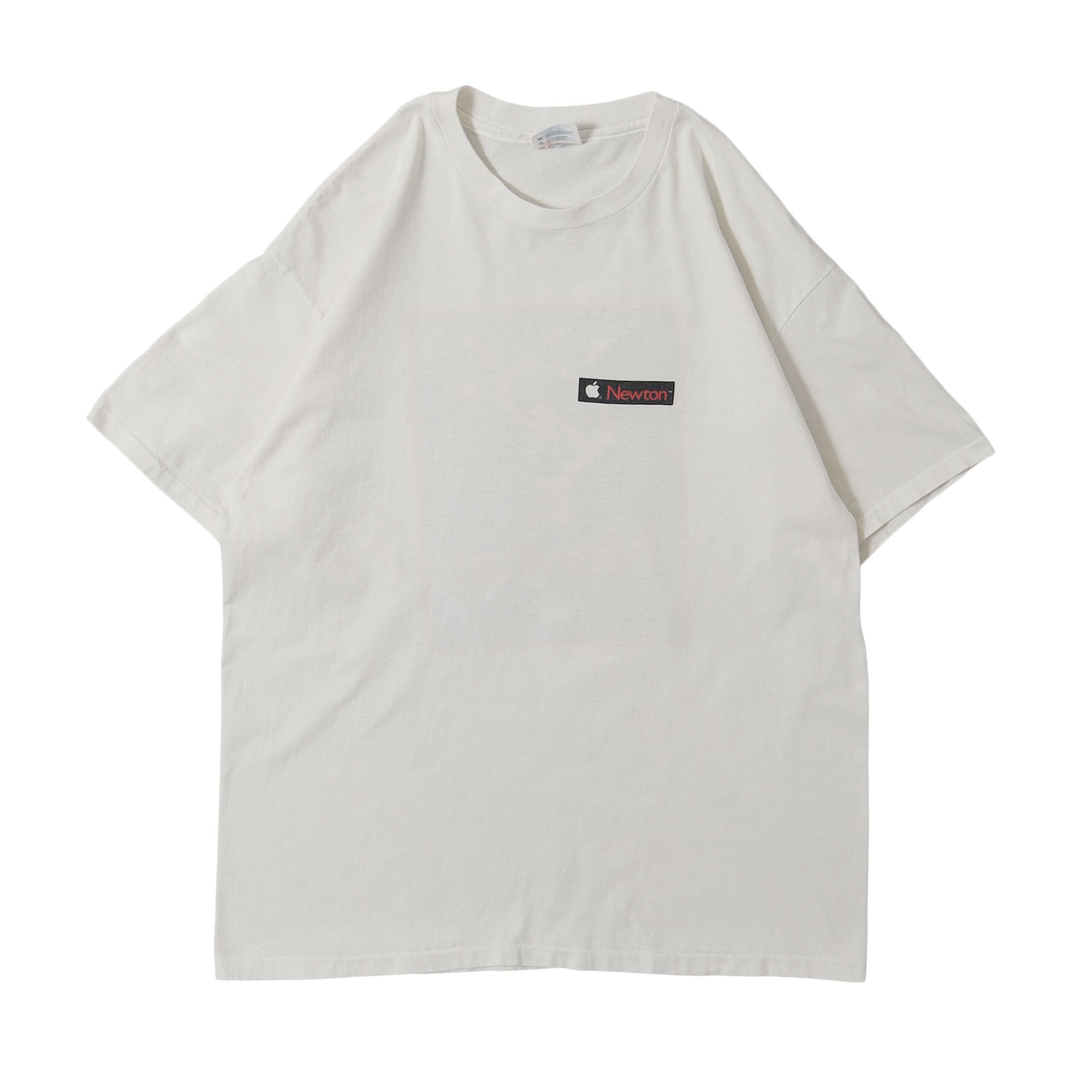 1993年から98年にかけて発売された個人用携帯端末 "Newton" のプロモTシャツ。Newtonは現在当たり前のように使っているiPhoneやiPadの先駆けのようなモバイル端末で、Newtonの実機に加え、こちらのTシャツのようなプロモグッズも高値で取引されています。NewtonのTシャツはかなり久々の入荷で、このデザインはNewtonの中では恐らく一番見るデザイン。インパクトのあるグラフィックとカラーリングがとても洒落た1枚です。
