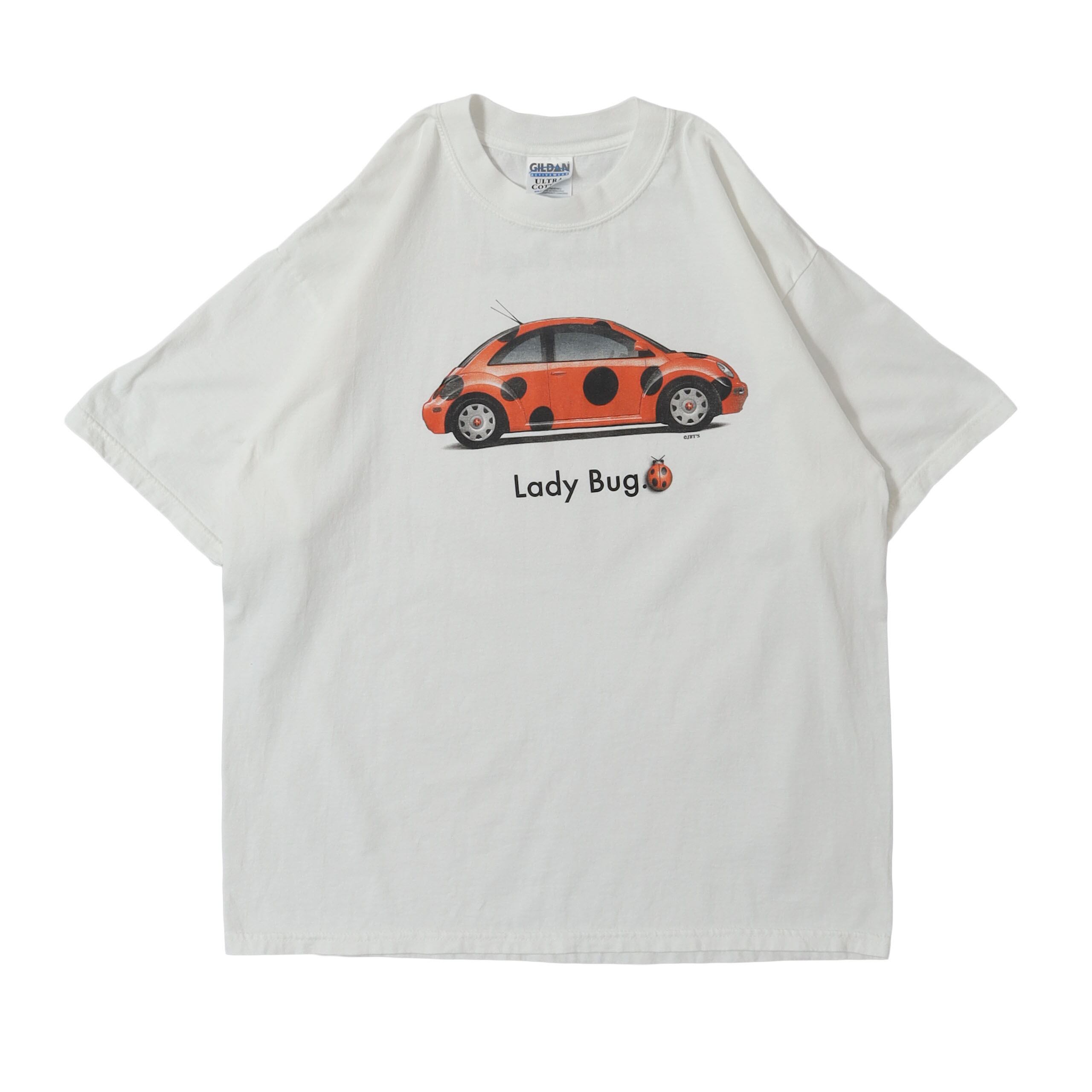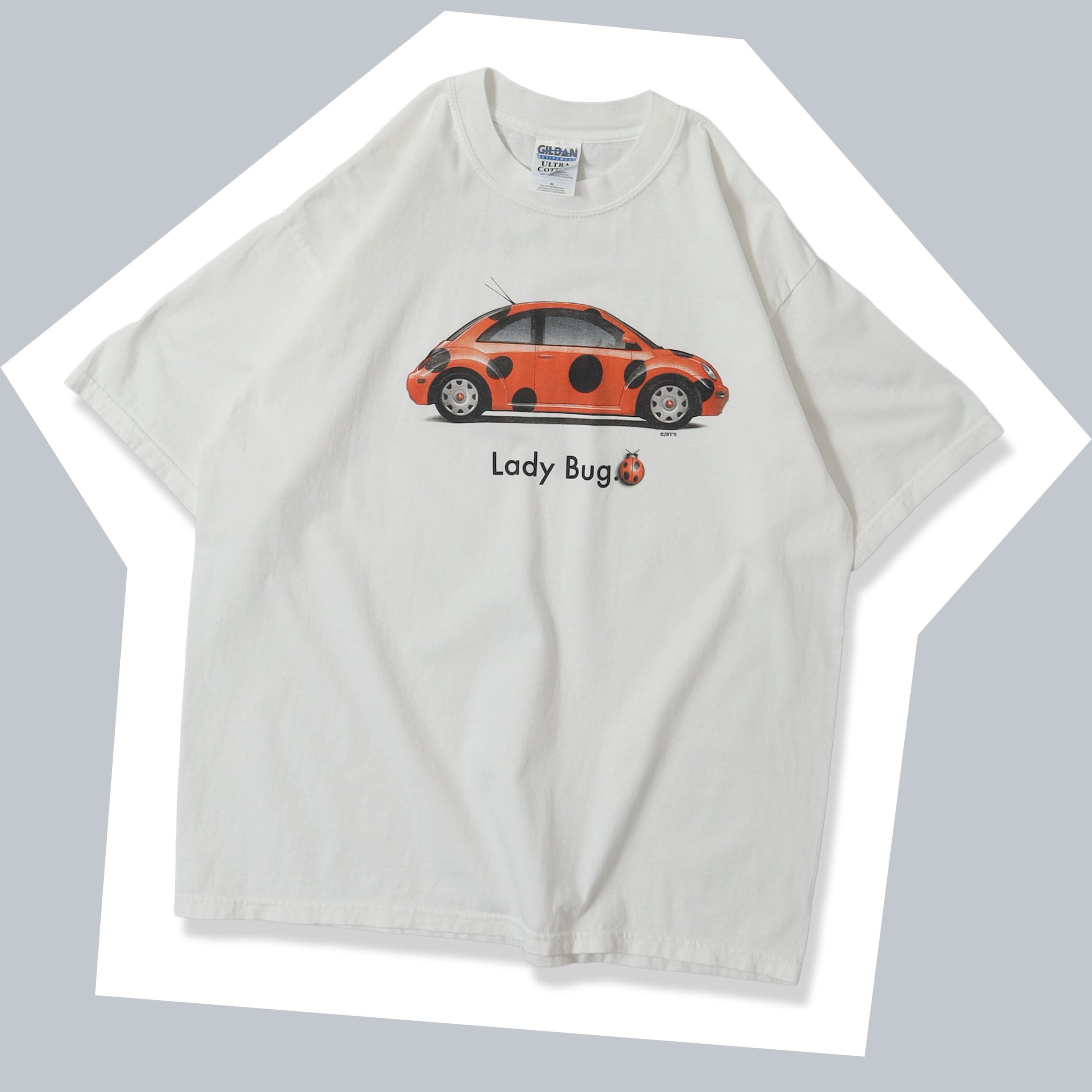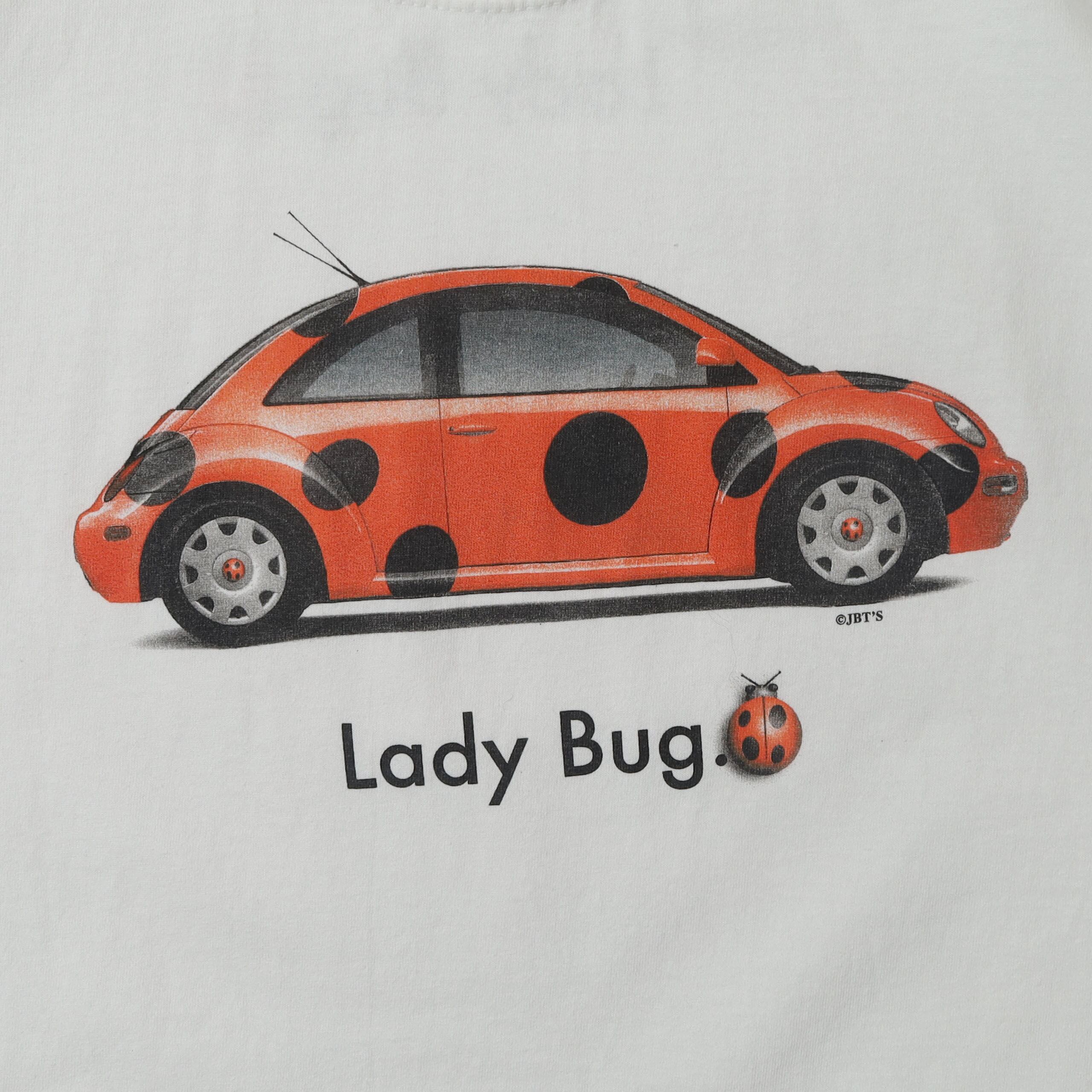 VolkswagenのビートルのプロモTシャツです。このパターンのTシャツは色々な種類があるのですが、このデザインは初入荷。車体にプリントされたてんとう虫の柄がとても可愛く、下に書かれた "Lady Bug" というのもてんとう虫の意味です。とてもキャッチーなデザインですので、コーディネートの良いアクセントになってくれる1枚かと思います。