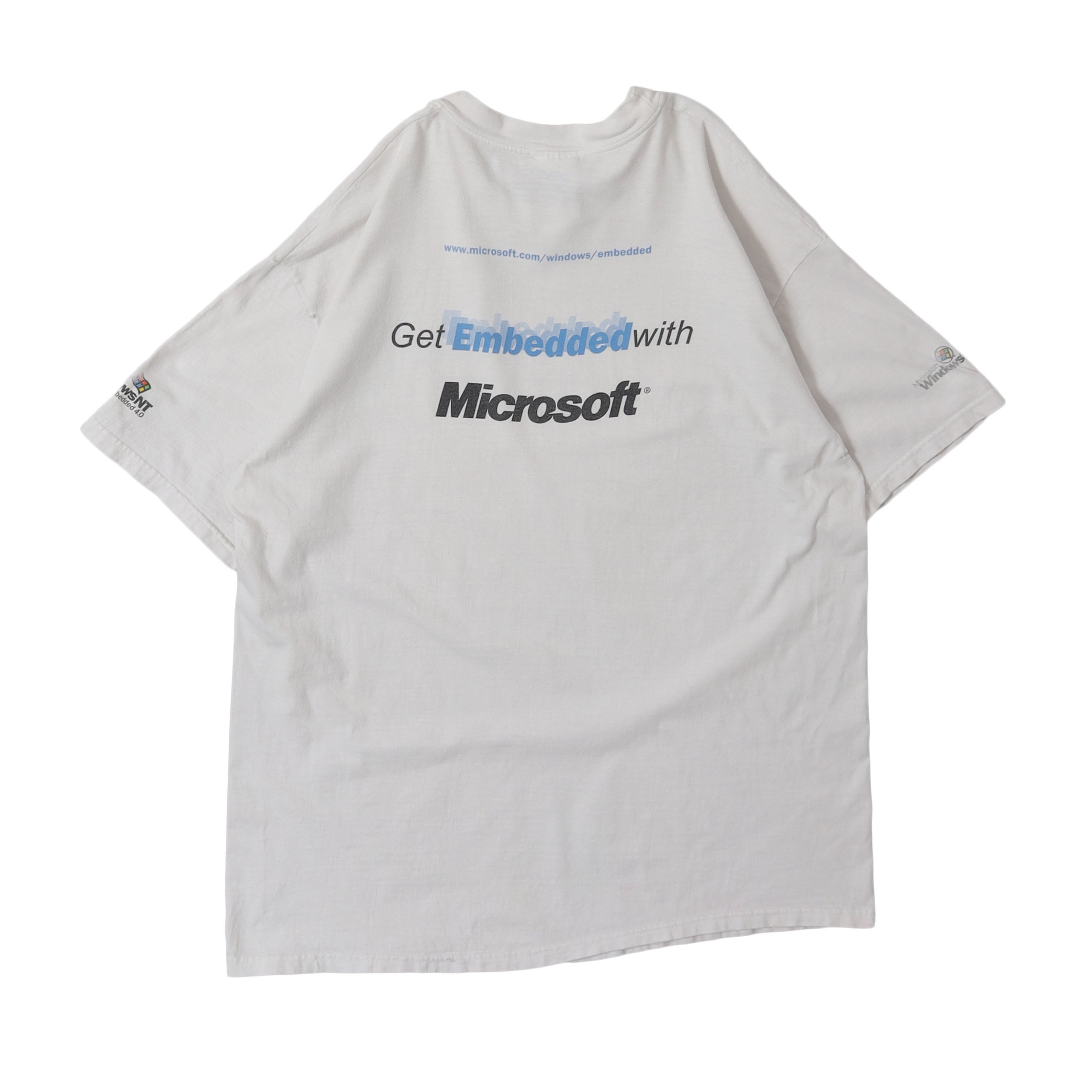 MicrosoftのプロモTシャツです。WindowsのプロモTは多種多様なデザインが存在しますが、こちらはプリントの加減が派手すぎず、シンプルすぎず、とてもバランスの良いプリントの1枚です。しっかりWindowsの旧ロゴがプリントされているのも嬉しいポイントで、大きめのプリントのパターンに比べ着やすいデザインかと思います。文字要素のバランスもとてもカッコいい仕上がりです。