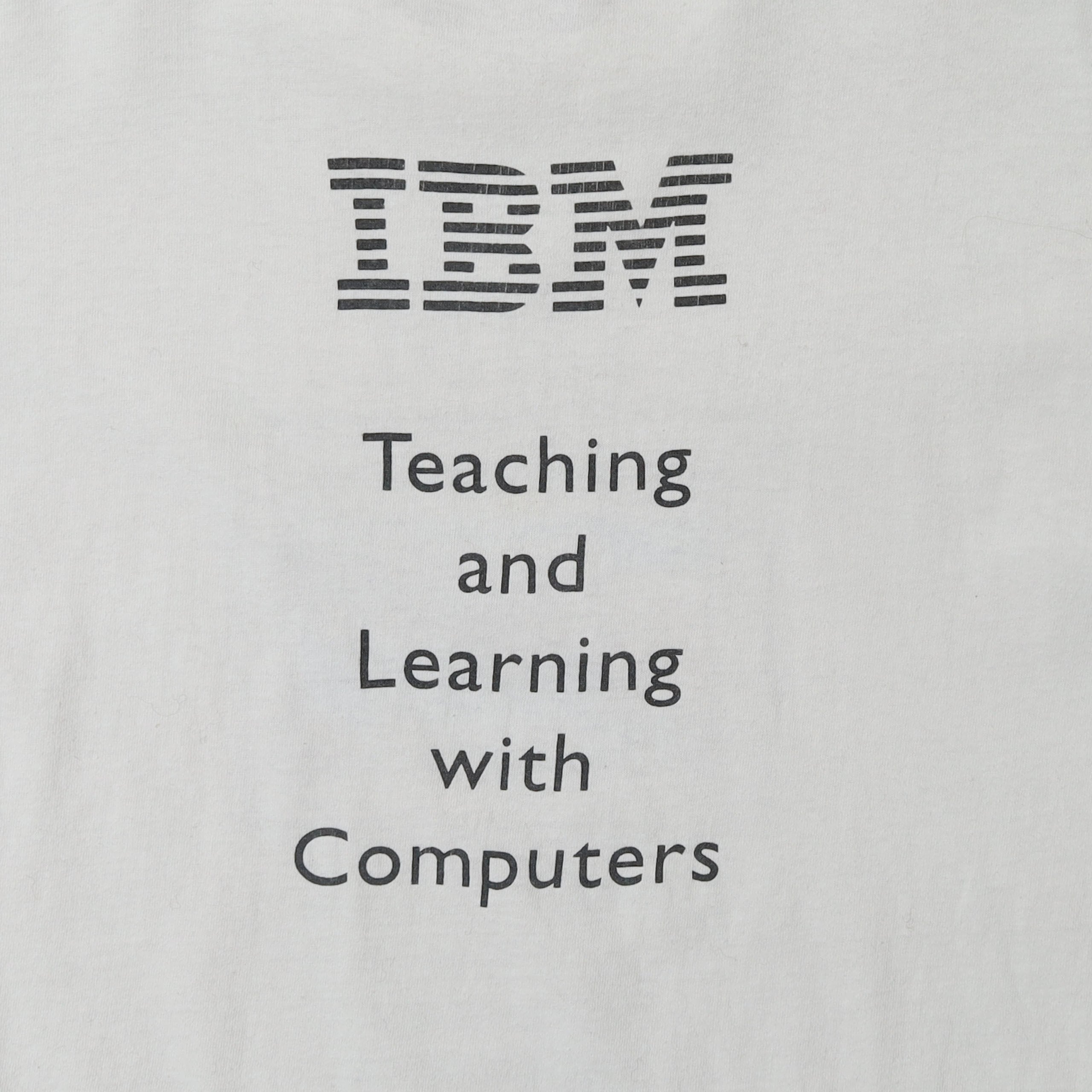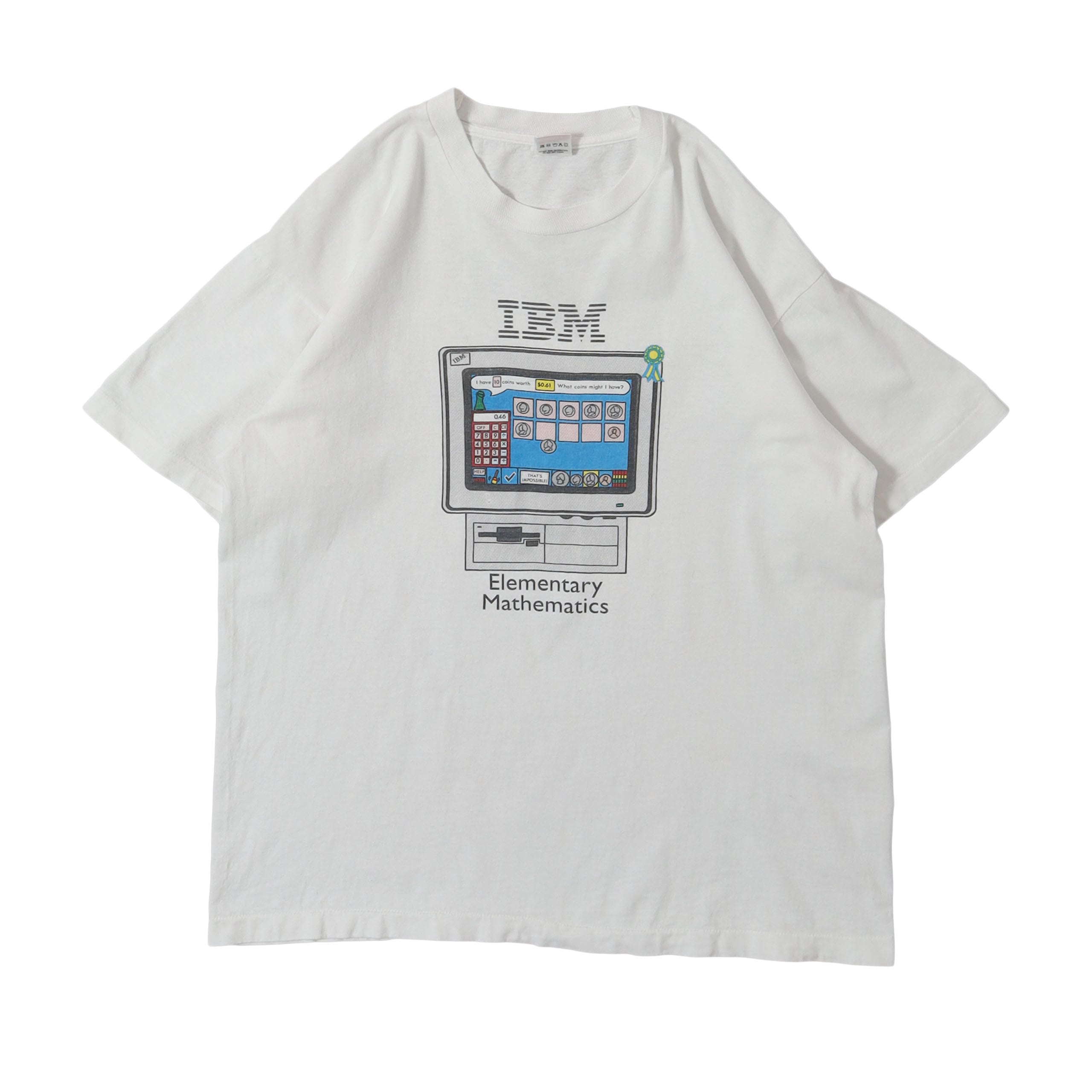 IBMのプロモTシャツです。小学校教育にコンピューターを導入しましょう、みたいな意図で作られたTシャツかと思います。初見のデザインで、可愛い雰囲気のコンピューターのグラフィックに、画面にも算数の教材がしっかり表示されている細かさも企業Tならでは。IBMなら欲しいロゴのプリントもしっかりあり、バックプリントのバランスなんかも完璧です。