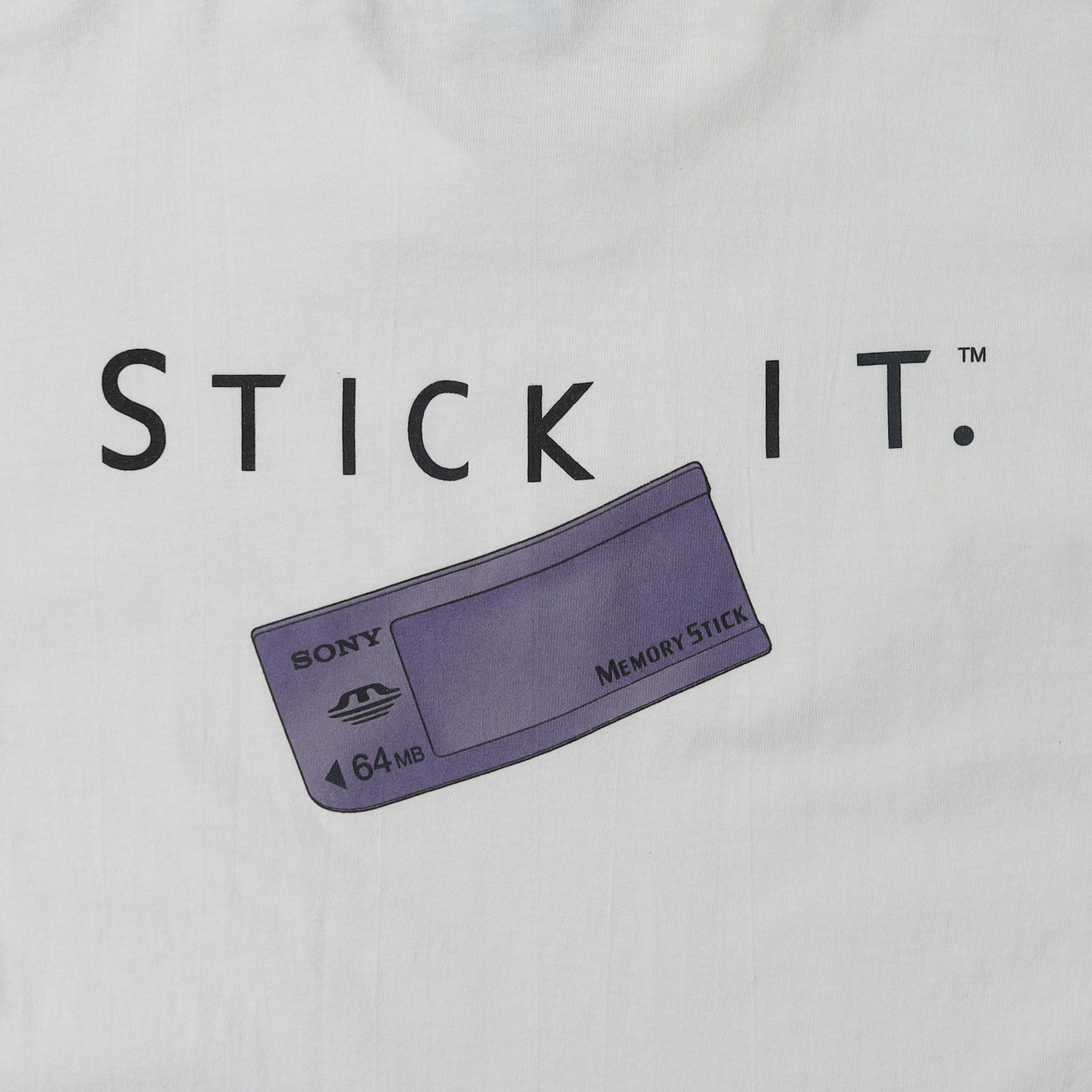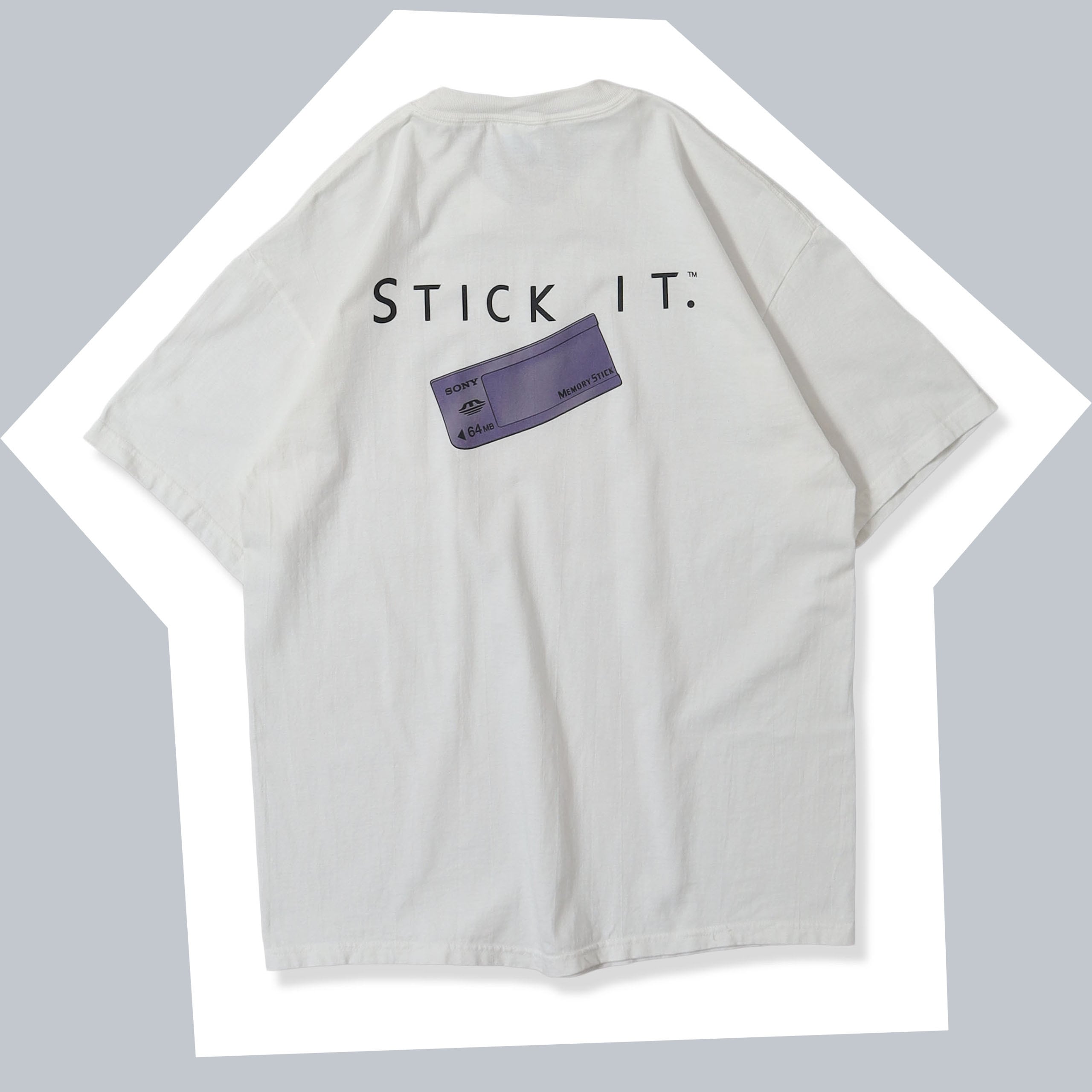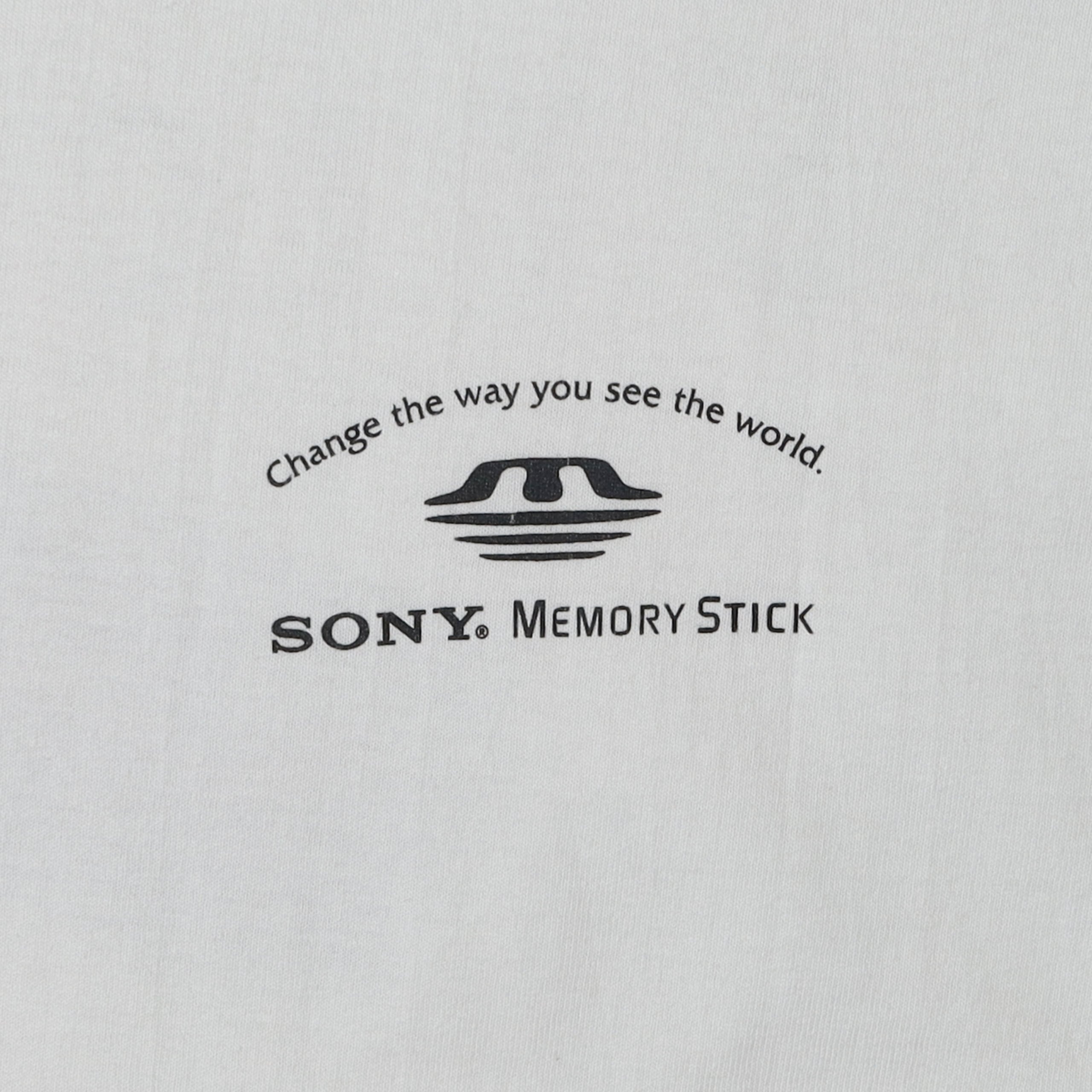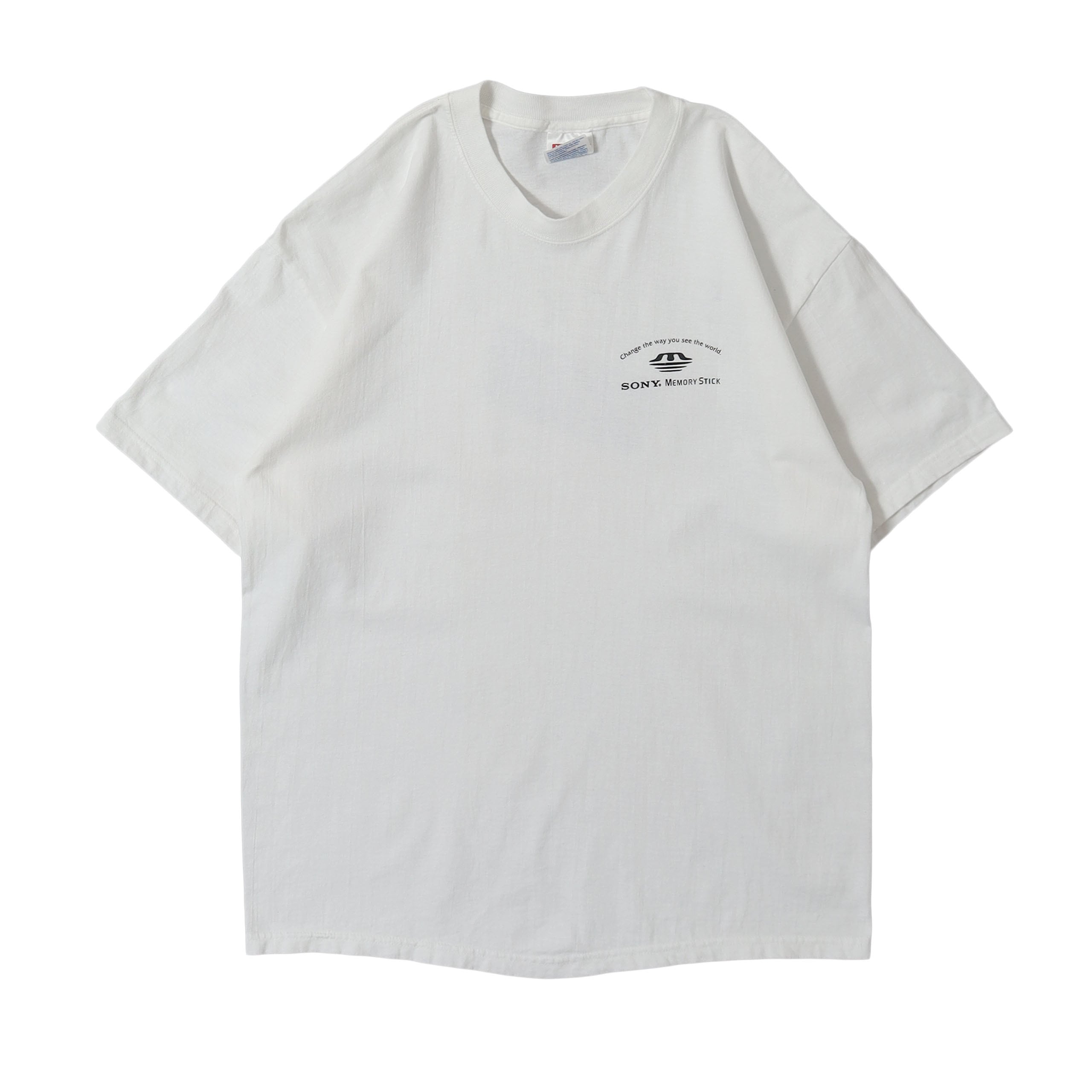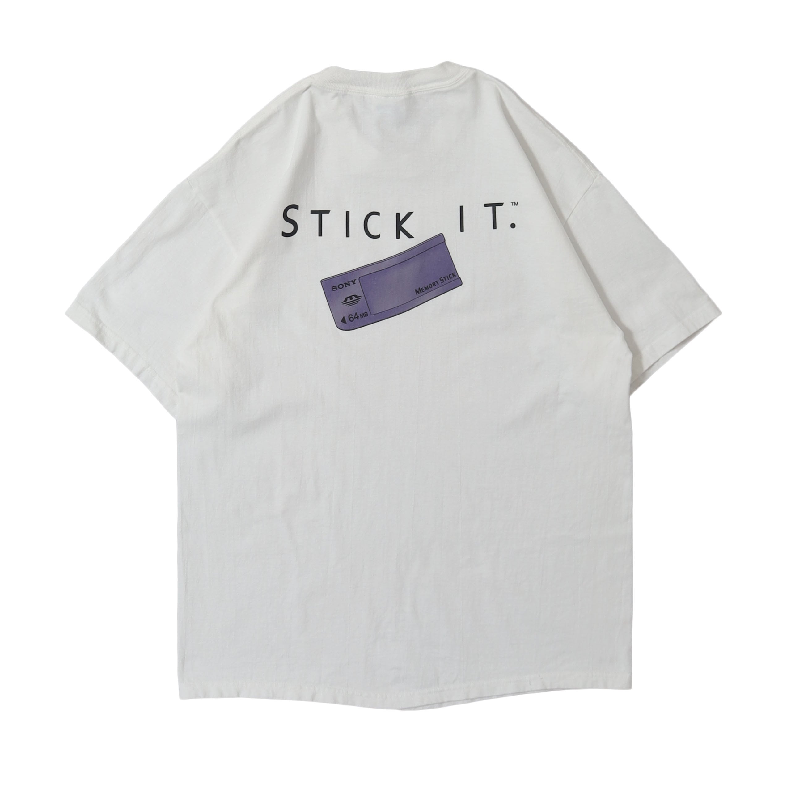 1997年にSONYから発表された小型のメモリーカード "MEMORY STICK" のプロモTシャツです。こちらは初入荷のデザイン。企業Tらしい王道のバランスですが、バックプリントの独特な程よく力の抜けた雰囲気はあまり見ません。胸元のプリントにはしっかりとSONYのロゴが入っているのも嬉しいポイントです。状態もピンピンです。