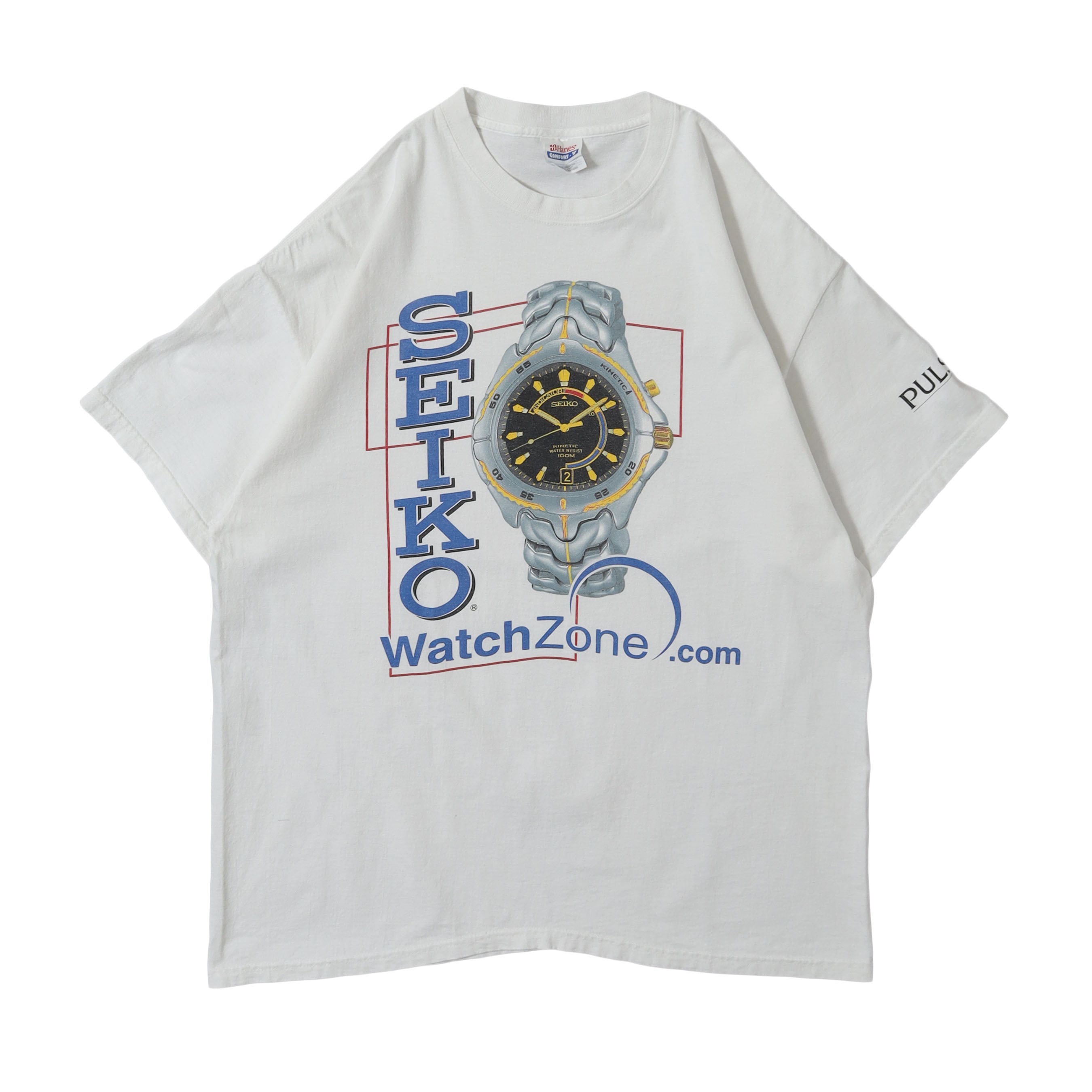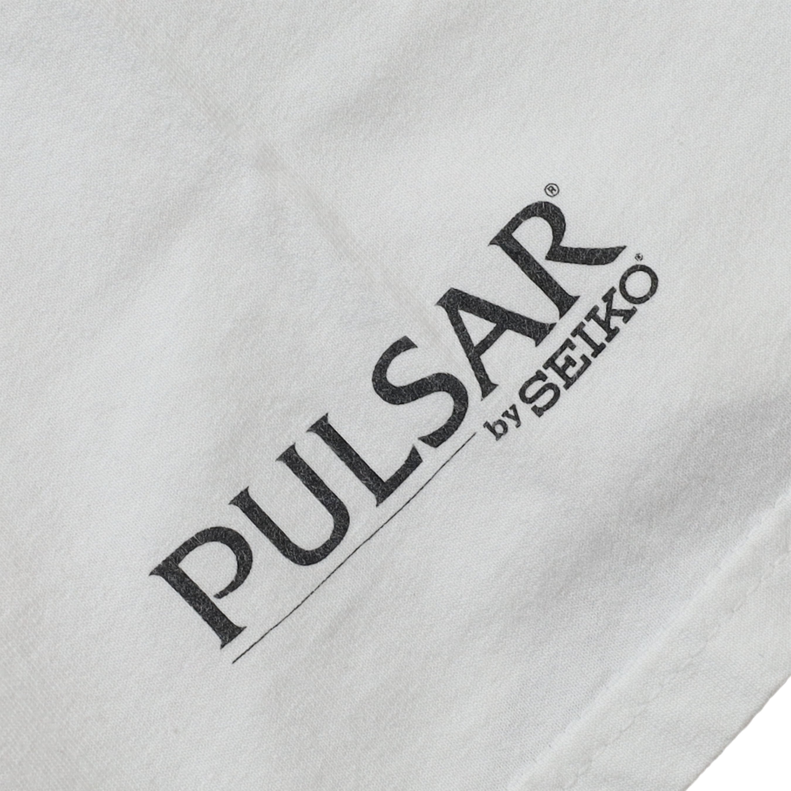 非常にスペシャルな1枚が入荷しました。おそらく "Watch Zone" という時計屋が作ったSEIKO "PULSAR" のプロモーションTシャツです。時計のTシャツは当ショップでも販売したことのあるSWATCHのものしか基本見かけないですが、こちらは超レアなSEIKO。さらに特筆すべきはデザインの良さで、大きめなプリントでここまでいいデザインのものは企業TEE全体見てもなかなかないと思います。正直売りたくない1枚。もう2度と買い付けられそうにないので、是非この機会に。