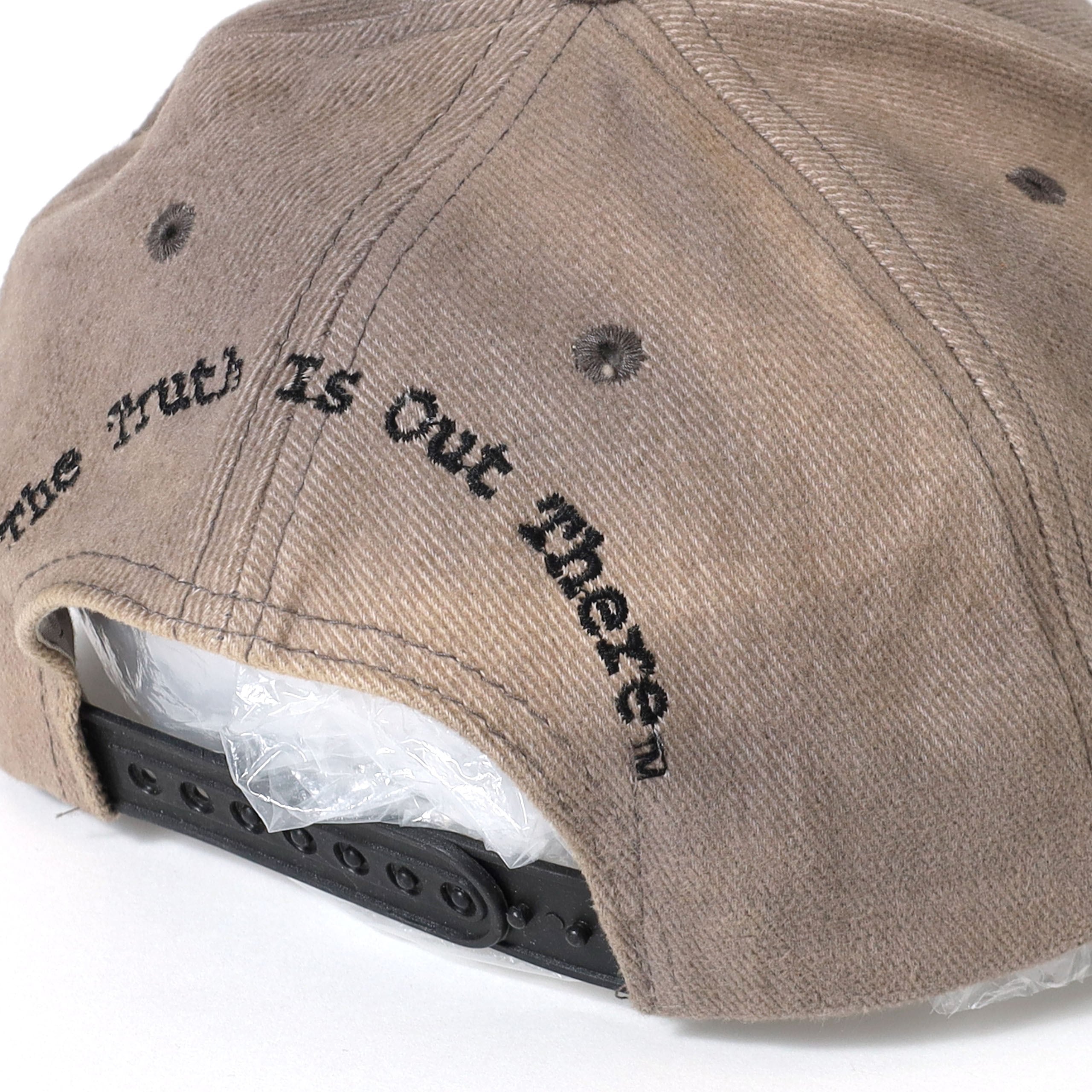 1993年から2002年にかけてアメリカで製作された、オカルトや超常現象をテーマにしたテレビドラマ "X FILES" のプロモキャップです。私は見たことがないですが、かなりのシーズン製作されており、とても人気のドラマみたいです。作品は知らなくても古着の世界ではたまに見かけるプロモアイテムですが、個人的にはキャップの仕上がりが一番良いと思ってます。ロゴだけの刺繍ですが、そのロゴのデザインや刺繍の大きさがカッコよく、ボディのカラーリングもとても洒落てます。
