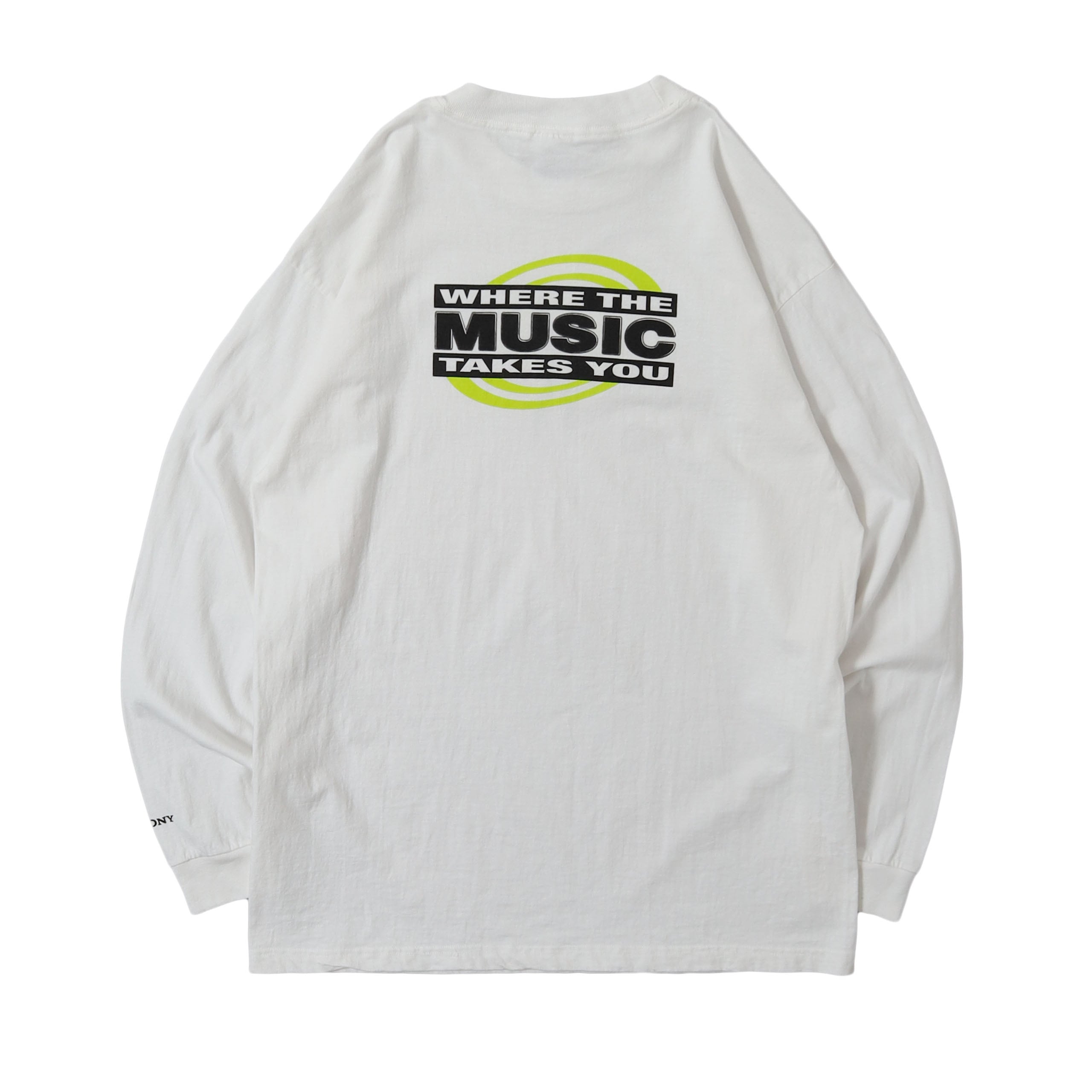 SONYのプロモTシャツです。このTシャツは何度か販売してきましたが、個人的にとても好きなデザインで、絶妙なY2K的なノリのグラフィックとカラーリング、そしてプリントのバランスが抜群です。ブラックボディもあるのですが、このホワイトボディにブラックと蛍光グリーンのような配色がとてもかっこいいんですよね。時期的にはまさに今必要な1枚かと思います。