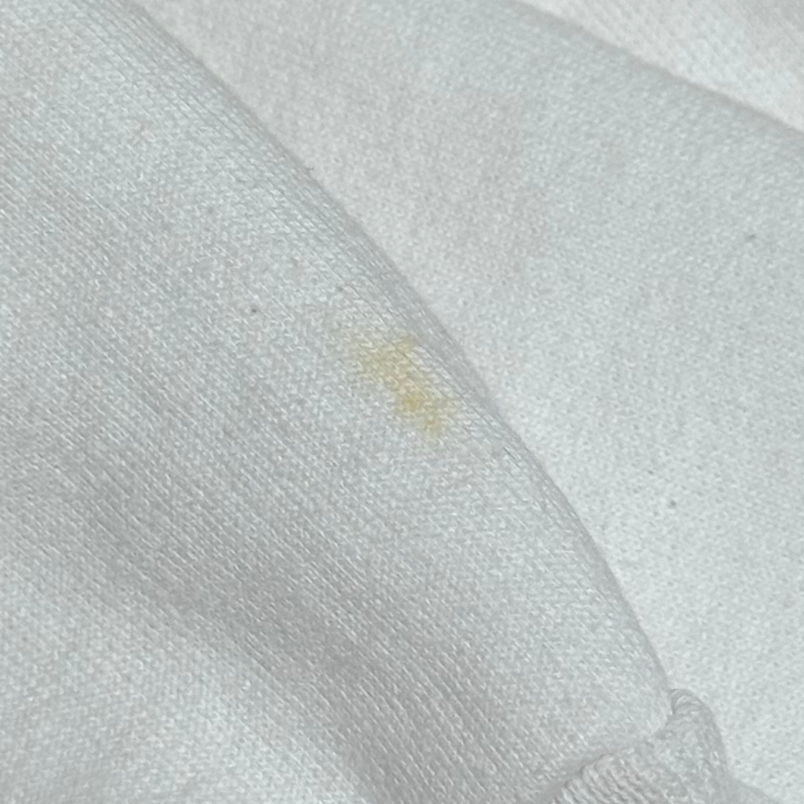 ポリ混特有の若干の毛羽立ち感、ネック右に小さな薄シミ(画像6枚目)、左袖前と後ろに気にならない程度の薄シミ(画像7,8枚目)、左袖先にシミ(画像9枚目)あり。
