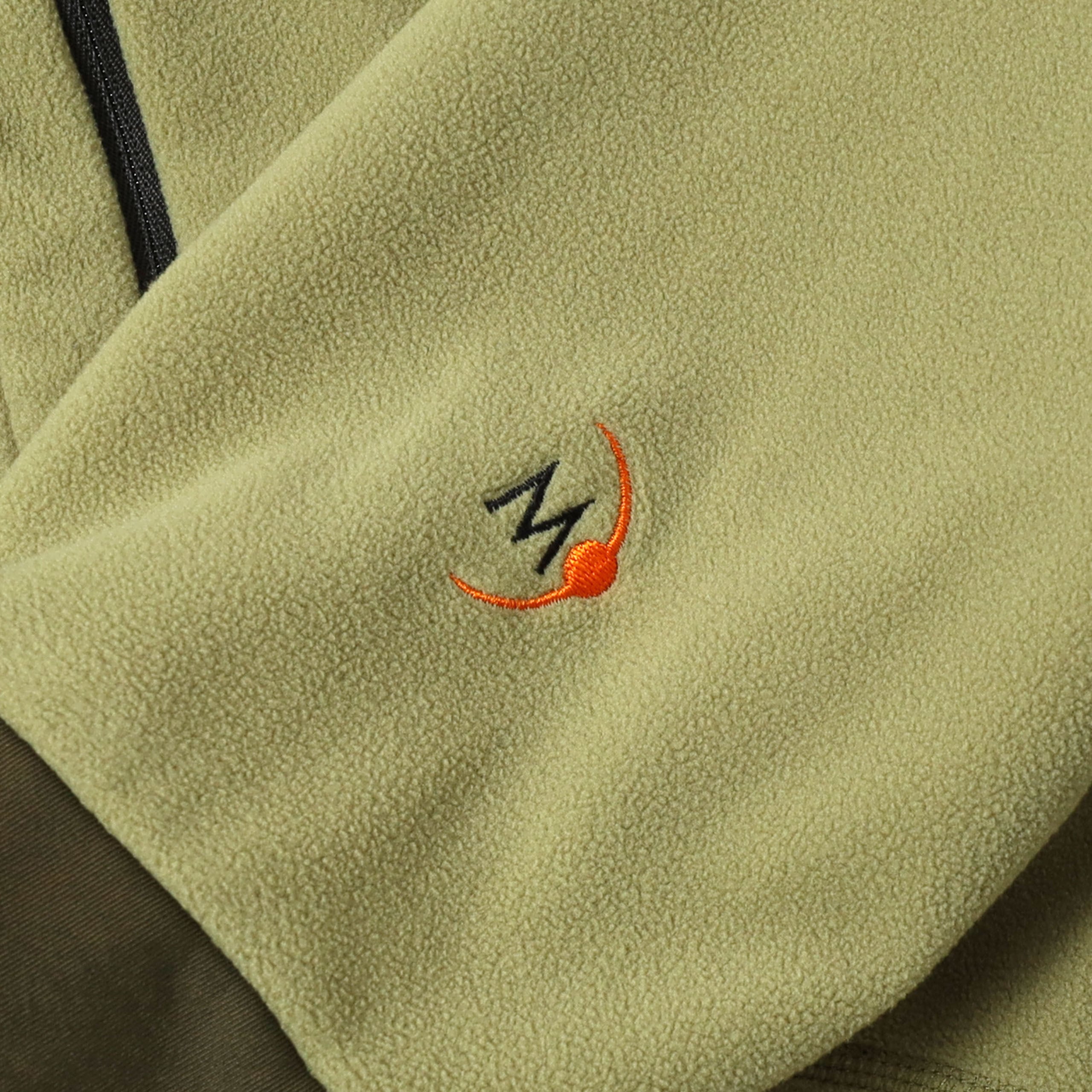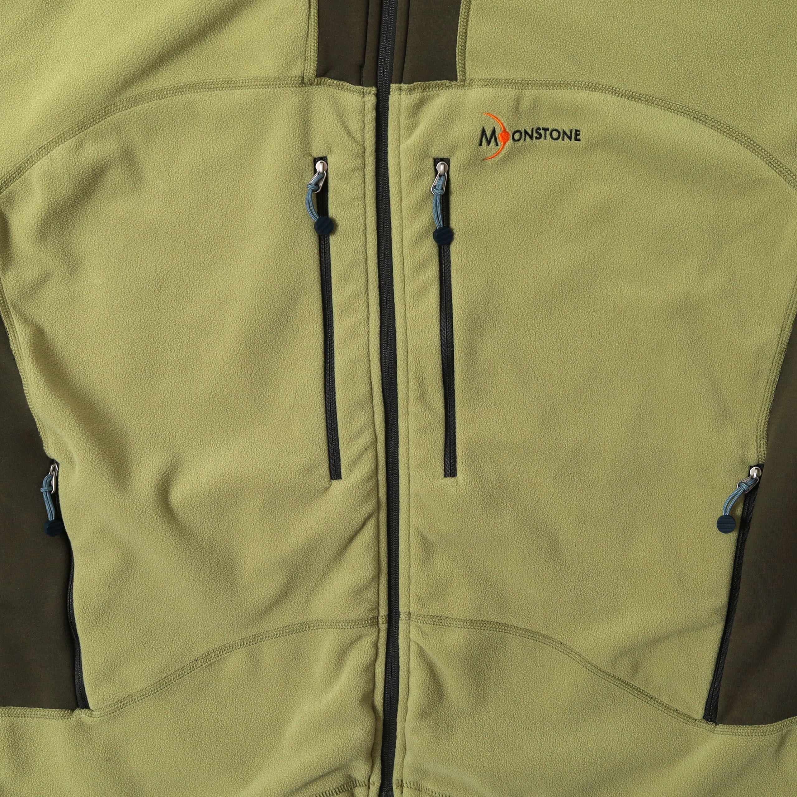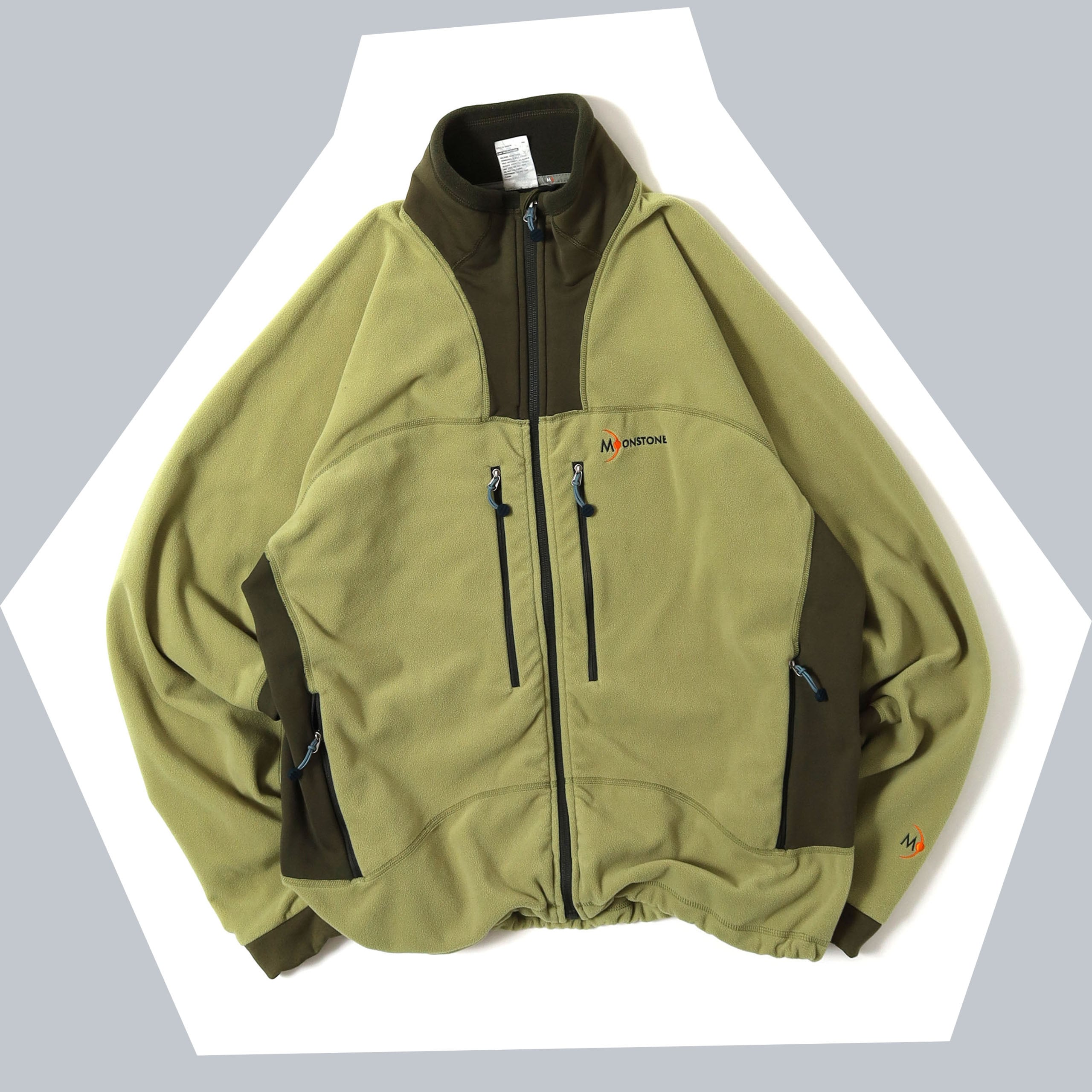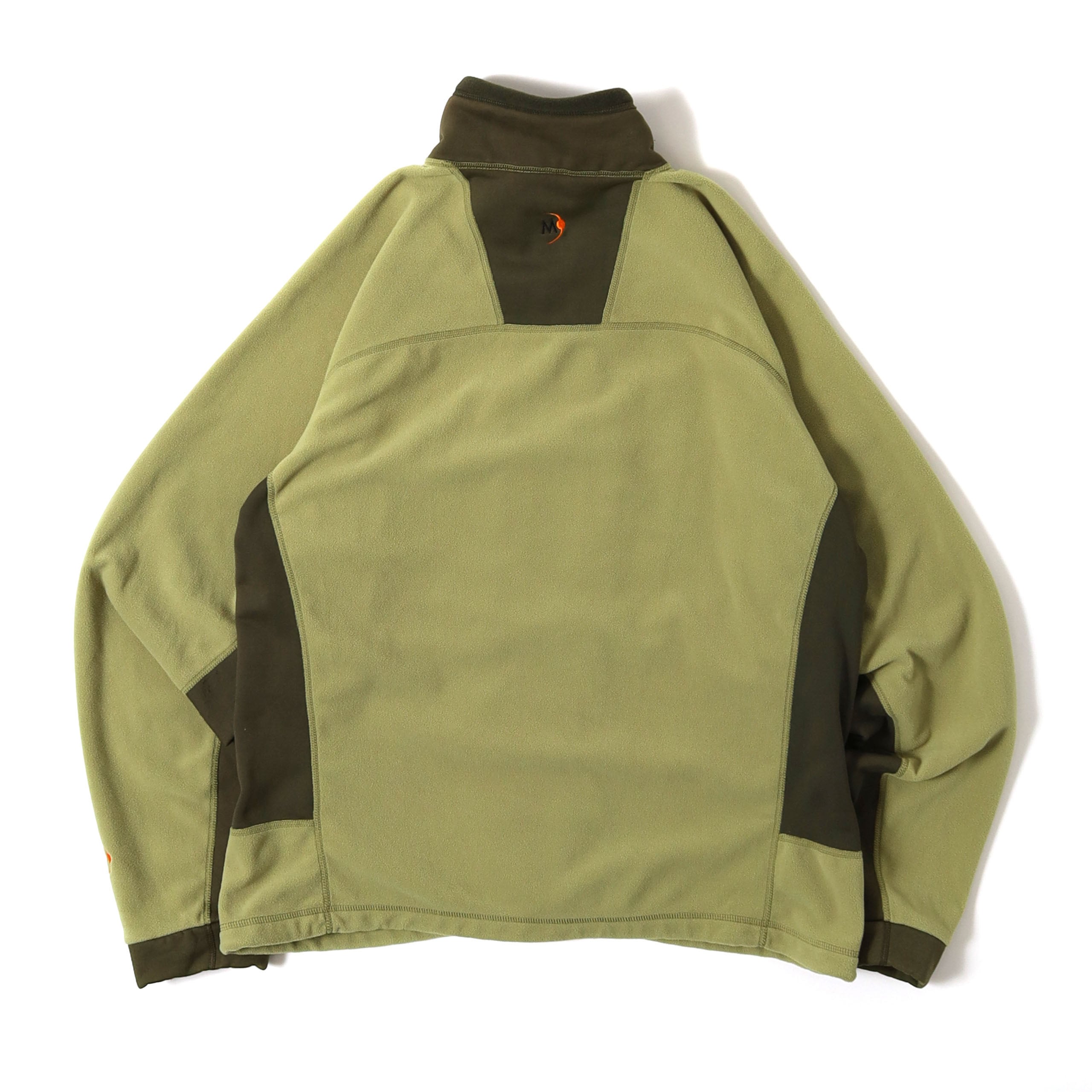 かつて存在したアウトドアブランド、MOONSTONEのフリースです。こちらは初見のモデルで、サイドとネック付近の切り替えが特徴的な1着。ライムグリーンのようなカラーもとても洒落ていて、デザインとの相性もバッチリです。またマイクロフリースのような生地も上質で気持ちよく、低めのスタンドカラーで着た時のシルエットもたまりません。
