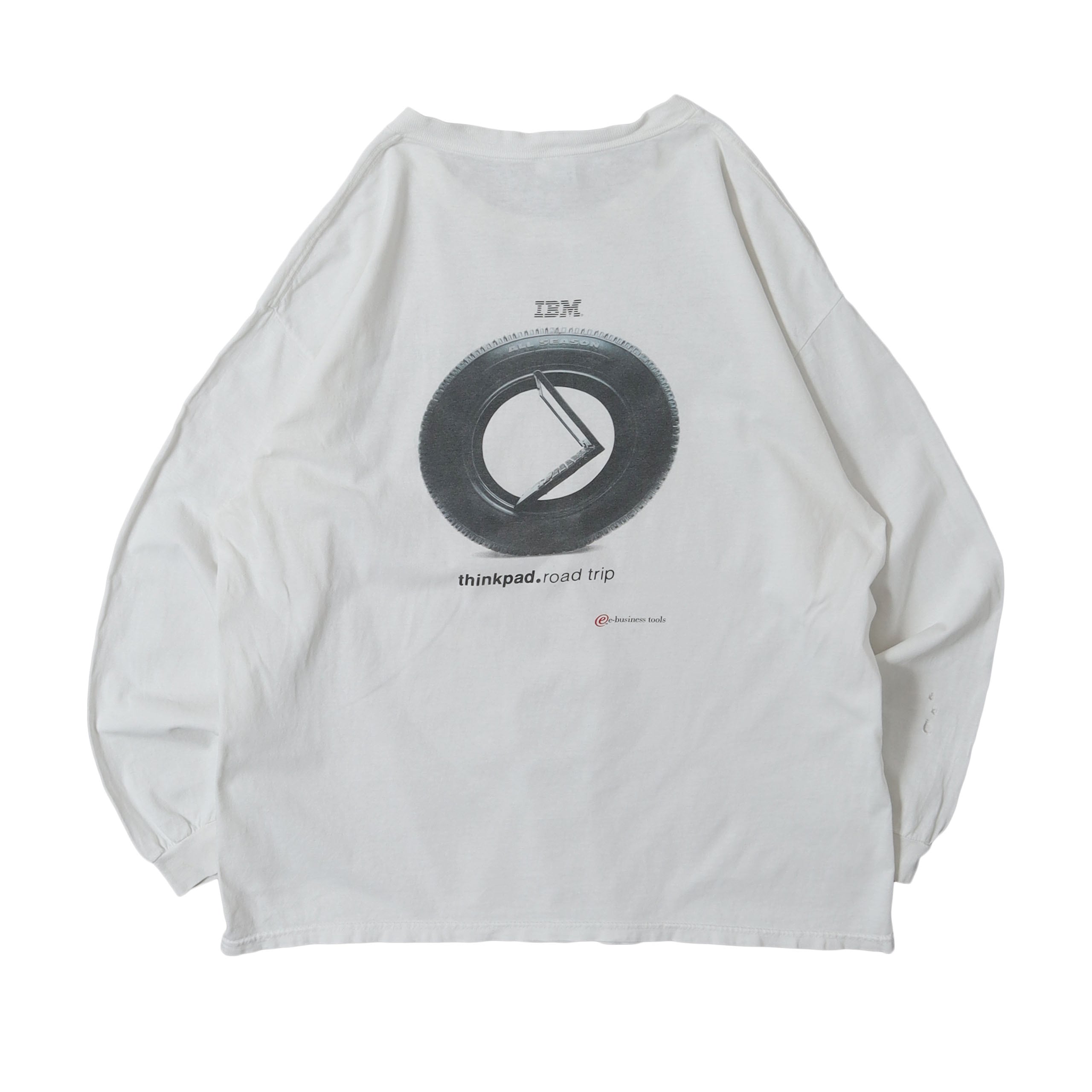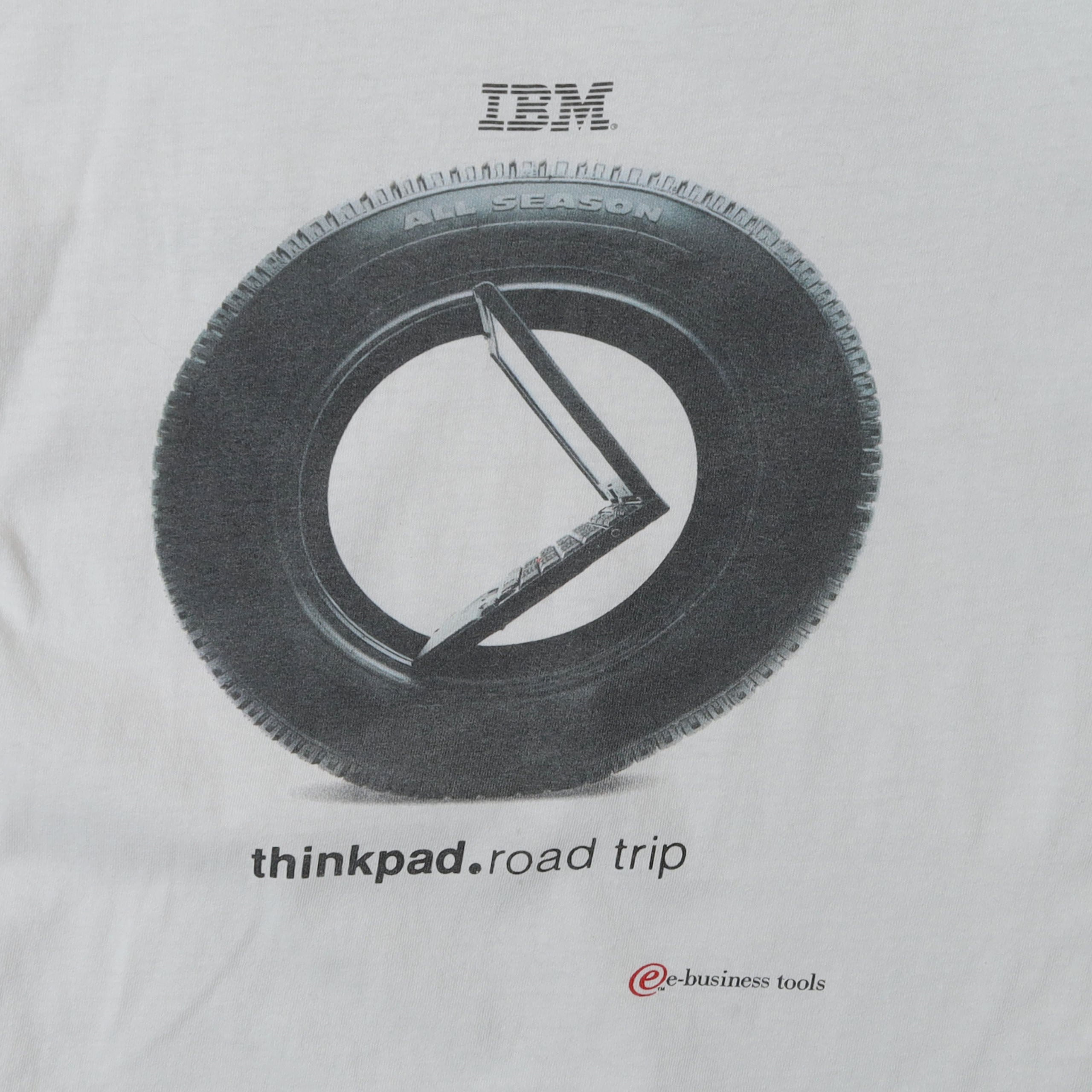 IBMによって開発・販売されたコンピューター "ThinkPad" のプロモTシャツです。ThinkPadモノはとてもいいデザインのものが多いのですが、こちらも企業モノらしい広告のようなグラフィックがセンス抜群の1枚。絶妙なバランスのプリントバランスがたまりません。ThinkPadでロングスリーブというのは見たことがありません。ダメージや汚れがあるのが残念ではありますが、なかなか出会えないデザインです。