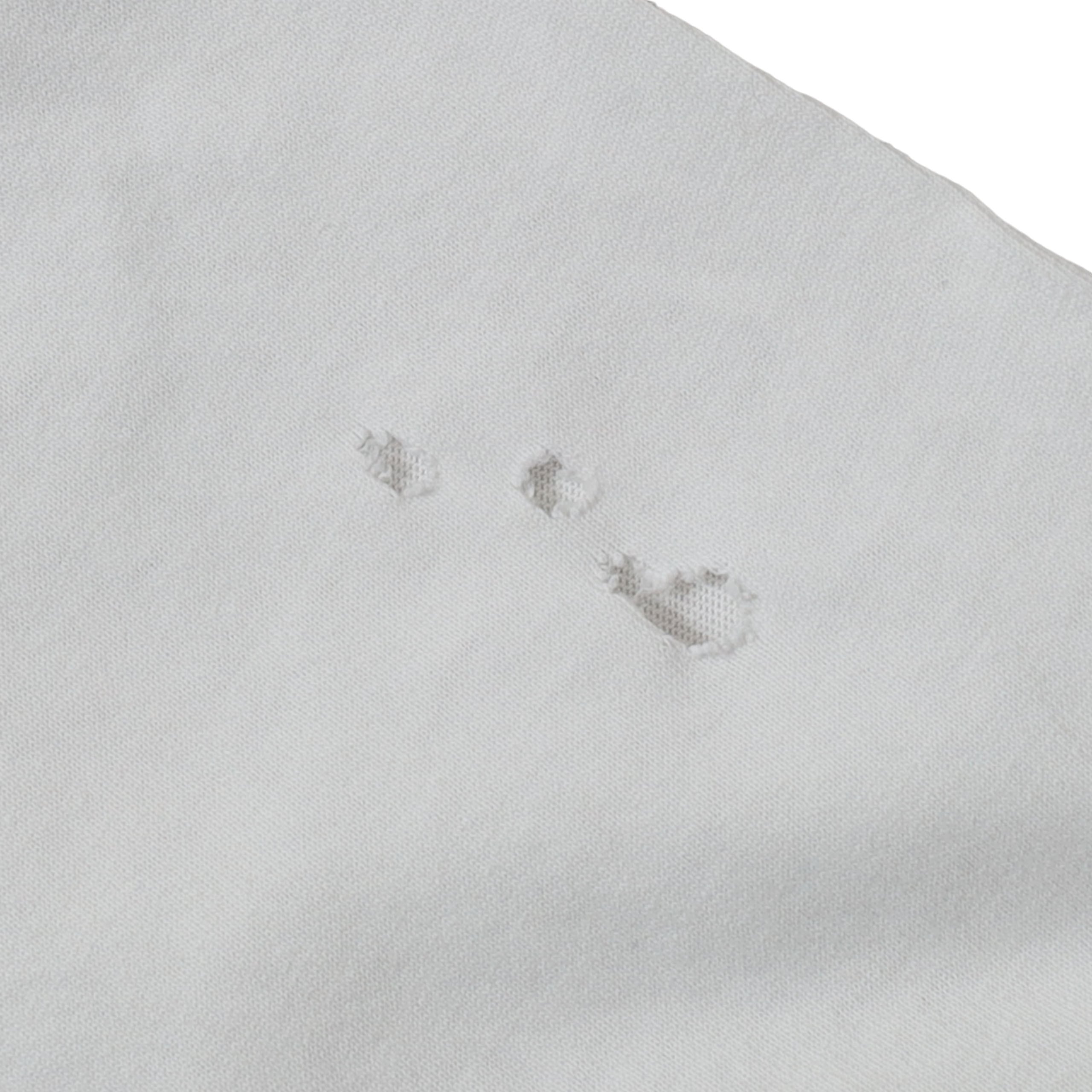 やや生地の痩せ、前身頃と右袖後ろ(画像7,8枚目)、前身頃裾に汚れ(画像9枚目)、右袖先前に薄汚れ(画像10枚目)、左袖先後ろにかなり薄く小さな汚れ(画像11枚目)、後身頃にかなりうっすらとした点状の汚れ(画像12,13枚目)あり。