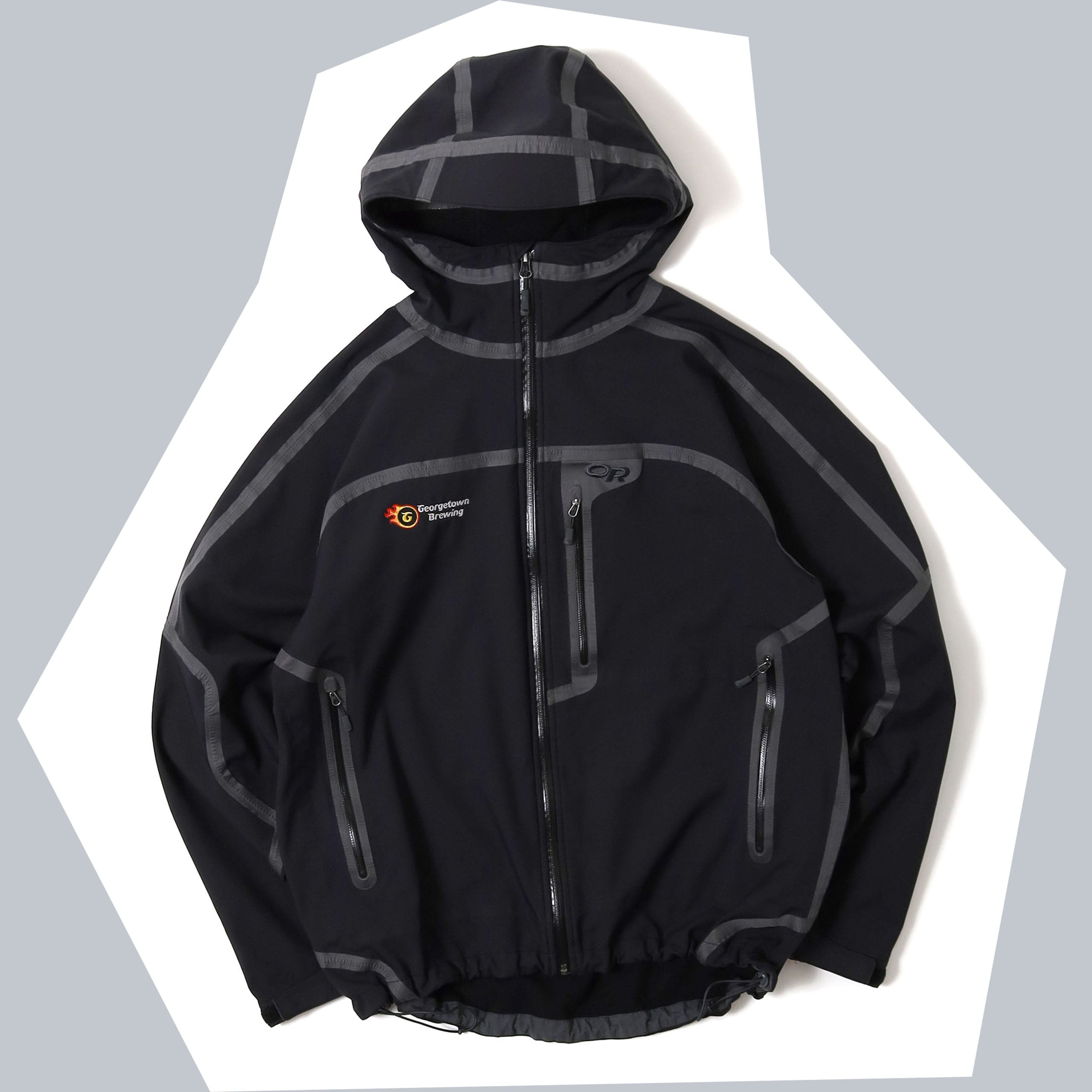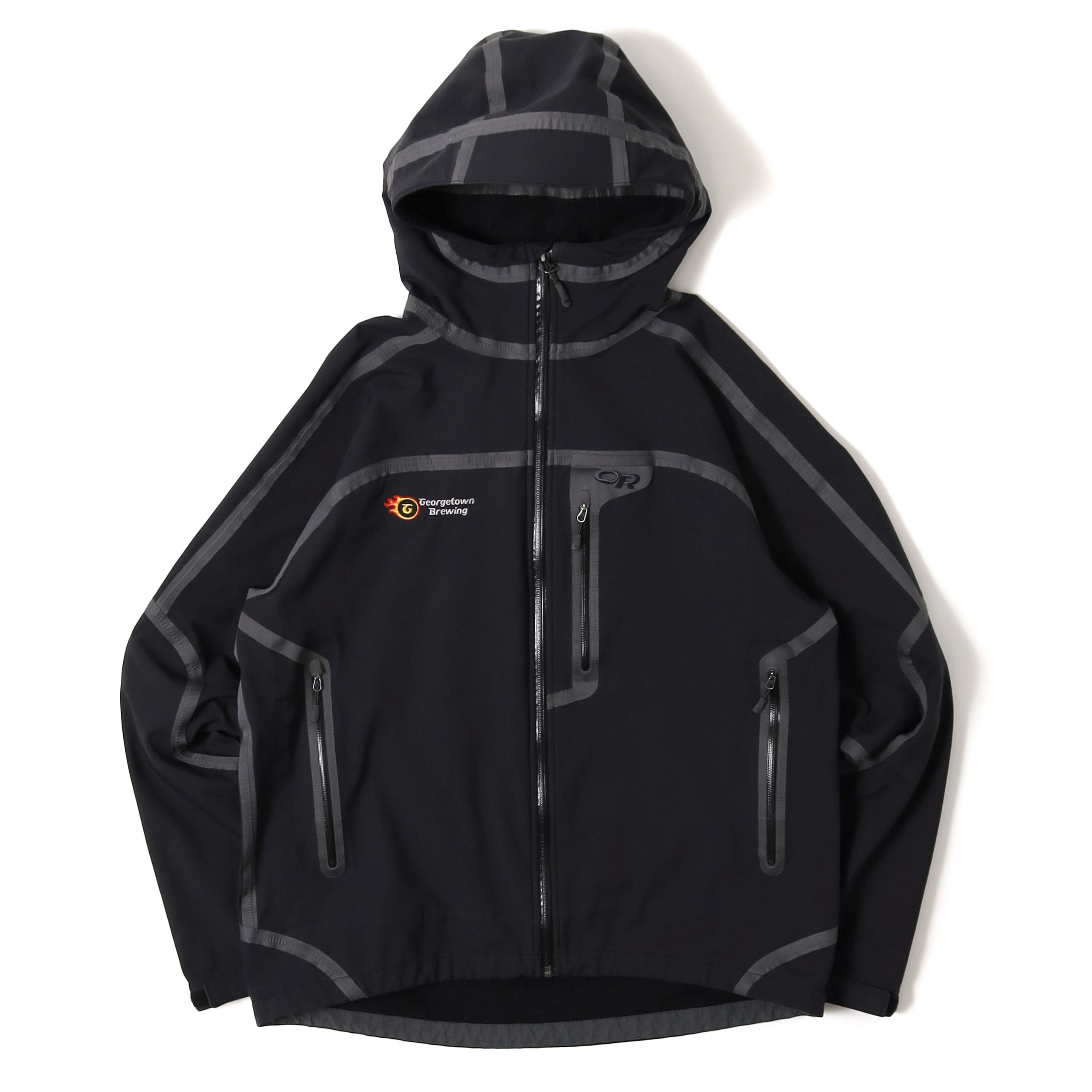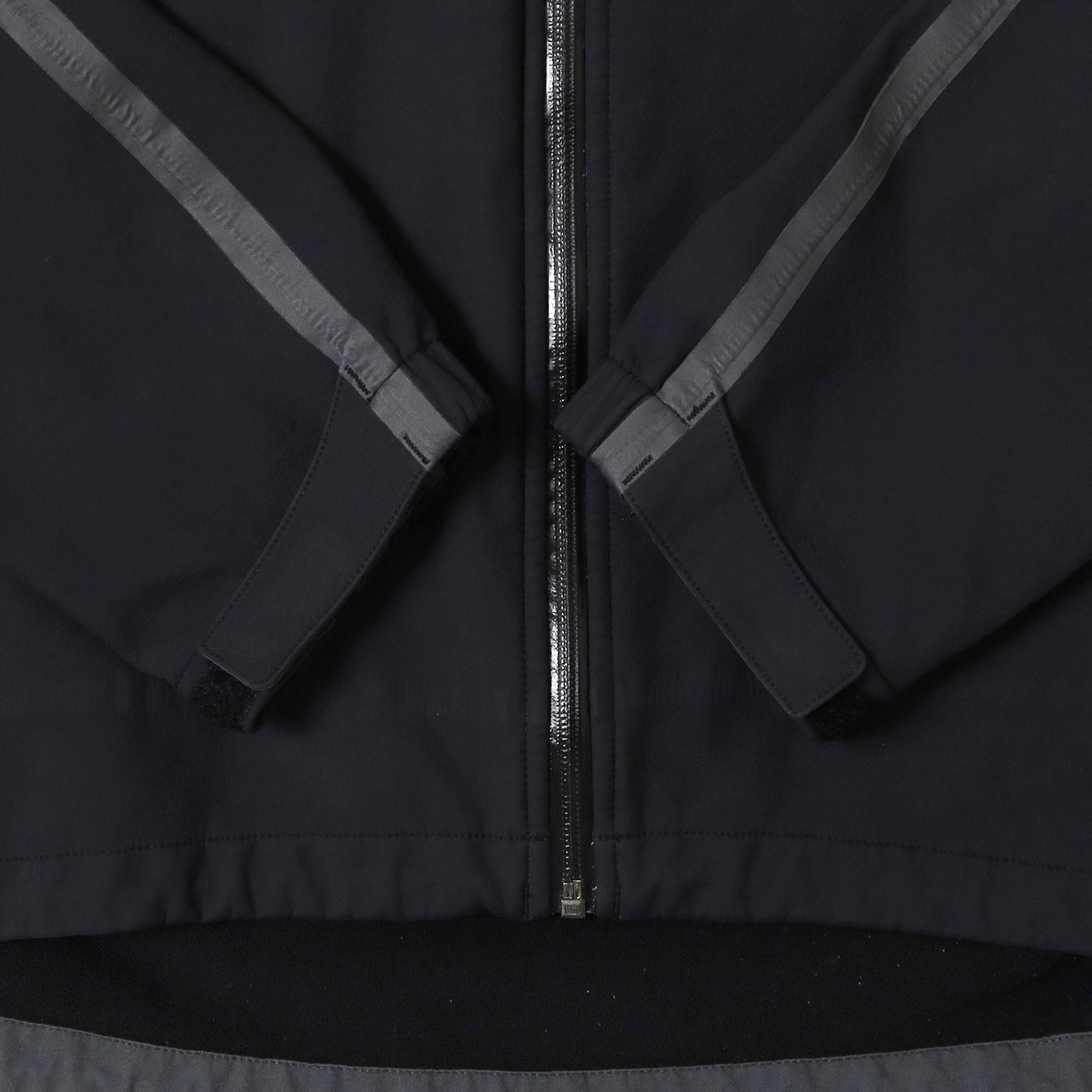 Outdoor Researchのソフトシャルジャケットです。テープデザインを採用したジャケットは、いくつかのブランドからリリースされていますが、こちらはその中でもなかなか出てこない希少な1着。テープの入り方も最高にカッコよく、唯一無二の佇まいやオーラが半端じゃないジャケットです。こちらは右胸に企業ロゴが入るタイプで、一度同じものを販売しました。このロゴしか見たことないですが、このデザインを制服用に採用するセンスが素晴らしいです。この手のテックジャケットでは嬉しいブラックカラーで、サイズも大きすぎないXXL、状態も良くいうことなしの個体です。