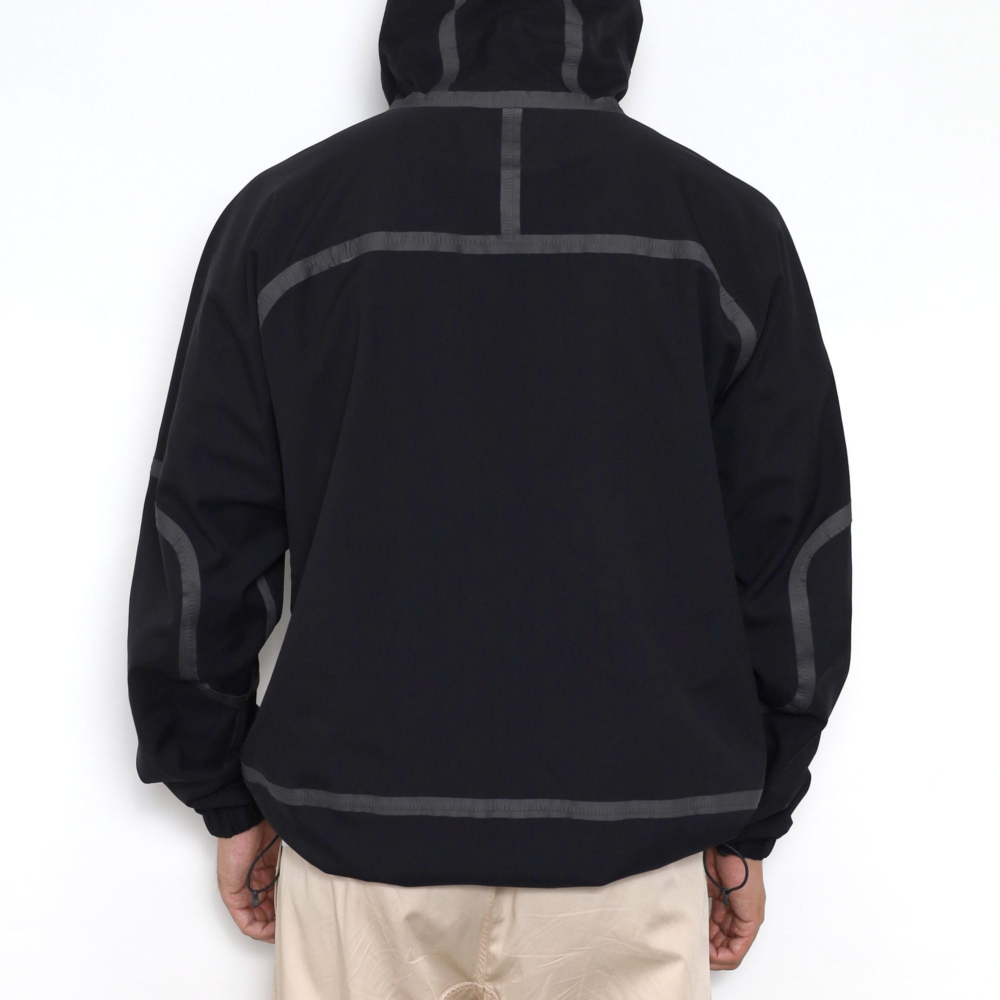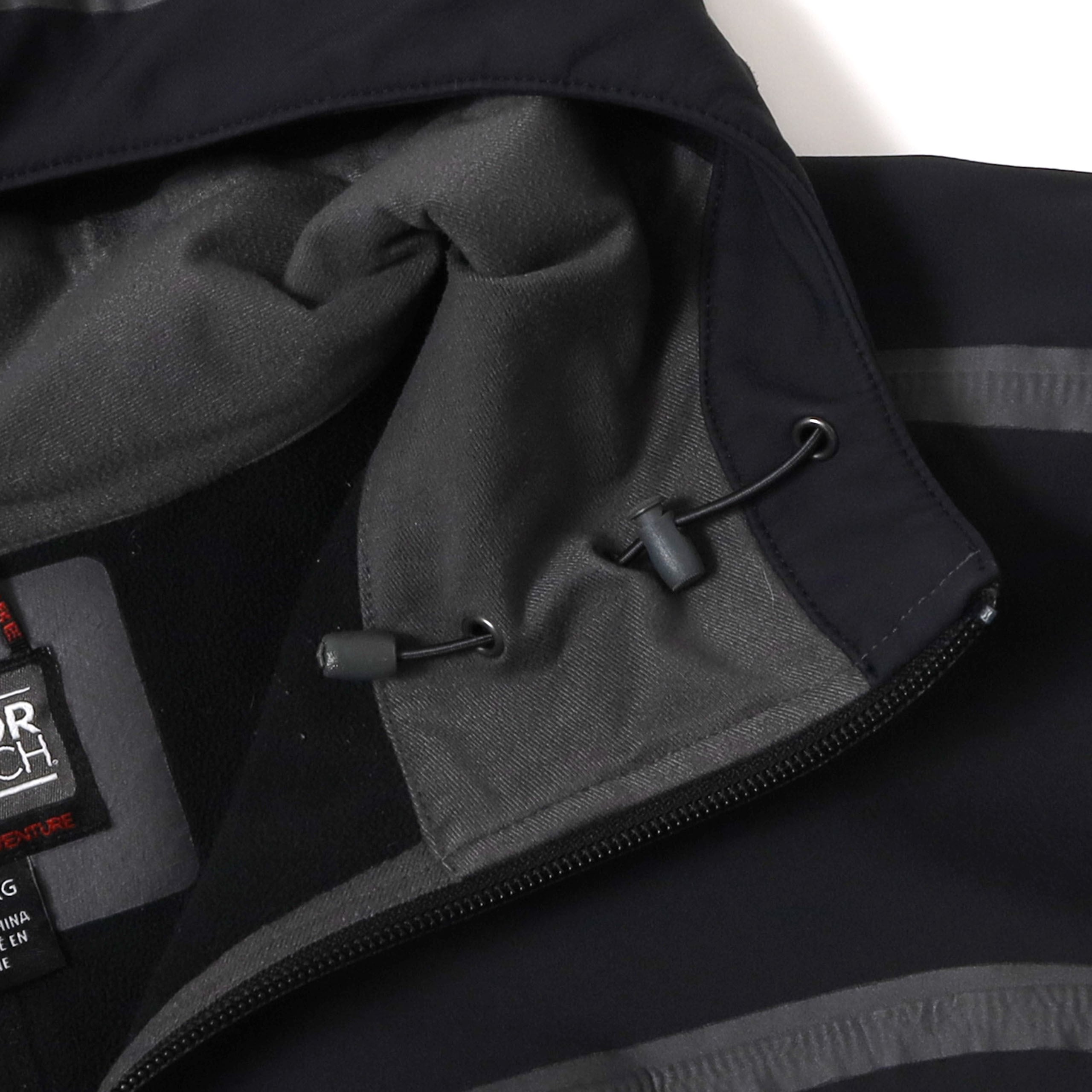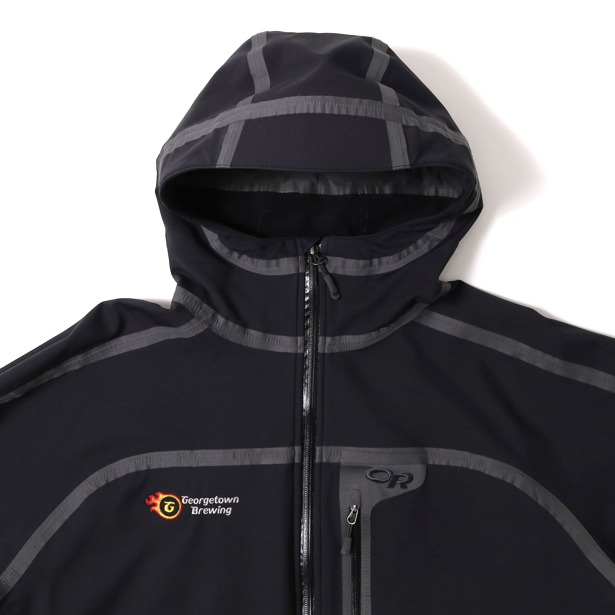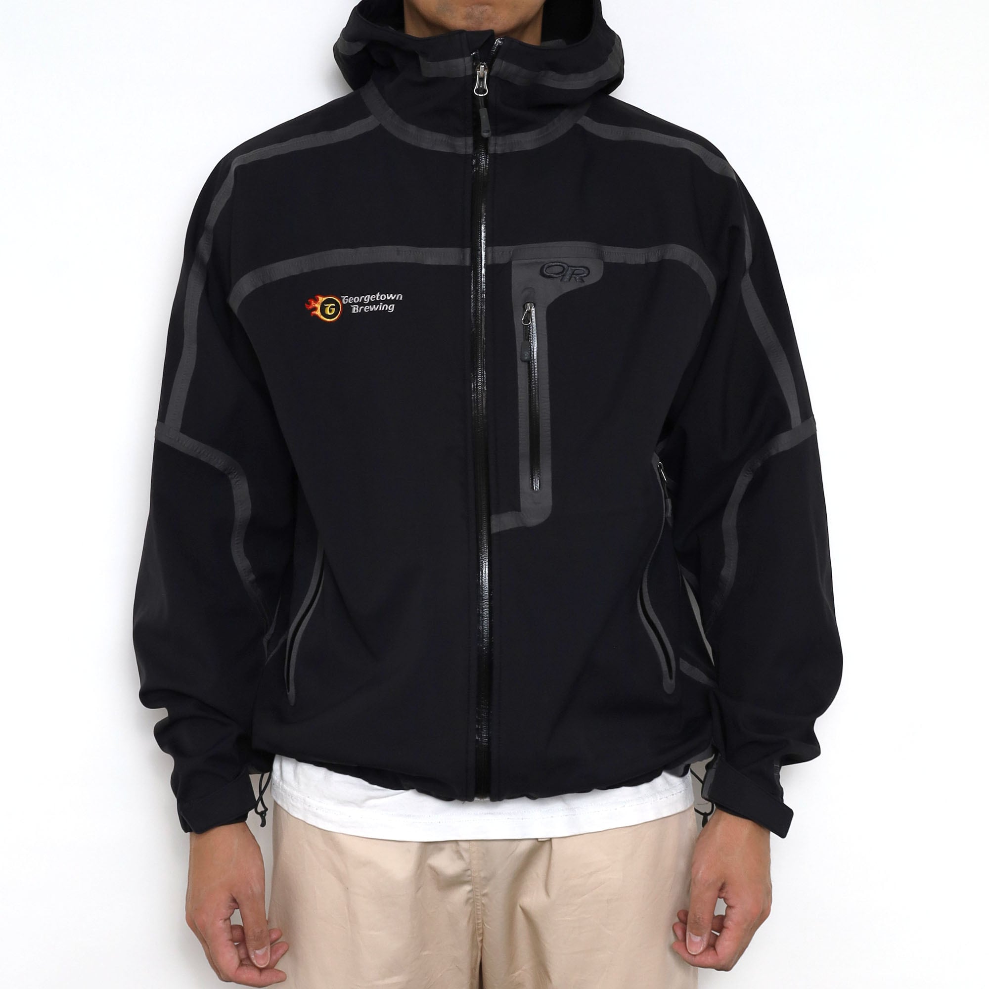 Outdoor Researchのソフトシャルジャケットです。テープデザインを採用したジャケットは、いくつかのブランドからリリースされていますが、こちらはその中でもなかなか出てこない希少な1着。テープの入り方も最高にカッコよく、唯一無二の佇まいやオーラが半端じゃないジャケットです。こちらは右胸に企業ロゴが入るタイプで、一度同じものを販売しました。このロゴしか見たことないですが、このデザインを制服用に採用するセンスが素晴らしいです。この手のテックジャケットでは嬉しいブラックカラーで、サイズも大きすぎないXXL、状態も良くいうことなしの個体です。
