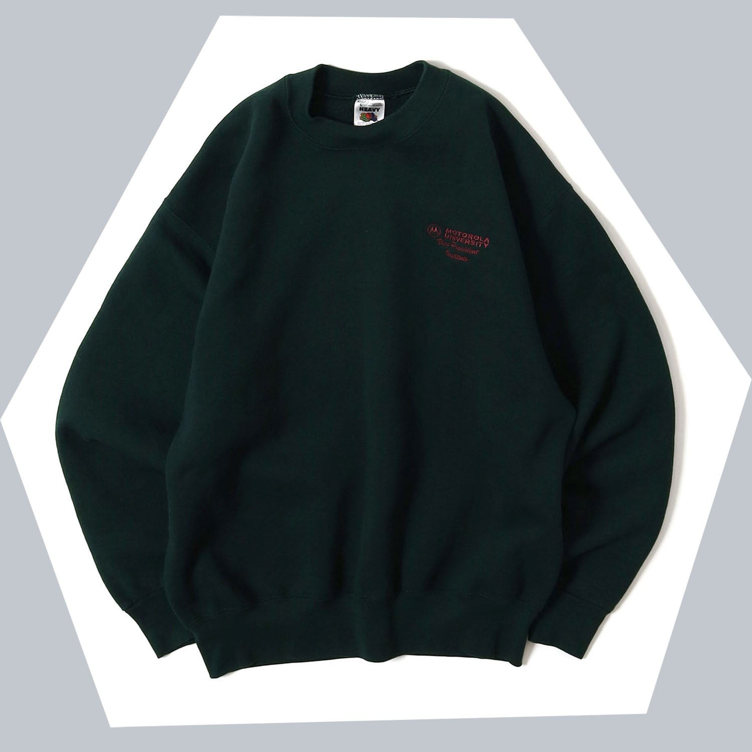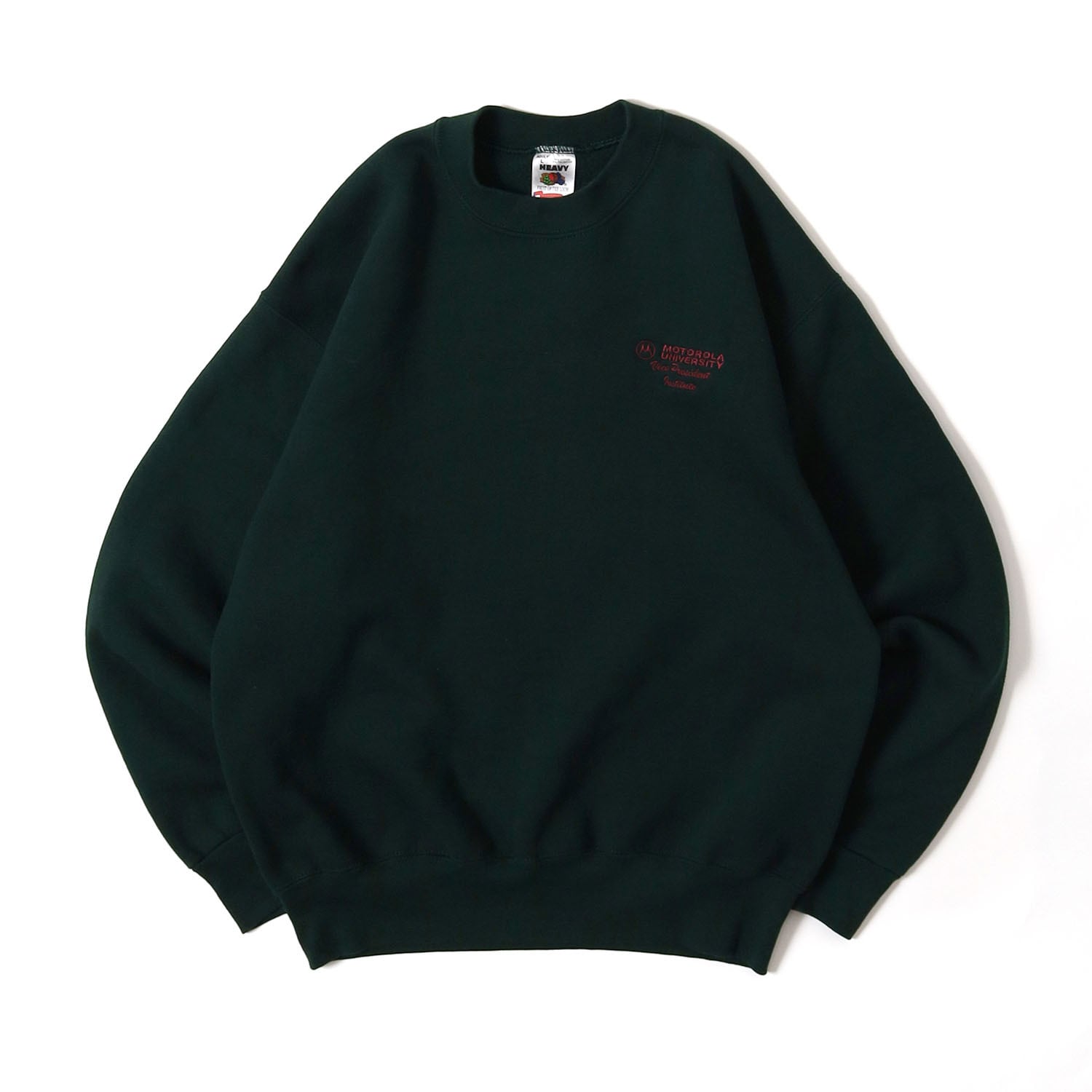 MOTOROLAのプロモスウェットです。胸元に刺繍が入るだけのシンプルなバランスですが、クセなく着やすいことからこの手のスウェットは根強い人気です。ダークグリーンのボディにパープルの刺繍が非常にニクいカラーリング。シンプルですが企業モノにしかない雰囲気がたまらない1着です。