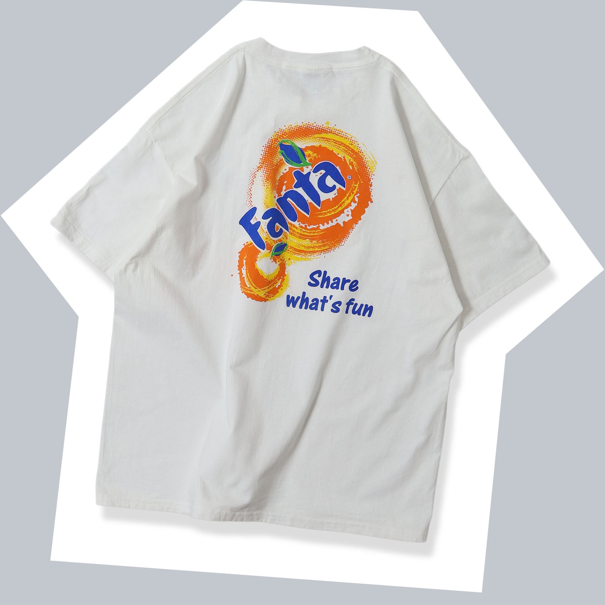 FantaのプロモTシャツです。ファンタのものはかなり久々の入荷。シンプルなデザイン要素で分かりやすいデザインが、これぞ企業TEEといった雰囲気です。フレーバーの種類は記載がないですが、恐らくオレンジ味のものですよね。こういった伝え方もあまり見ない面白い手法です。一目でどこのものか分かりますので、ハズしにももってこいの1枚です。