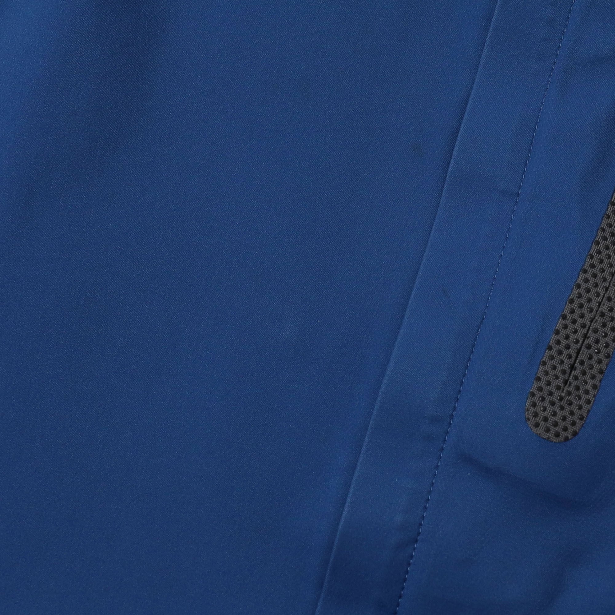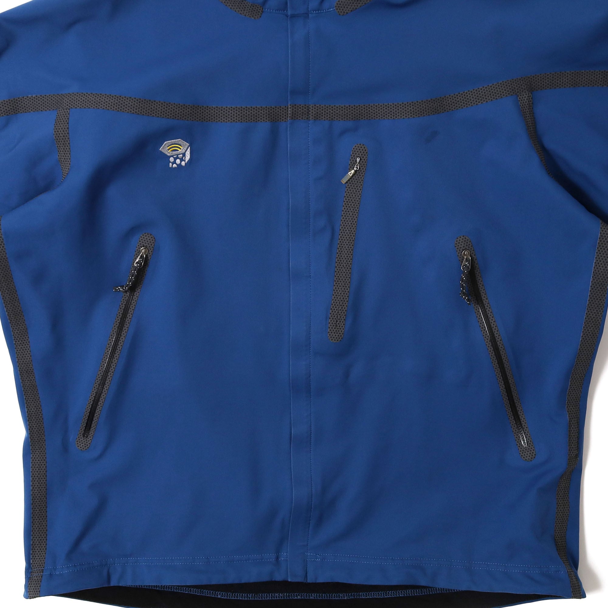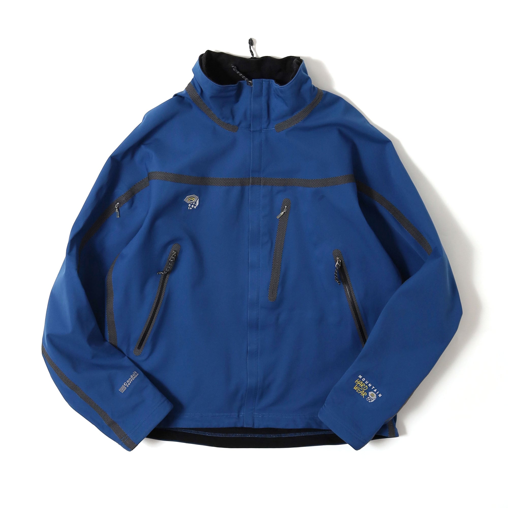 Mountain HardwearのConduitジャケットです。最近はこのジャケットのデザインをそのまま採用したジャケットを作っているブランドなんかもありますが、やはりオリジナルの雰囲気は最高です。このブランド以外にもテープデザインのものはいくつか見かけますが、フードが付いているものが多い印象です。こちらはスタンドカラーというのが他のものとは一線を画すポイントかと思います。またブラックやネイビーがほとんどの中、ソリッドなブルーカラーはなかなか見かけません。着てみるとシルエットも非常に良く、サイズや状態も素晴らしい1着です。