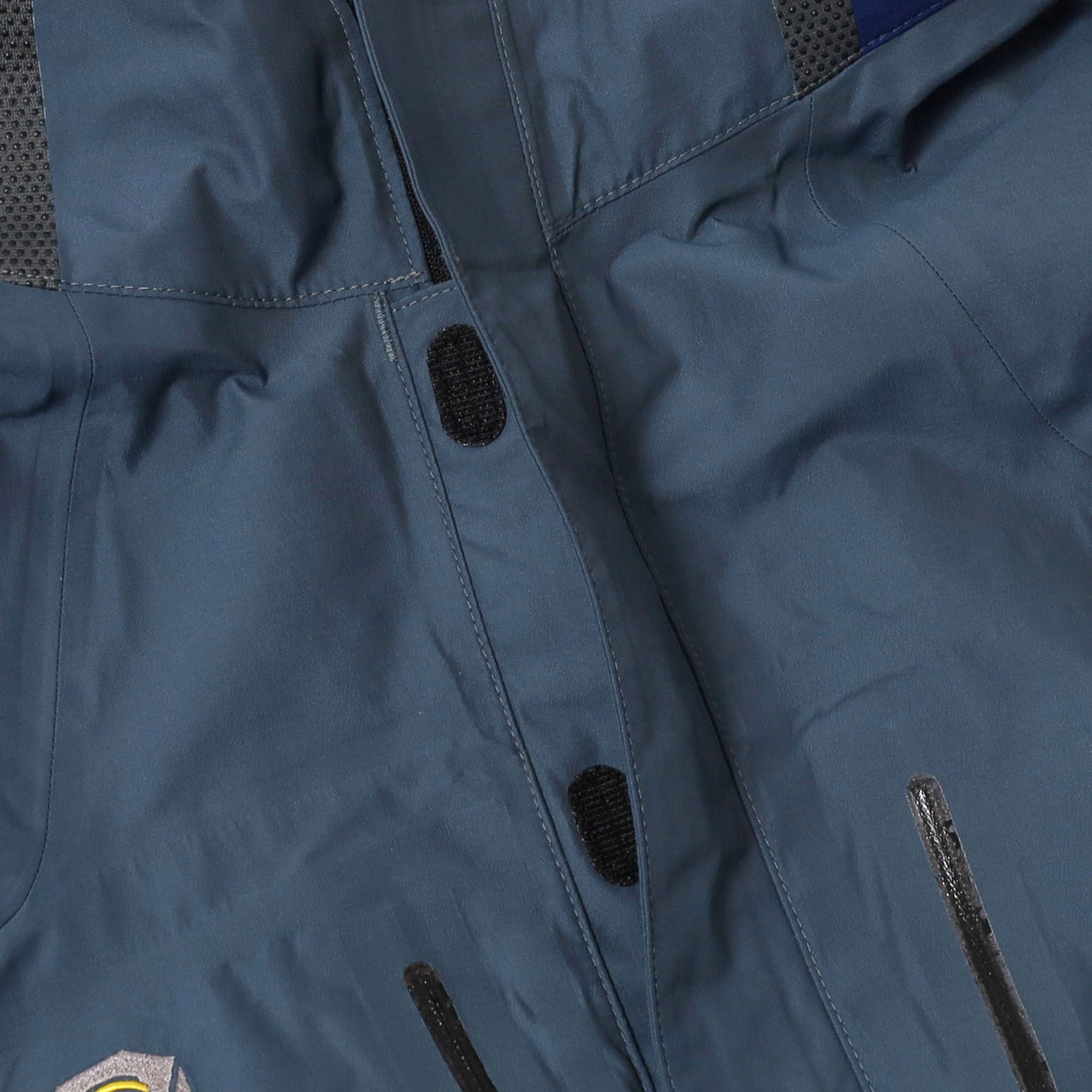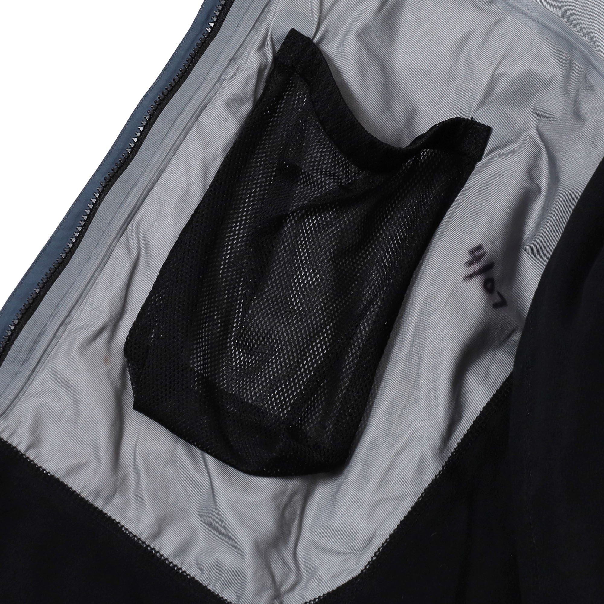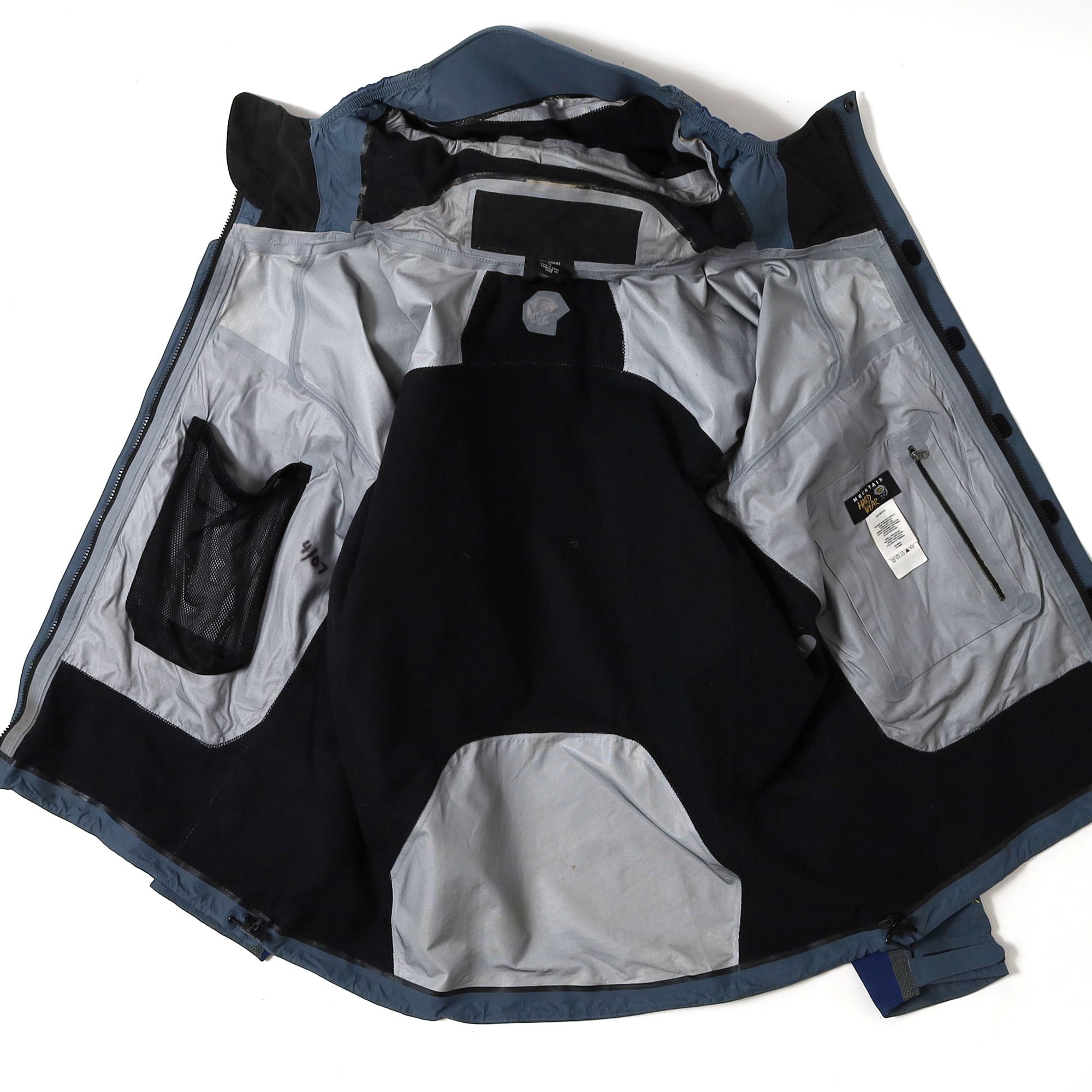 ジップ止水加工の剥がれ(画像4枚目)、フード裏にややテープの剥がれ(画像15枚目)、後身頃に薄汚れ(画像16枚目)、左袖と後身頃に薄汚れ(画像17枚目)、後身頃に多少の毛羽立ち(画像18枚目)、裏地に小さな汚れ(画像19枚目)あり。