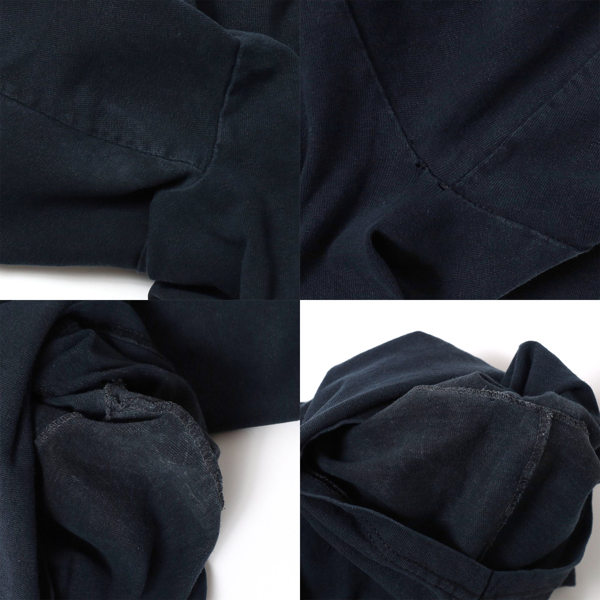 右袖後ろに若干の汚れ(画像8枚目)、後身頃にピンホール(画像9枚目)、黒なのであまり目立ちませんが脇にやや変色(画像10枚目)、右脇にダメージ(画像10枚目右上)あり。