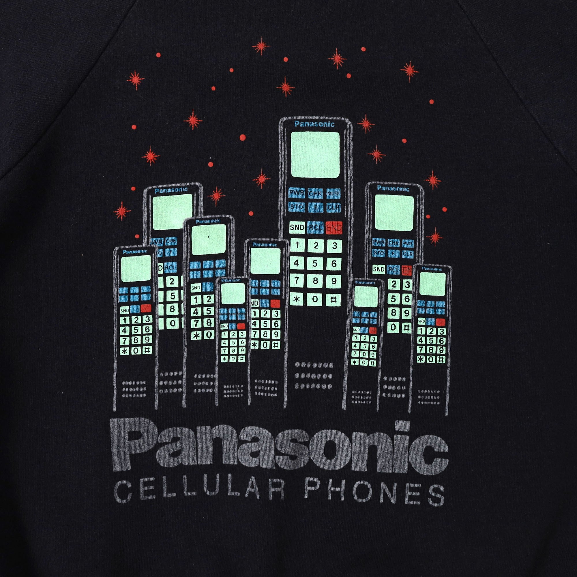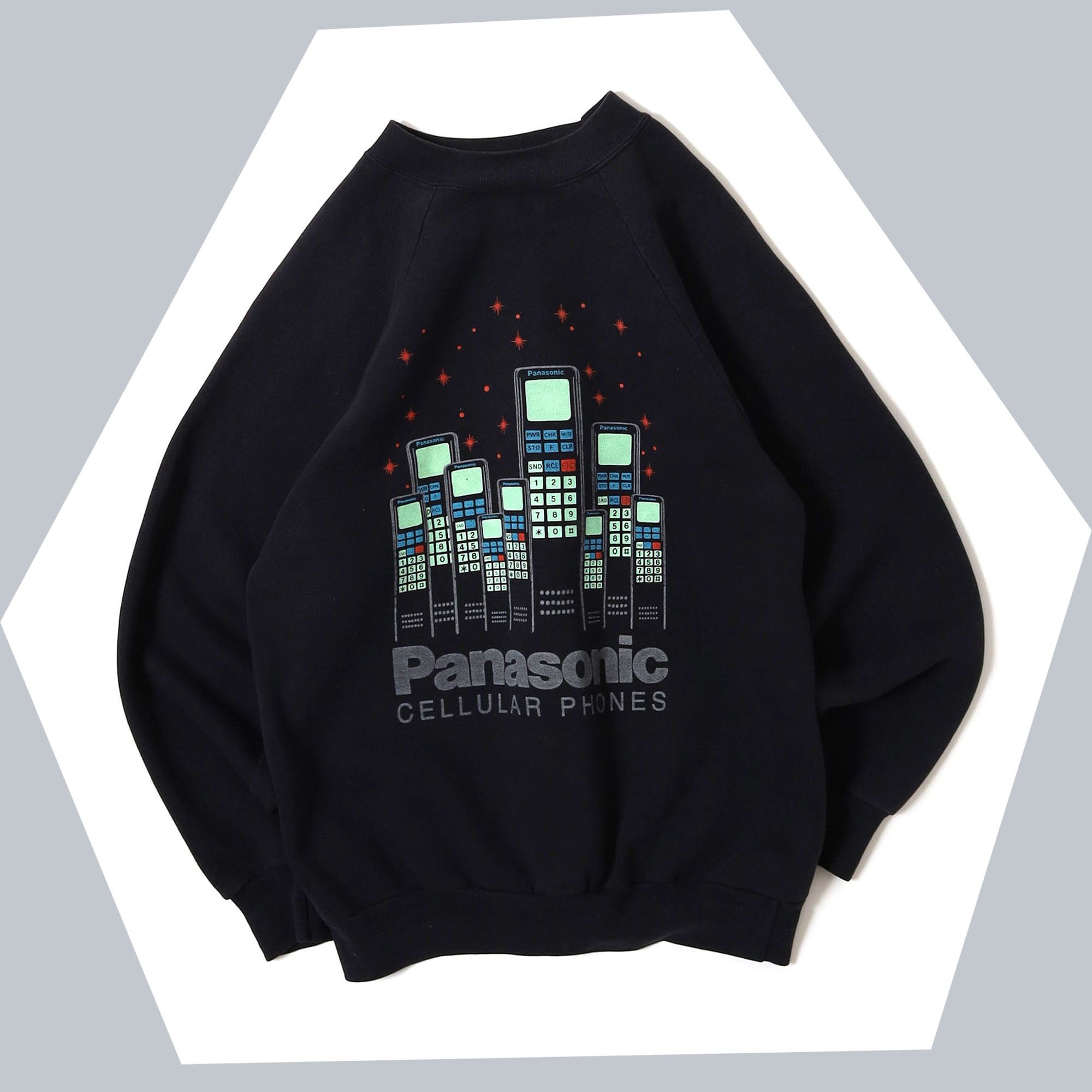 Panasonicのプロモスウェットです。このデザインは初入荷。電話がビル群のような夜景のようなデザインに落とし込まれたグラフィックがとても可愛い1着。Panasonicのロゴが大きめにプリントされているのも嬉しいポイントです。プロモスウェットでブラックボディというのも珍しく、Panasonicでブラックはなかなか見かけないと思います。サイズはやや小さめですが、サイズ合う方、また女性にもおすすめの1着ですので、是非。
