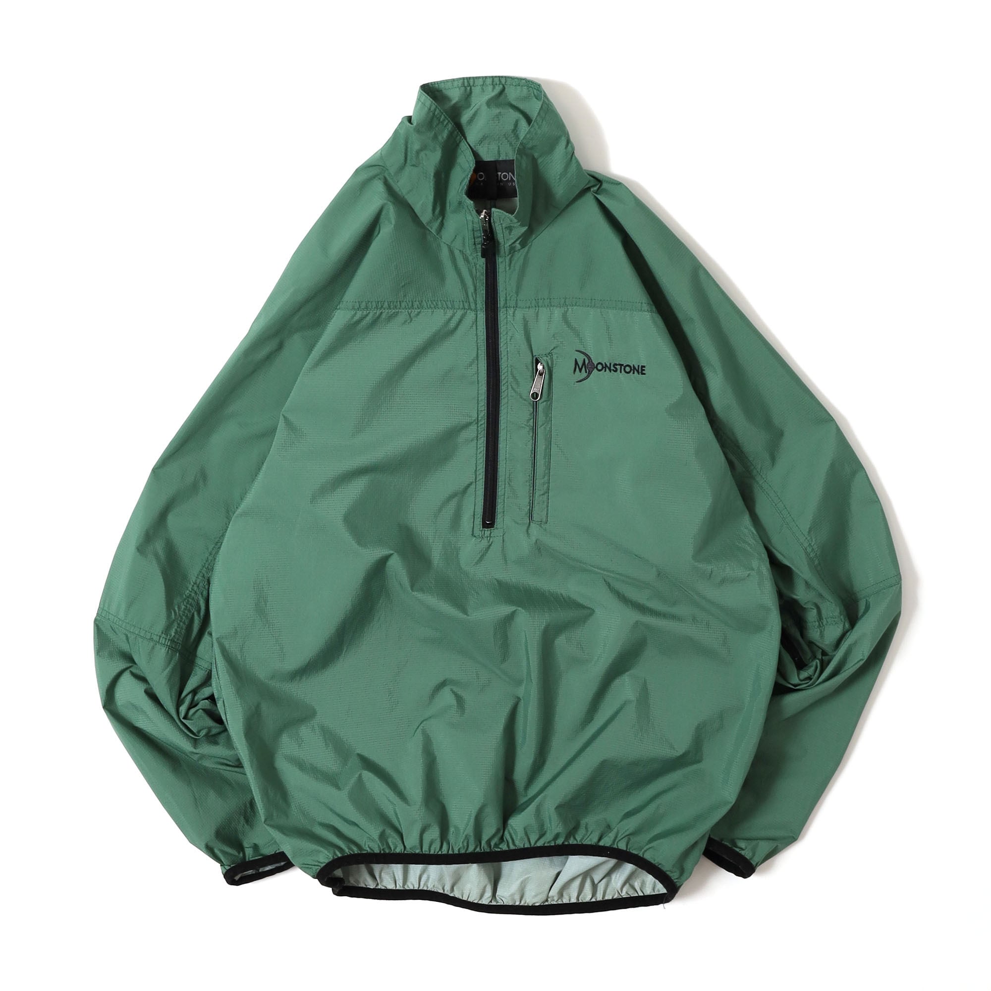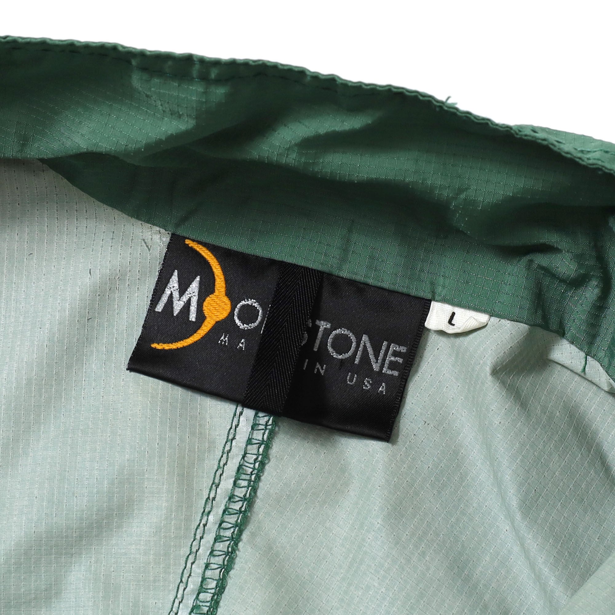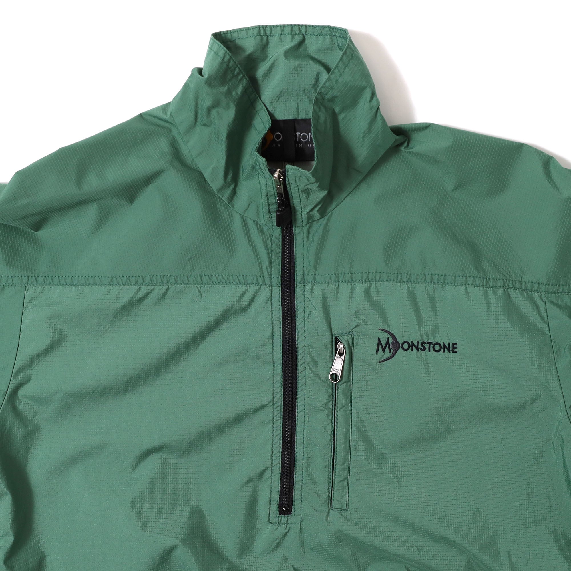かつて存在したアメリカのアウトドアブランド"Moonstone" のジャケットです。ナイロンを使用した、このブランドで今まで見てきた中では最もライトなモデルです。無駄のないシンプルなデザインですが、深めのジップやシルエットなど抜群のディテール。これからの時期にはもちろん重宝しますし、立ち襟のハーフジップでインナーとしての着用もしやすい1着です。こういったテック系のウェアでは珍しいグリーンカラーも洒落てます。