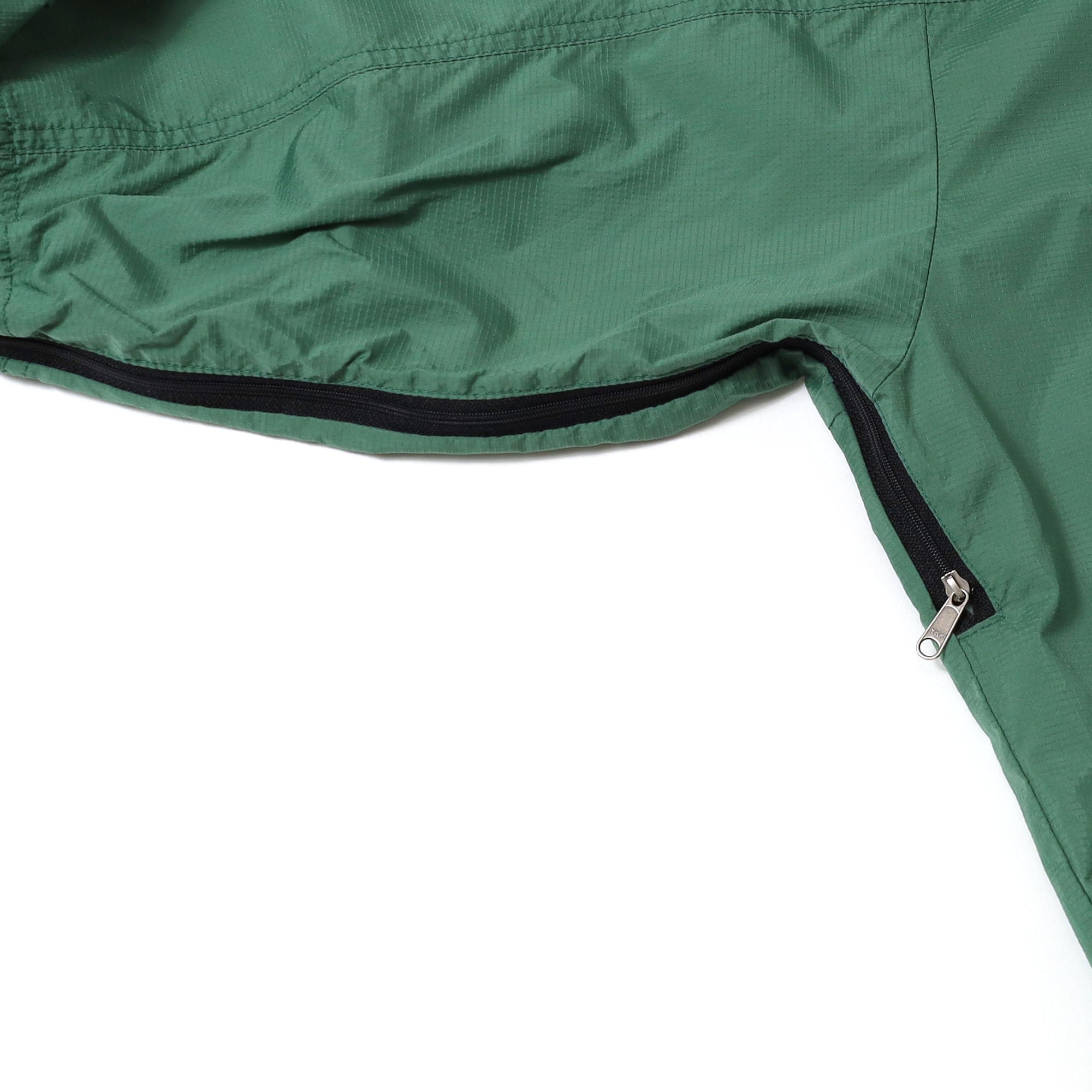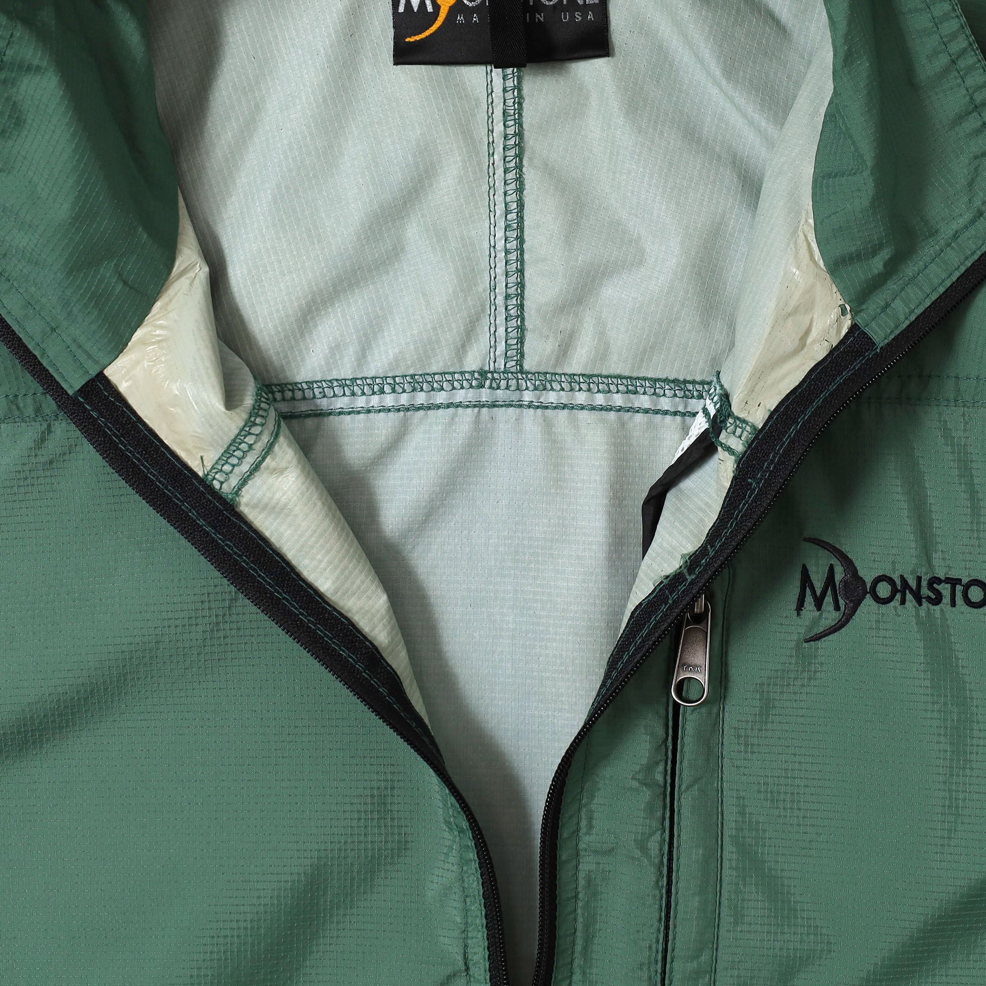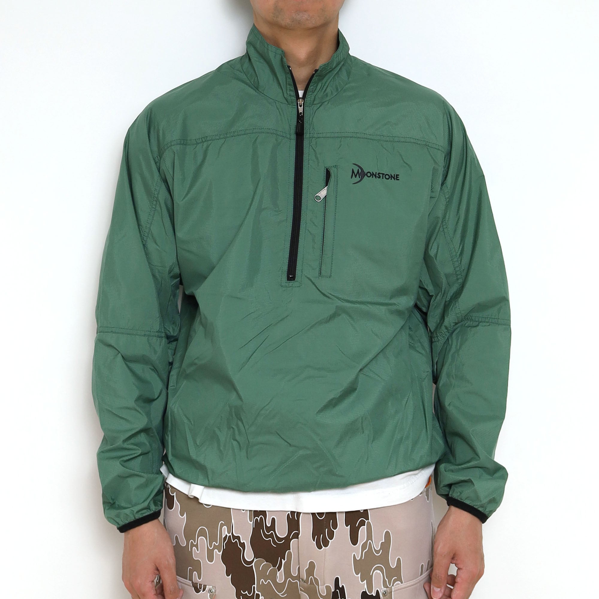 かつて存在したアメリカのアウトドアブランド"Moonstone" のジャケットです。ナイロンを使用した、このブランドで今まで見てきた中では最もライトなモデルです。無駄のないシンプルなデザインですが、深めのジップやシルエットなど抜群のディテール。これからの時期にはもちろん重宝しますし、立ち襟のハーフジップでインナーとしての着用もしやすい1着です。こういったテック系のウェアでは珍しいグリーンカラーも洒落てます。