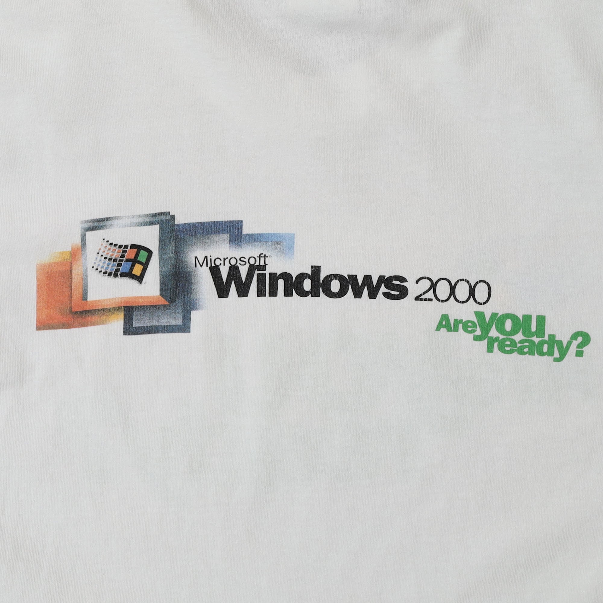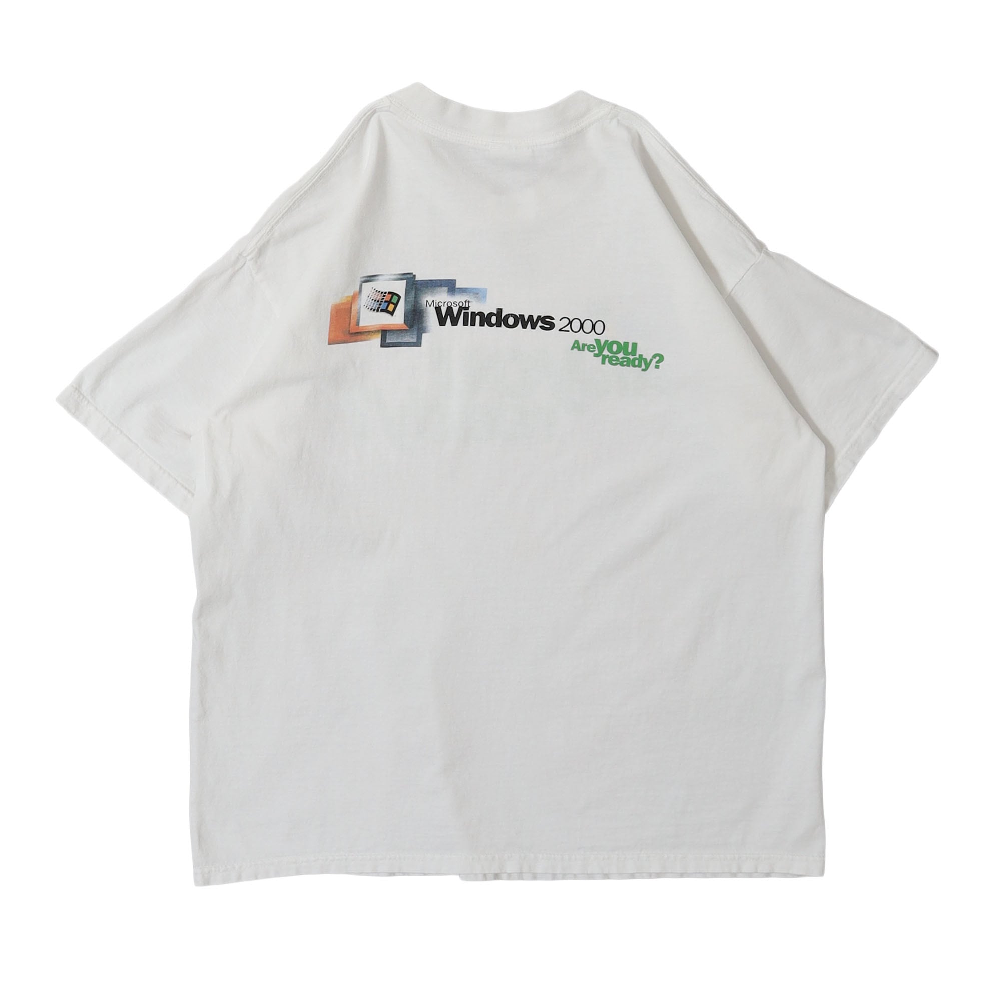 Microsoft Windows2000のプロモTシャツです。Microsoftのものもこれまでたくさん販売してきましたが、こちらは初入荷です。バックプリントのグラフィックだけのものは見たことがあったのですが、このデザインは初見です。文字とWindowsの旧ロゴのバランスがピカイチで、主張はありながら爽やかな印象の1枚です。目を惹くグリーンのプリントも可愛くポップで、性別問わずおすすめしたい1枚です。