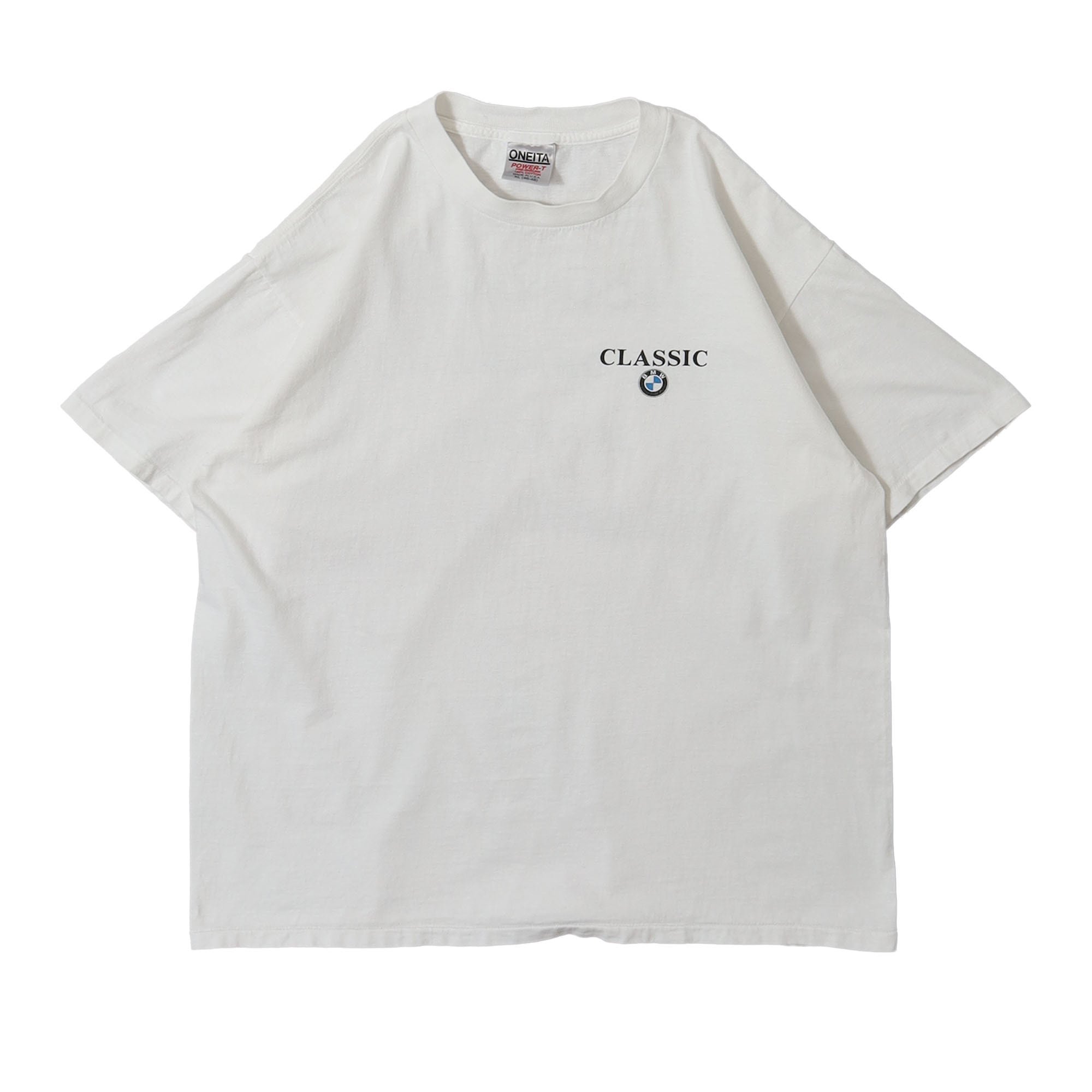 BMWのプロモTシャツです。この企業、というか自動車メーカーのTシャツは久々の入荷です。自動車系のTシャツは意外といいデザインないんですよね。こちらはロゴのさりげなさや文字プリントのバランスがすごく渋いんです。シンプルでスッキリしながら、少し男っぽさもある雰囲気が唯一無二です。ロゴのプリントも小さいので、多くの方が着やすいと感じてもらえる1枚かと思います。