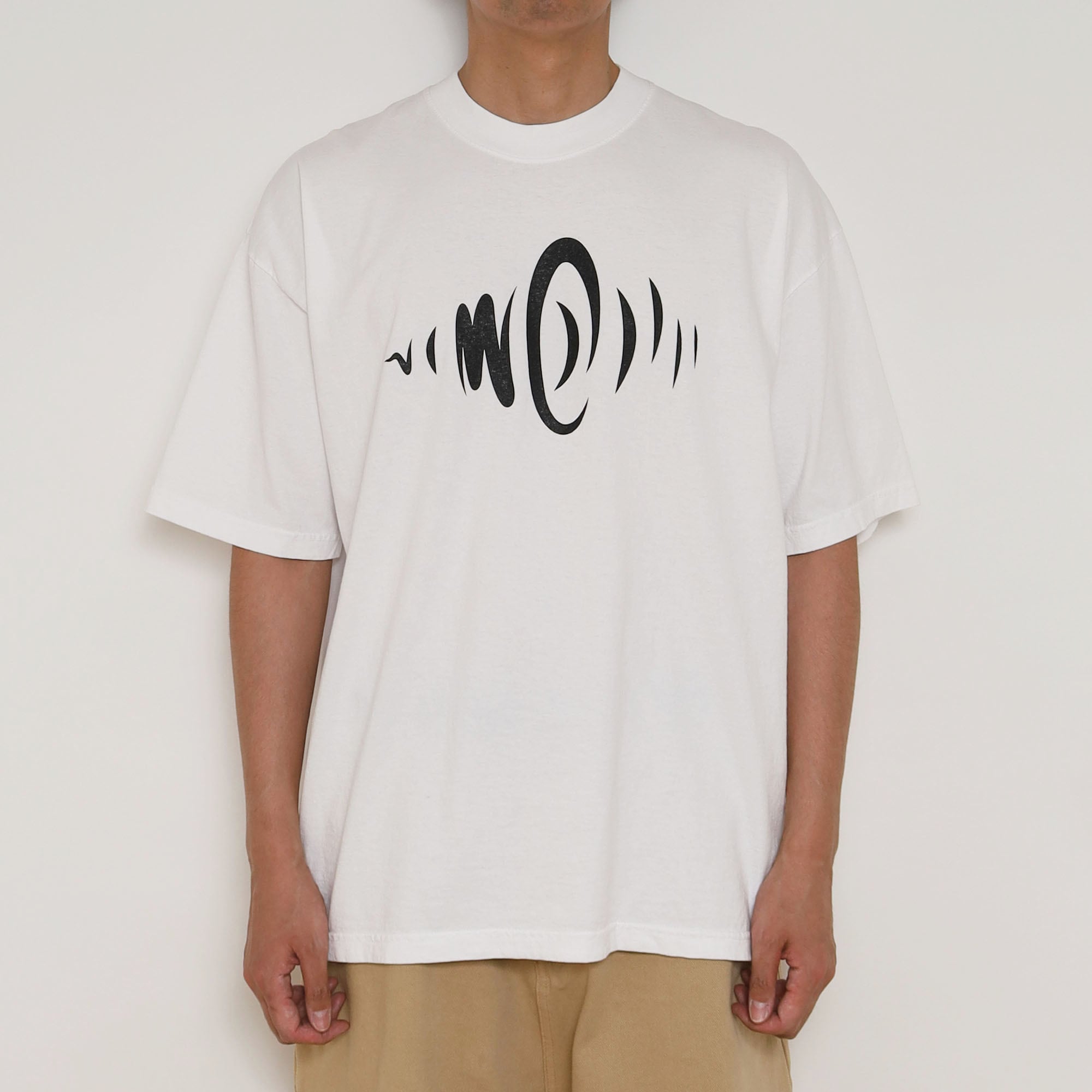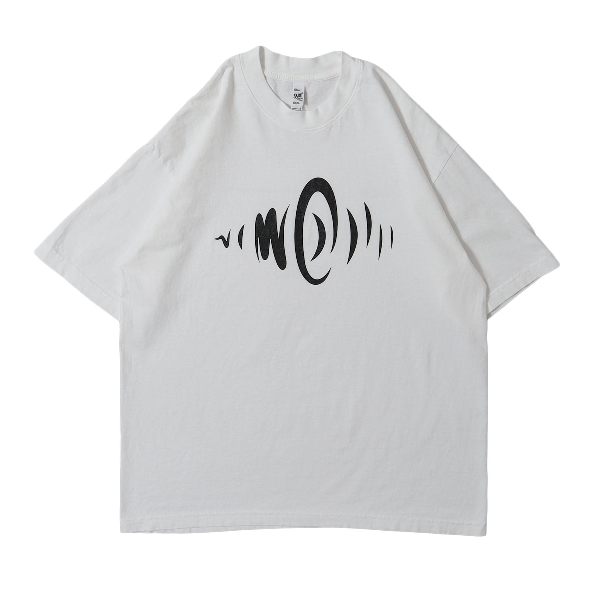 今回は音関連、特に音響機器メーカーをイメージしておりまして、あまり文字要素を入れたくなかったので、フロントには文字なしでスピーカーから音が出ているような、耳に音が伝わっていくような抽象的なイラストを、バックには企業モノっぽいメッセージとショップのロゴをさりげなく。すごくいい仕上がりで個人的にも非常に気に入っております。是非みなさんに着ていただきたい1枚です。